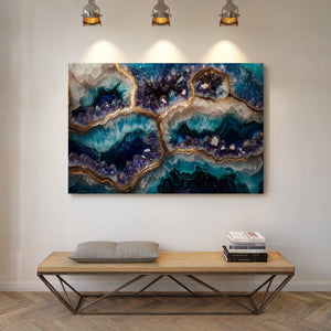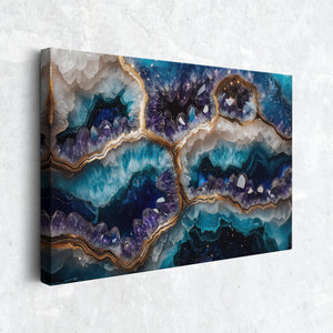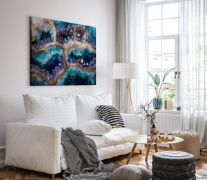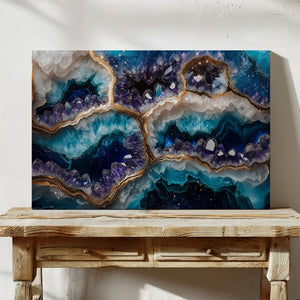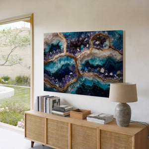 A breathtaking fusion of cosmic energy and crystalline elegance, “Galaxy Geode” captures the mystery of the stars embedded in the heart of a mineral form. This mesmerizing piece evokes the richness of natural geodes illuminated by starlight, with radiant hues and intricate textures that draw the eye and stir the imagination. Printed on museum-quality, gallery-wrapped canvas, this artwork exudes sophistication and depth. Every detail shimmers with intention — from its vibrant color gradients to its organic geode-inspired flow. “Galaxy Geode” makes an unforgettable focal point for refined interiors seeking both serenity and celestial style.