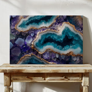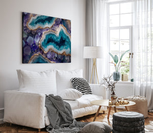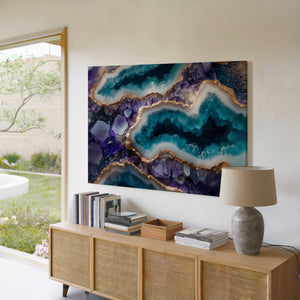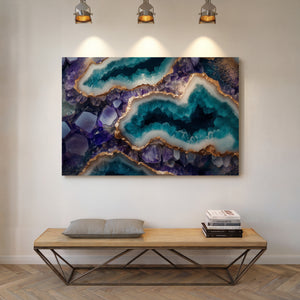 Radiant and layered with mineral-like complexity, “Prism Depths” invites the viewer into a world of iridescent color and crystalline structure. Inspired by the beauty of geodes and gemstones, this abstract piece shimmers with dimensional richness — a spectrum of jewel-toned hues refracted into visual poetry. Printed on premium 1.5" gallery-wrapped canvas, “Prism Depths” adds instant sophistication and depth to any modern interior. Ideal for statement walls, entryways, or creative spaces, it balances bold energy with polished elegance.