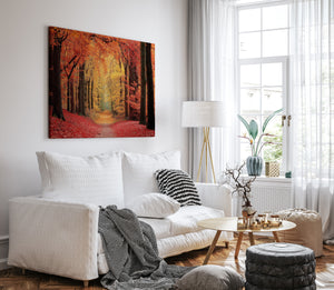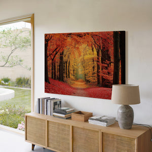 "The Ember Road" leads you through a tunnel of autumn’s fiery brilliance, where leaves in crimson, gold, and amber blanket both forest floor and canopy. The path gently disappears into a dreamy haze, evoking a sense of wonder, nostalgia, and serenity. This gallery wrapped canvas print is perfect for seasonal home decor and anyone who finds beauty in nature’s changing palette. Celebrate the warm glow of fall with this striking piece of wall art that transforms any room with rich color and emotion.