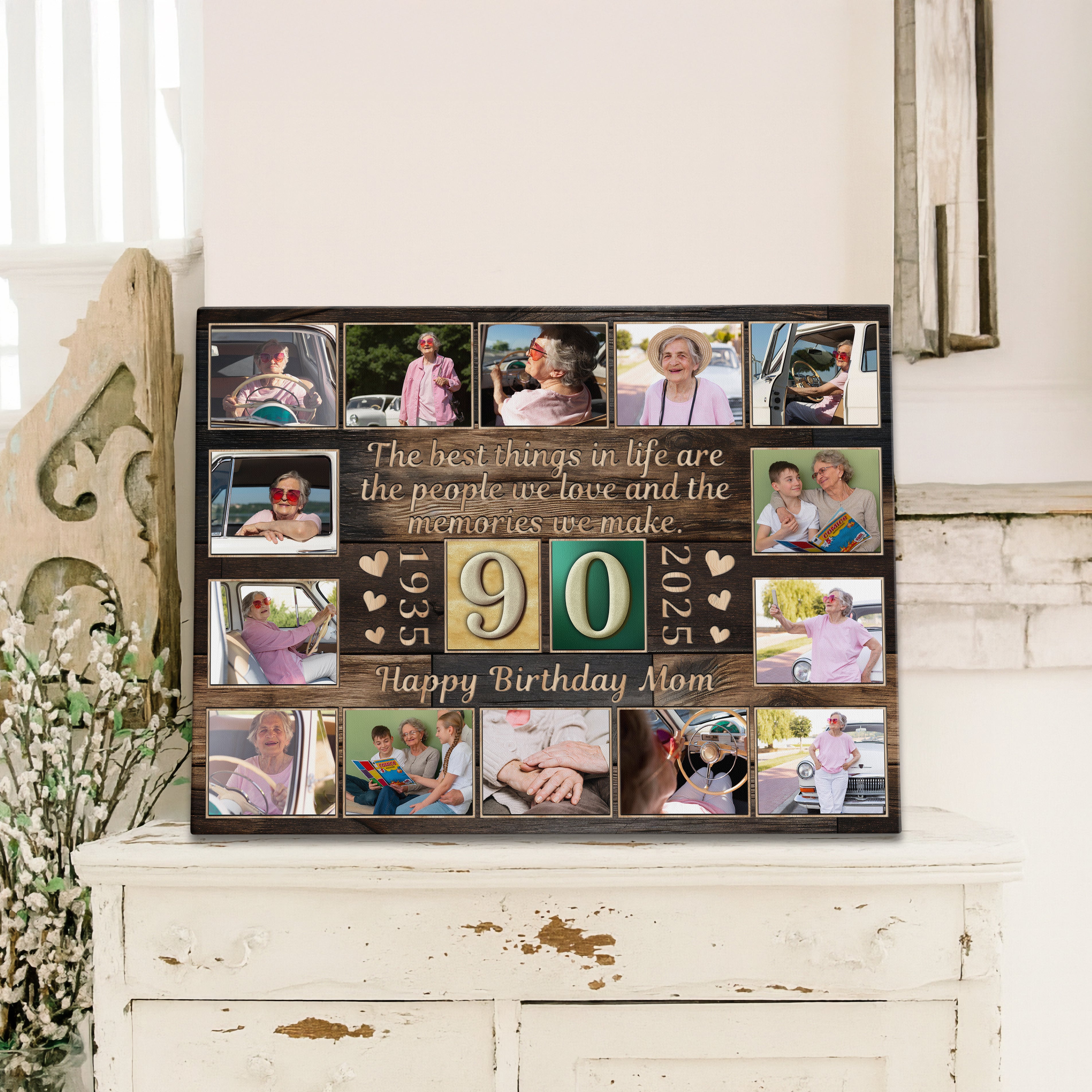 Personalized Birthday Gift For Grandma or Grandpa 90th Birthday Photo Collage Custom Canvas Print Gift Idea For Parents or Grandparents