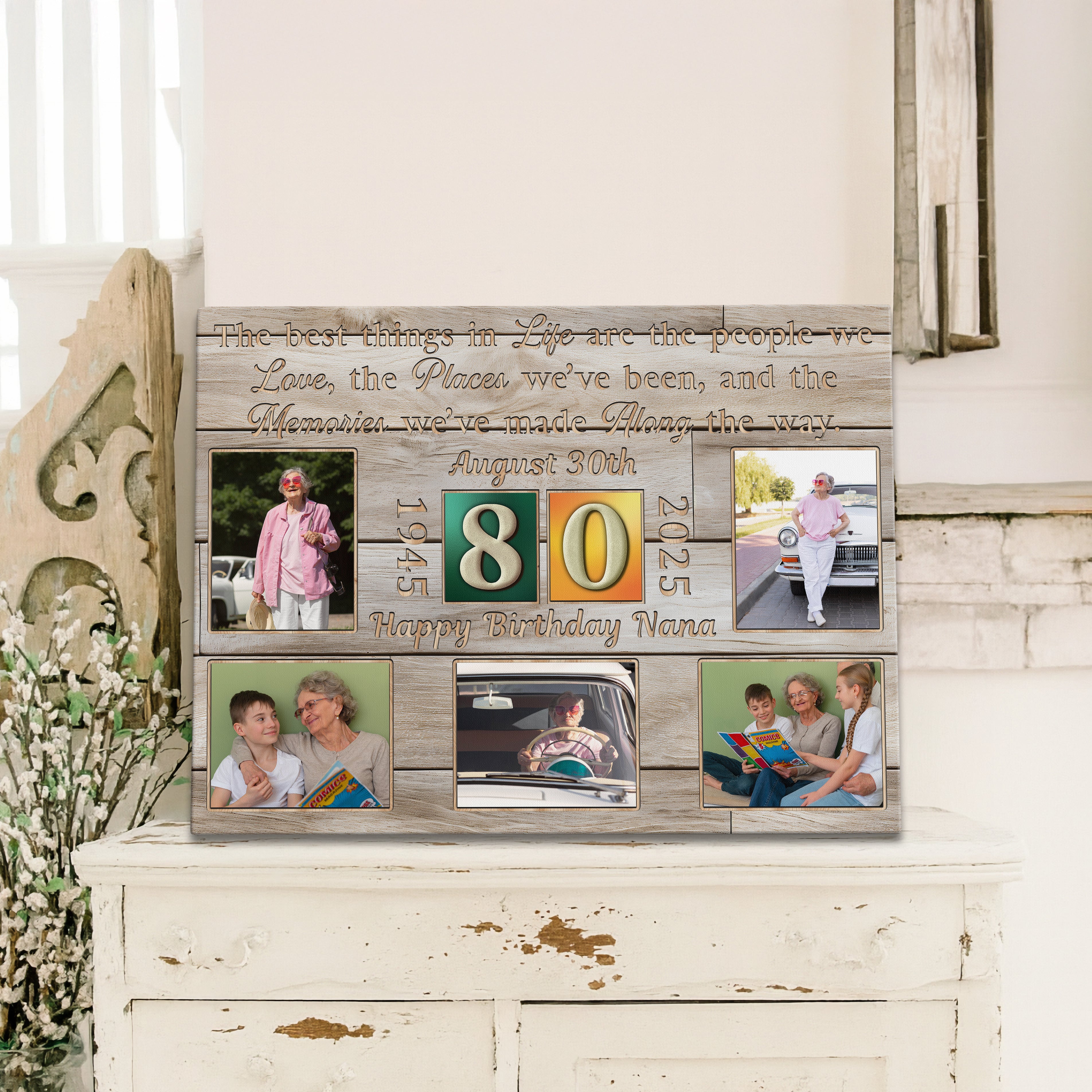 Personalized Birthday Gift For Grandpa or Grandma 80th Birthday Photo Collage Custom Canvas Print Gift Idea For Parents or Grandparents