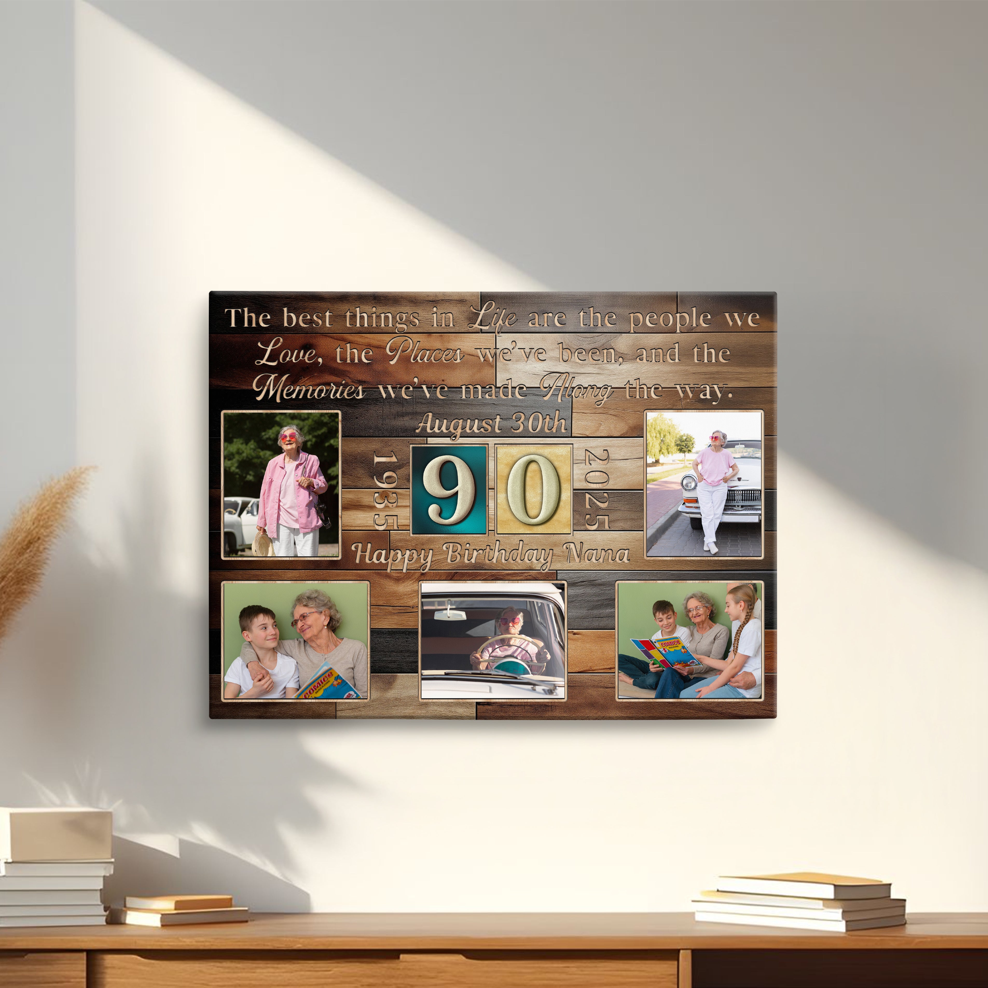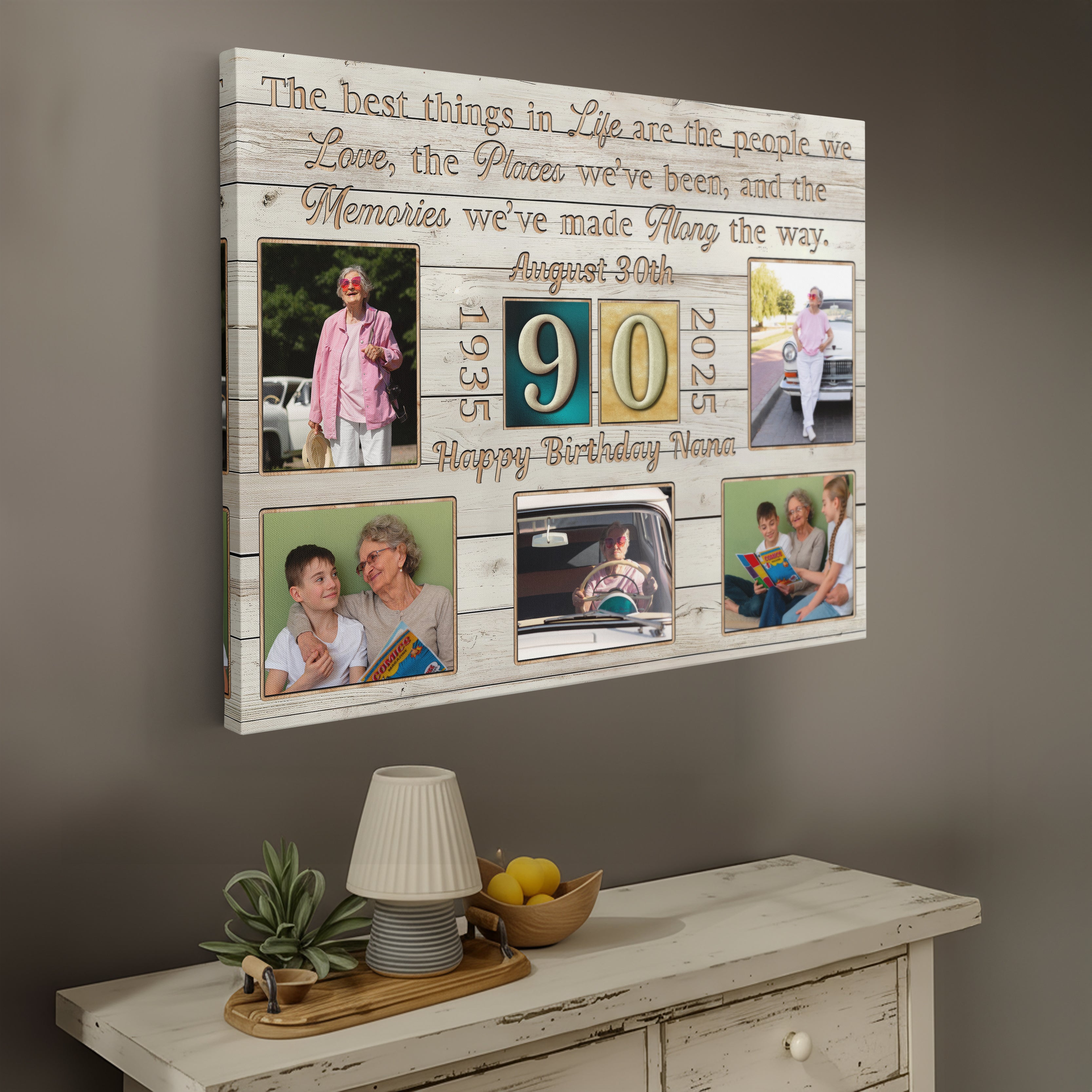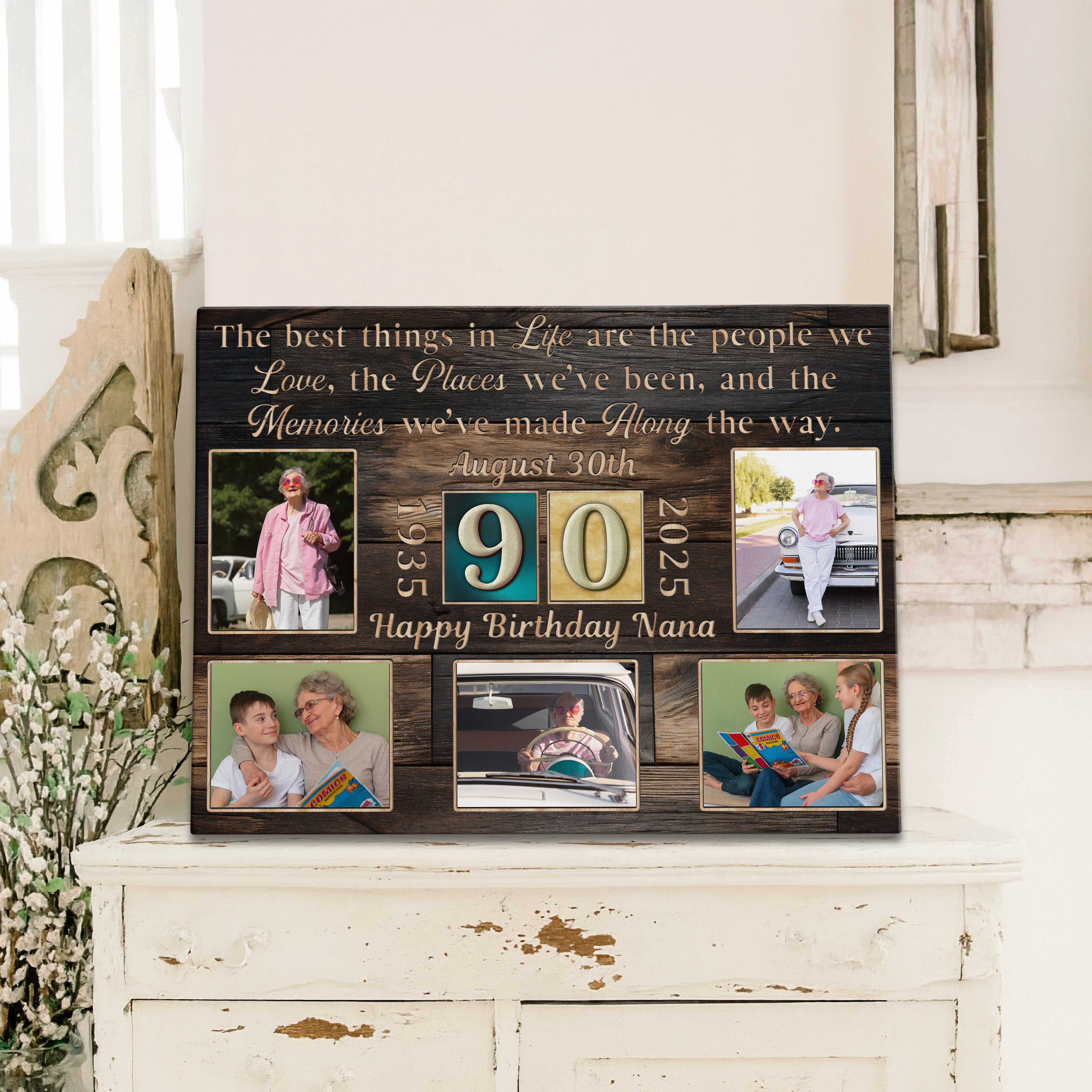Personalized Birthday Gift For Grandpa or Grandma 90th Birthday Photo Collage Custom Canvas Print Gift Idea For Parents or Grandparents