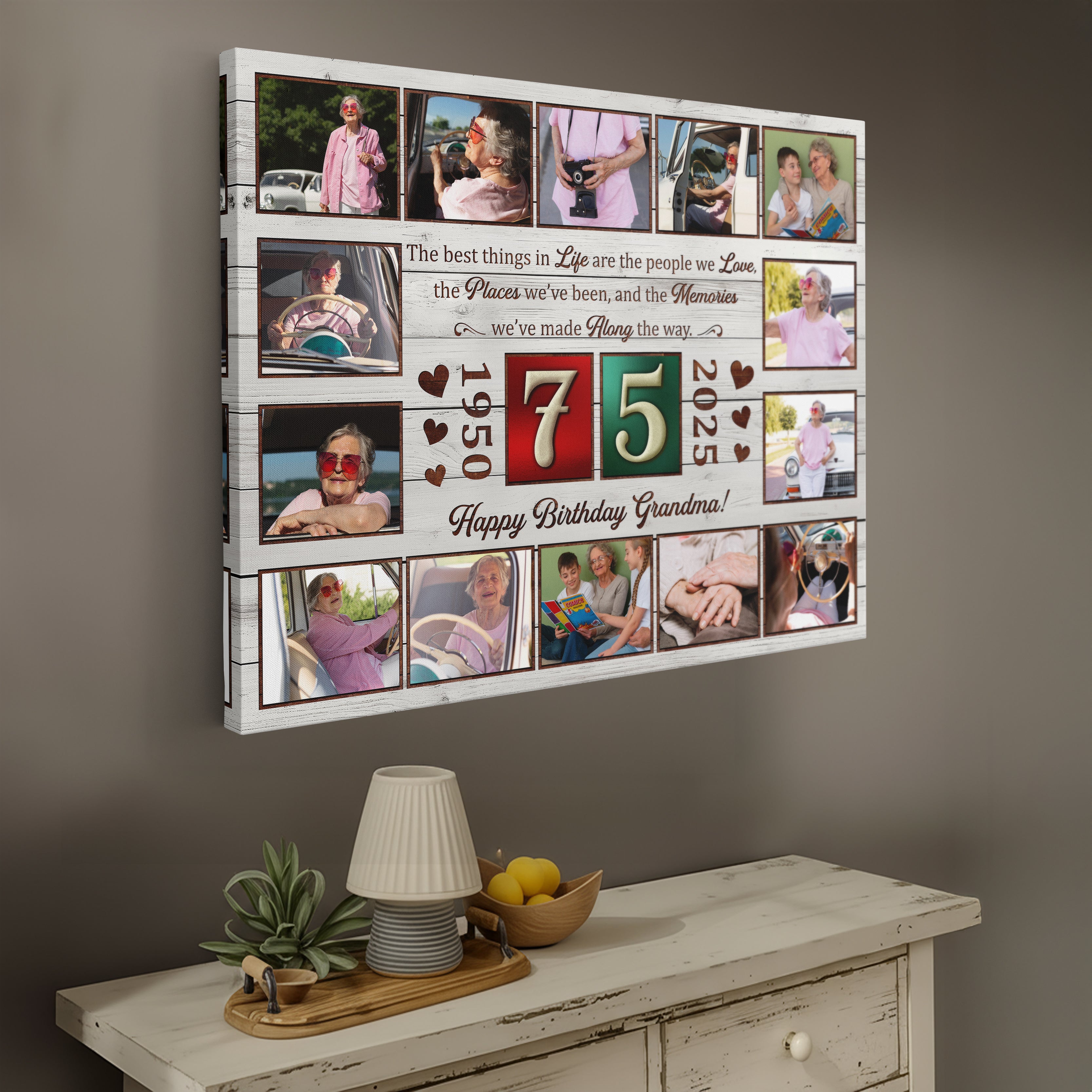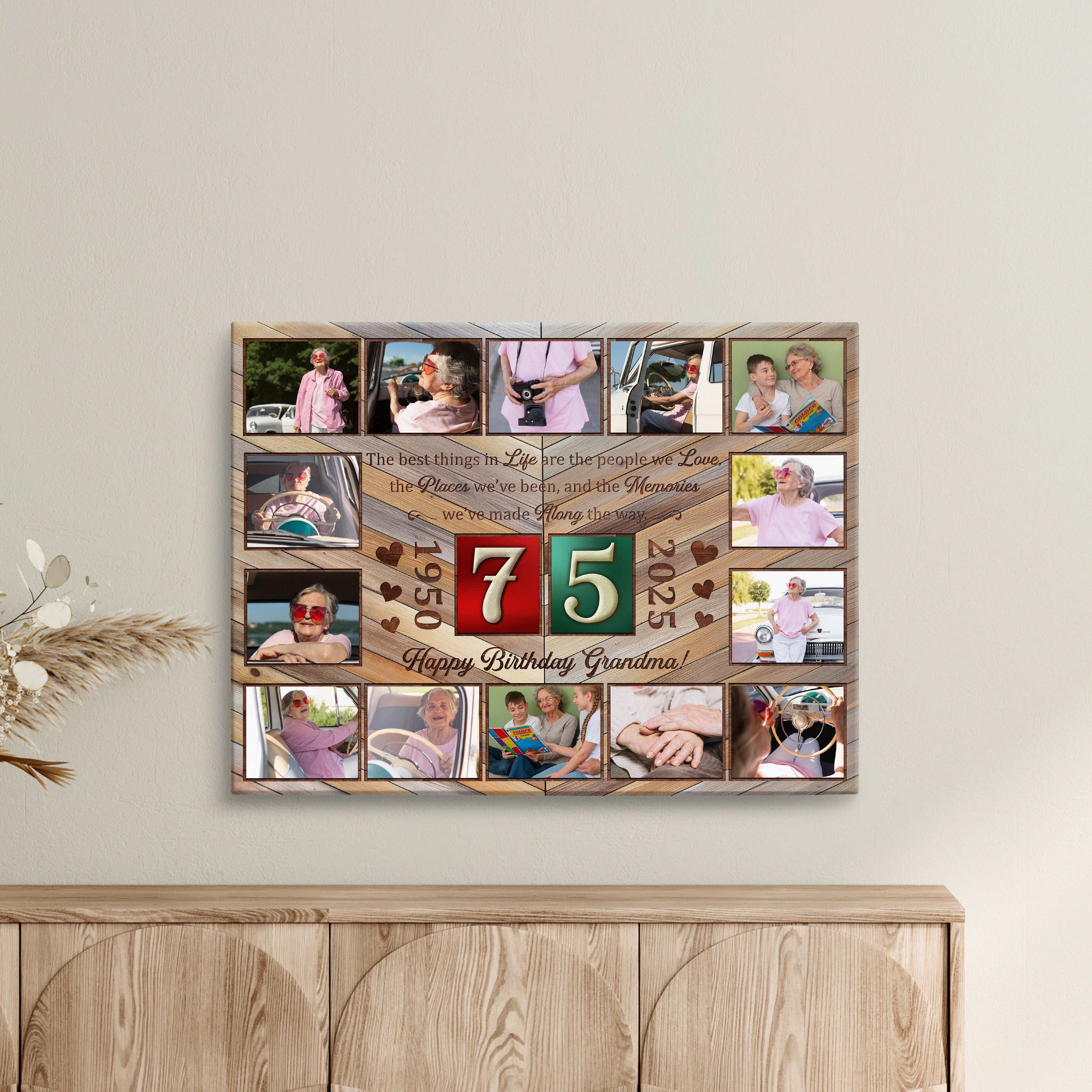 Personalized Birthday Gift For Grandparents 75th Birthday Photo Collage Custom Canvas Print Gift Idea For Grandma or Grandpa