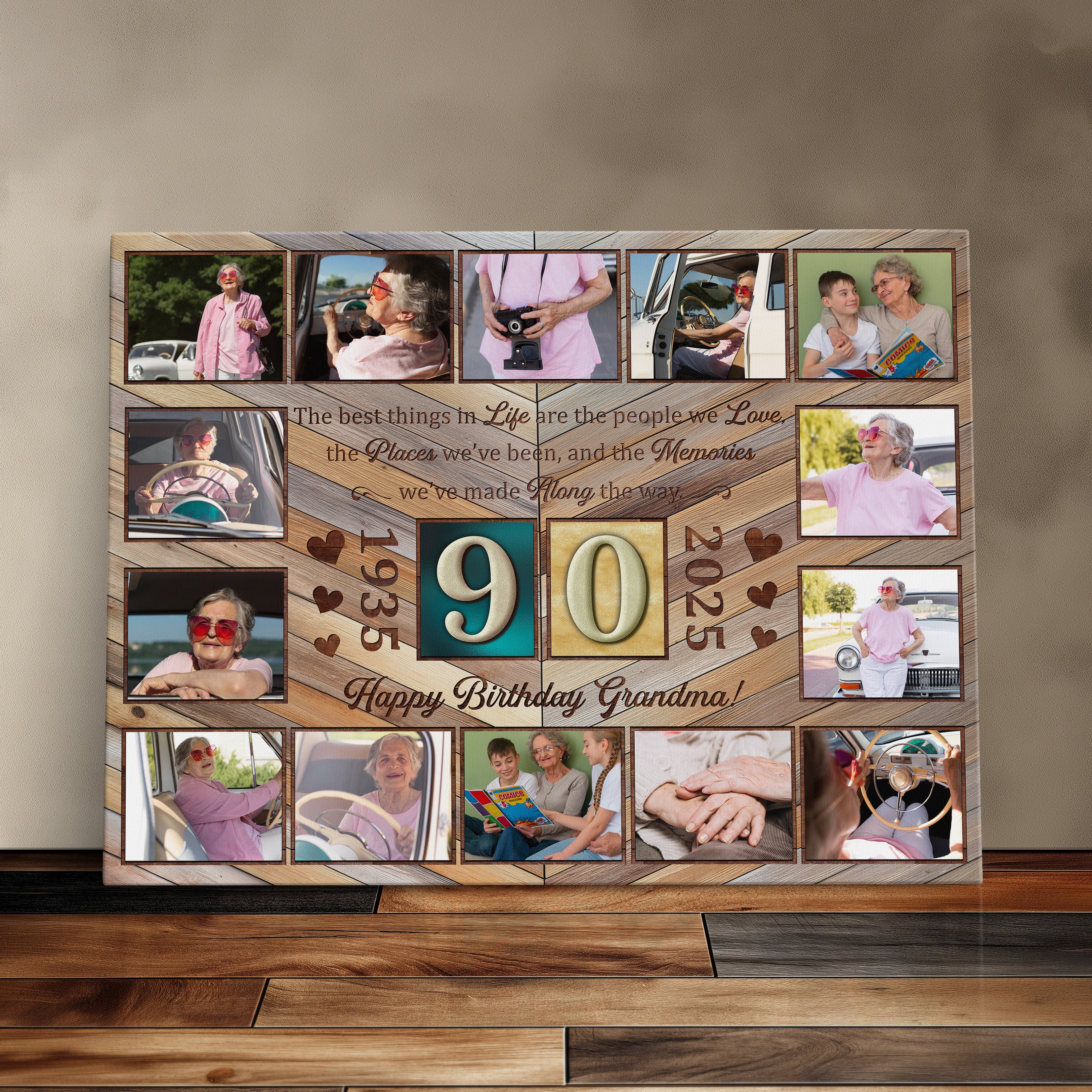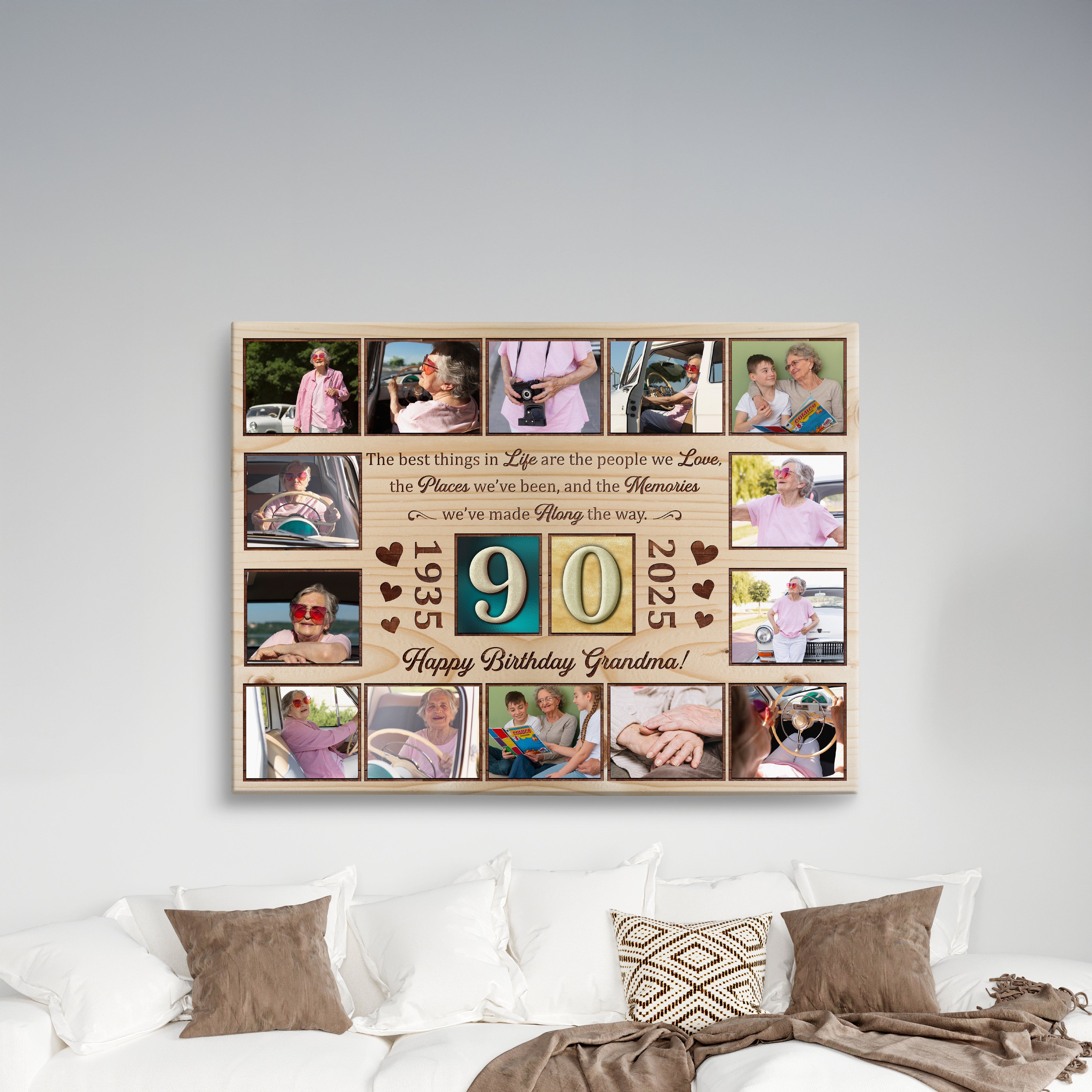 Personalized Birthday Gift For Grandparents 90th Birthday Photo Collage Custom Canvas Print Gift Idea For Grandma or Grandpa