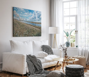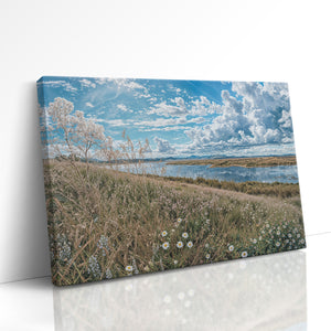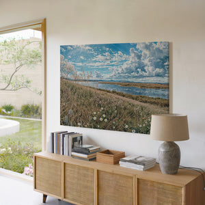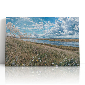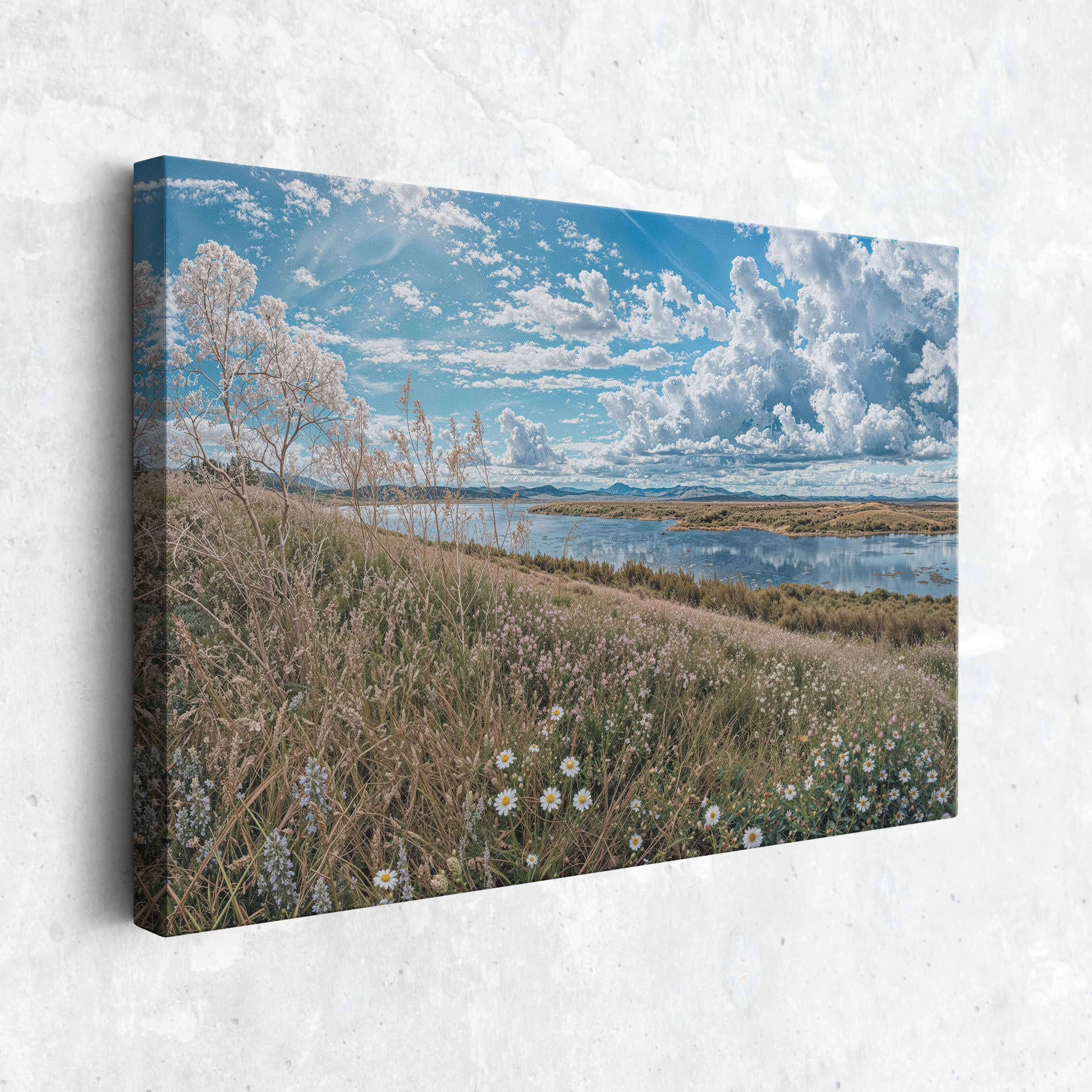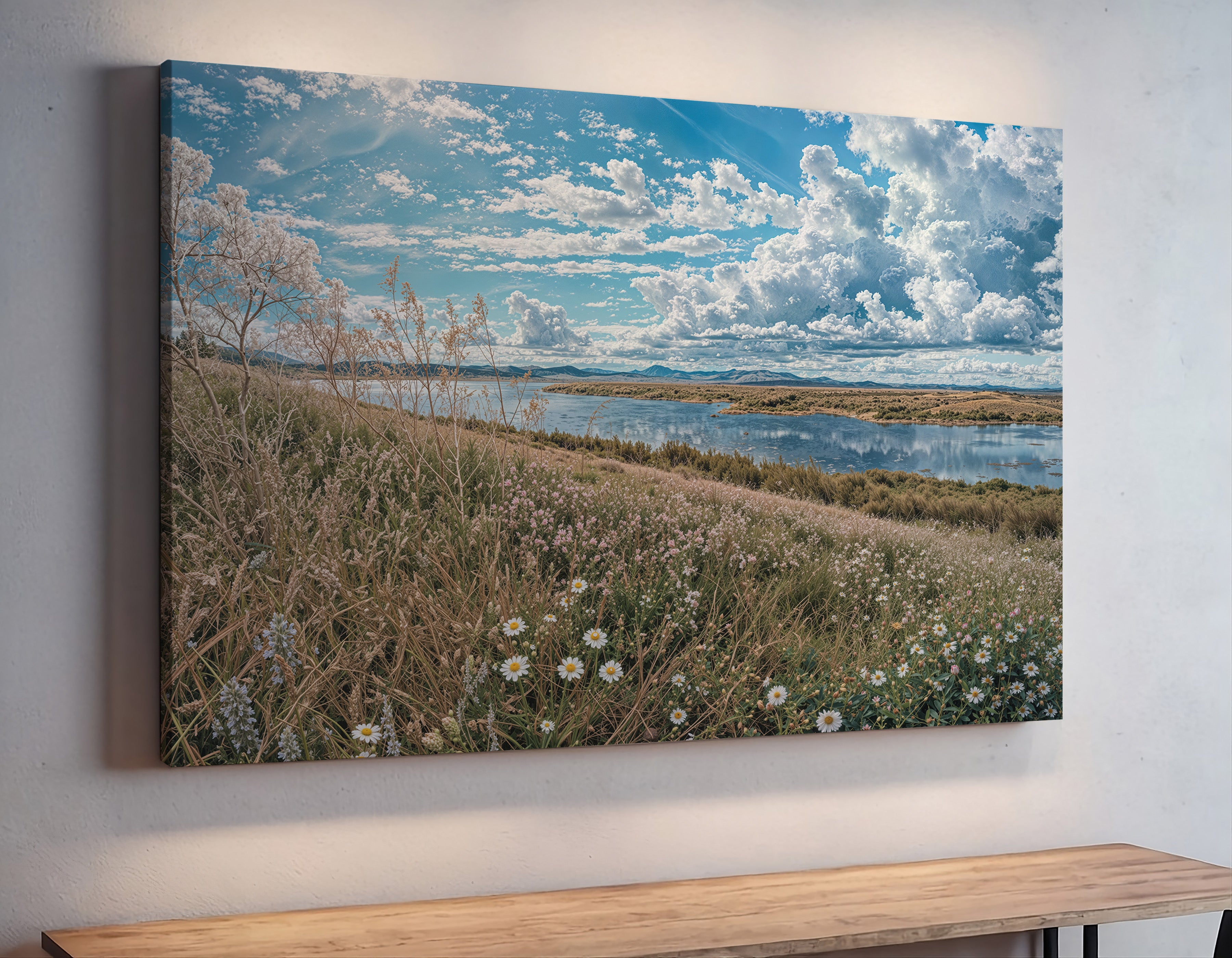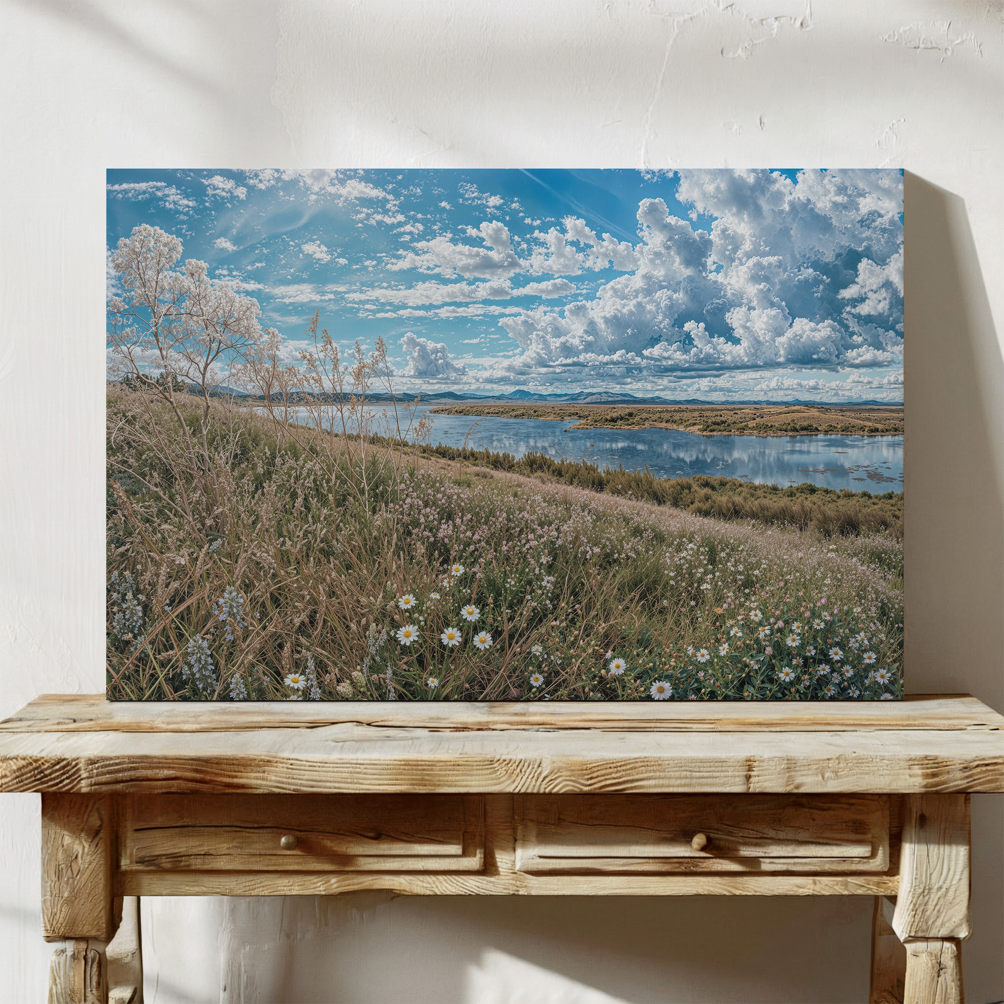 “Wildflower Meadow, Where Sky Meets Bloom” celebrates the vast beauty of nature’s open canvas — where golden fields and vivid blossoms stretch endlessly beneath a gentle sky. This floral landscape offers a harmonious balance of earth and air, color and calm. Printed on a 1.5" gallery-wrapped canvas, this serene canvas print adds pastoral charm to your wall art collection. Perfect for romantic home decor, wall hangings, art prints, or as a thoughtful housewarming gift, it brings a sense of renewal and stillness to any space.