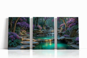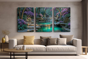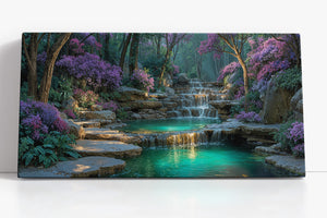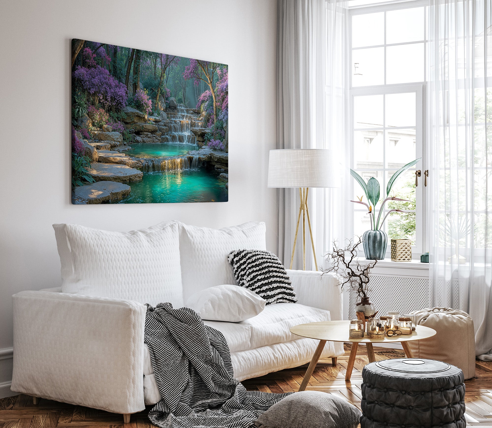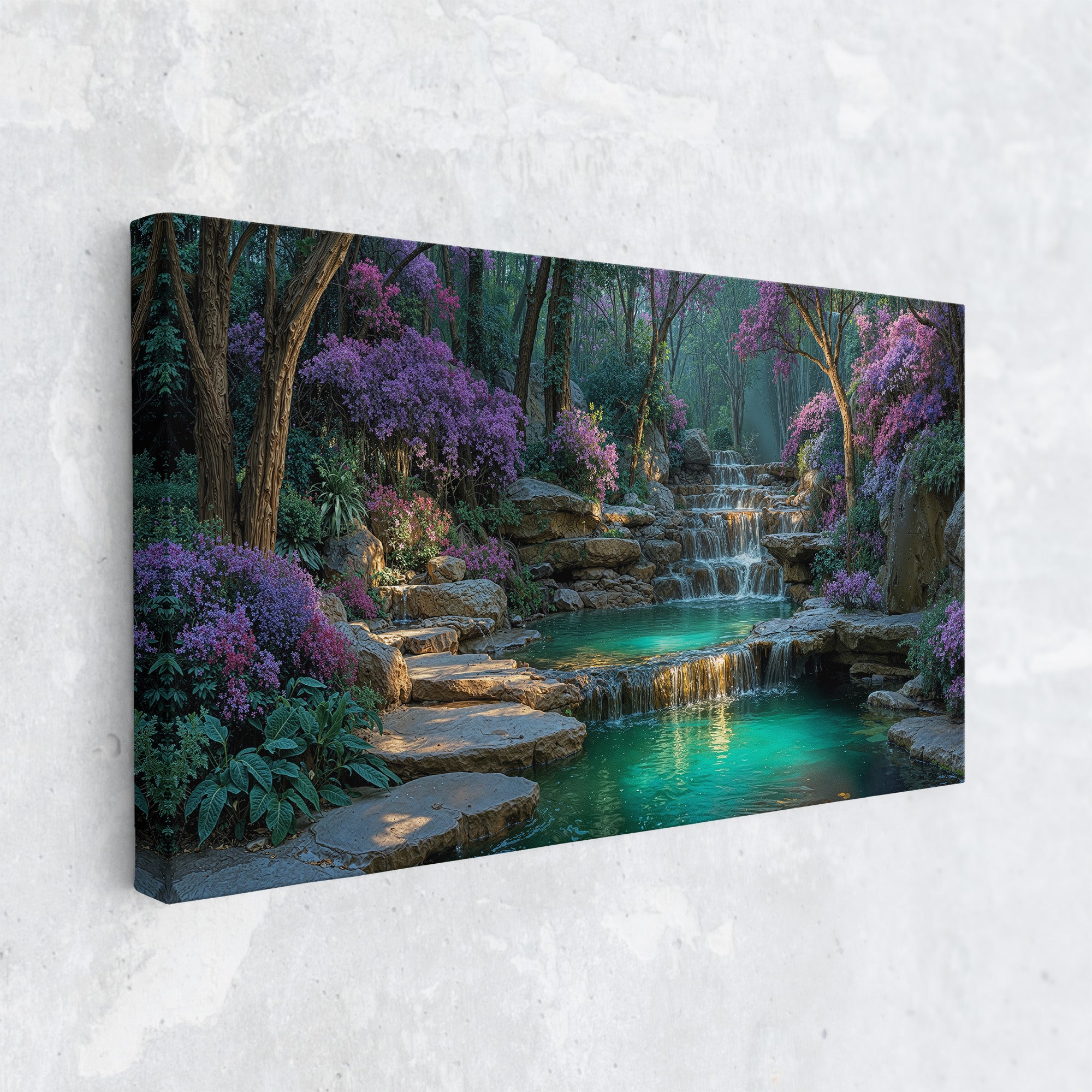 Let nature’s elegance bloom in your home with this enchanting canvas print featuring a serene cascading waterfall surrounded by vivid floral gardens and glowing emerald waters. Lavender and pink blossoms wrap the scene in color, while natural stone steps lead the eye into a peaceful oasis. It’s a calming escape — the perfect wall art for tranquil interiors or garden-inspired spaces. This gallery wrapped canvas print brings harmony and beauty to any room and makes a thoughtful housewarming gift or peaceful bedroom accent. Available in three stunning formats, it’s designed to elevate your decor with premium craftsmanship and unforgettable detail.