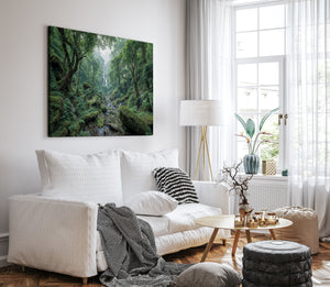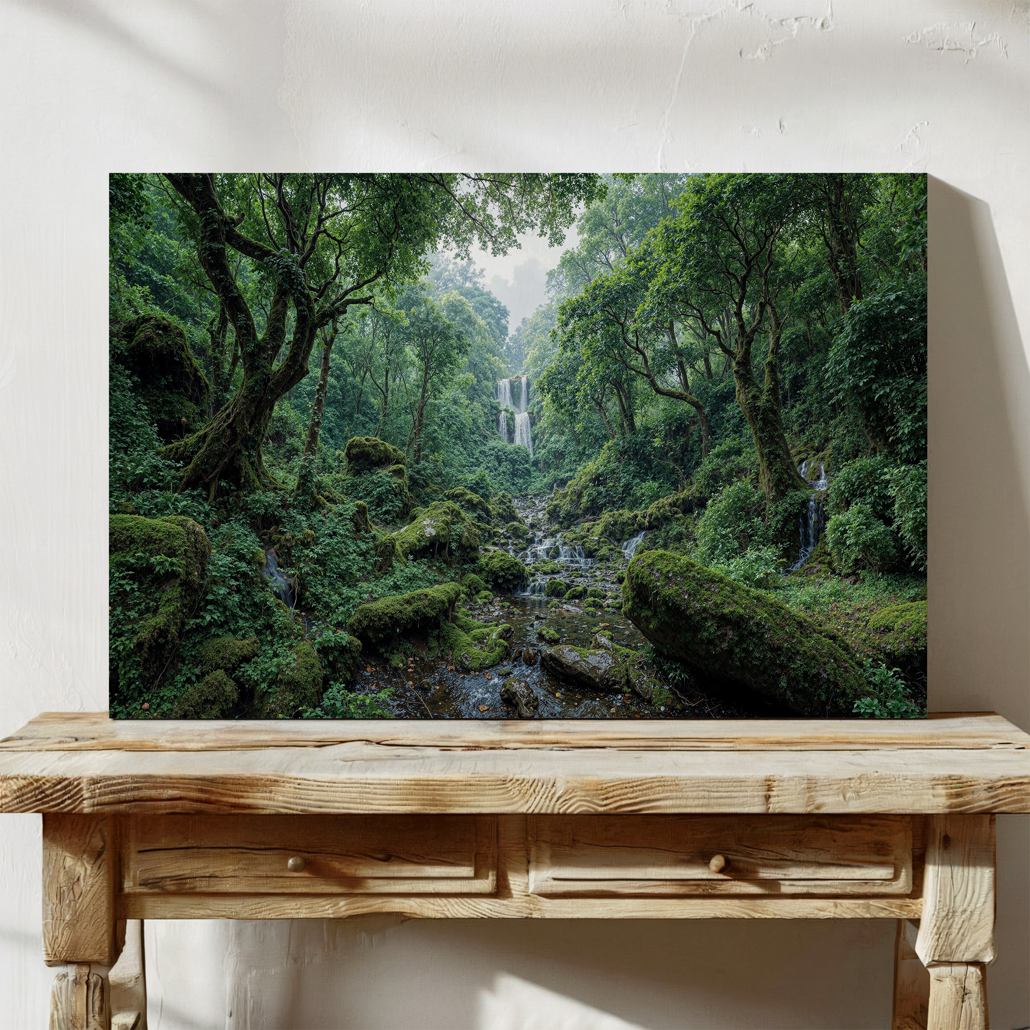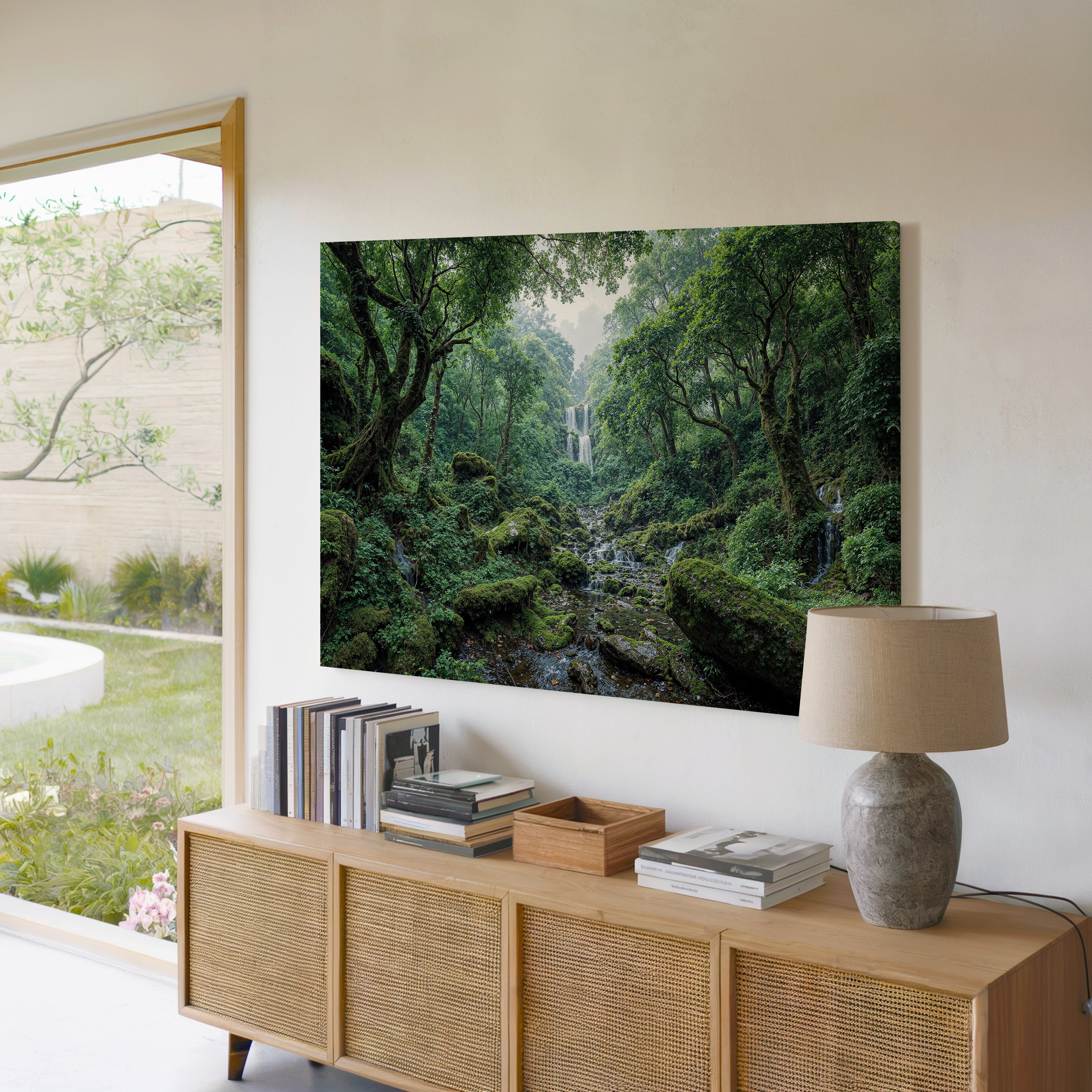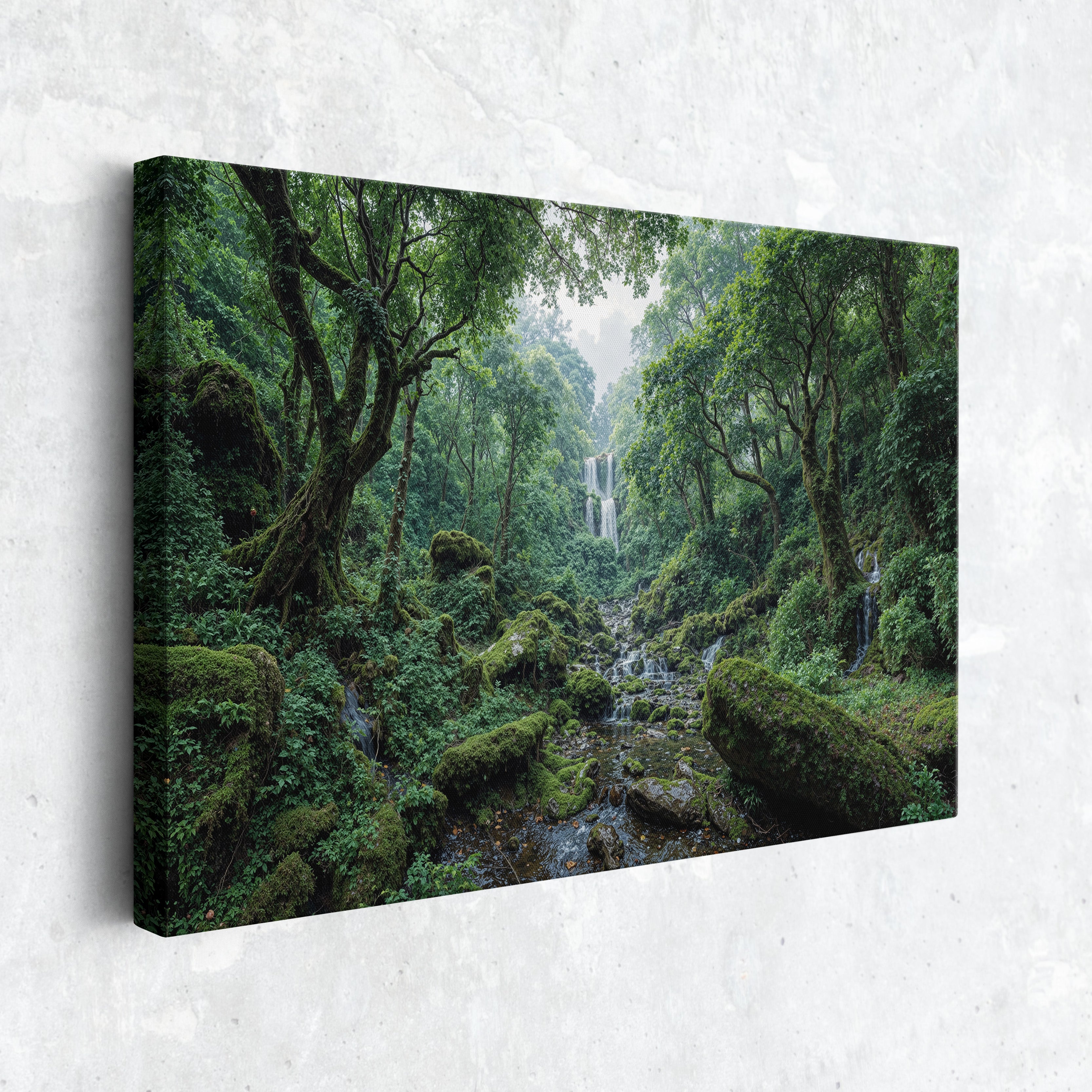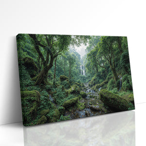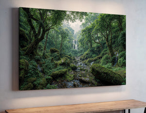 "Whispers of the Hidden Falls" draws you into a lush green forest where a secluded waterfall tumbles gracefully through layers of mossy rocks and ancient trees. The untouched beauty of nature radiates peace and wonder in every detail. This canvas print is perfect for bringing serenity and natural charm into your space. Whether you're creating a calming retreat or looking for nature-inspired wall decor, this piece offers a beautiful reminder of the world's hidden wonders.