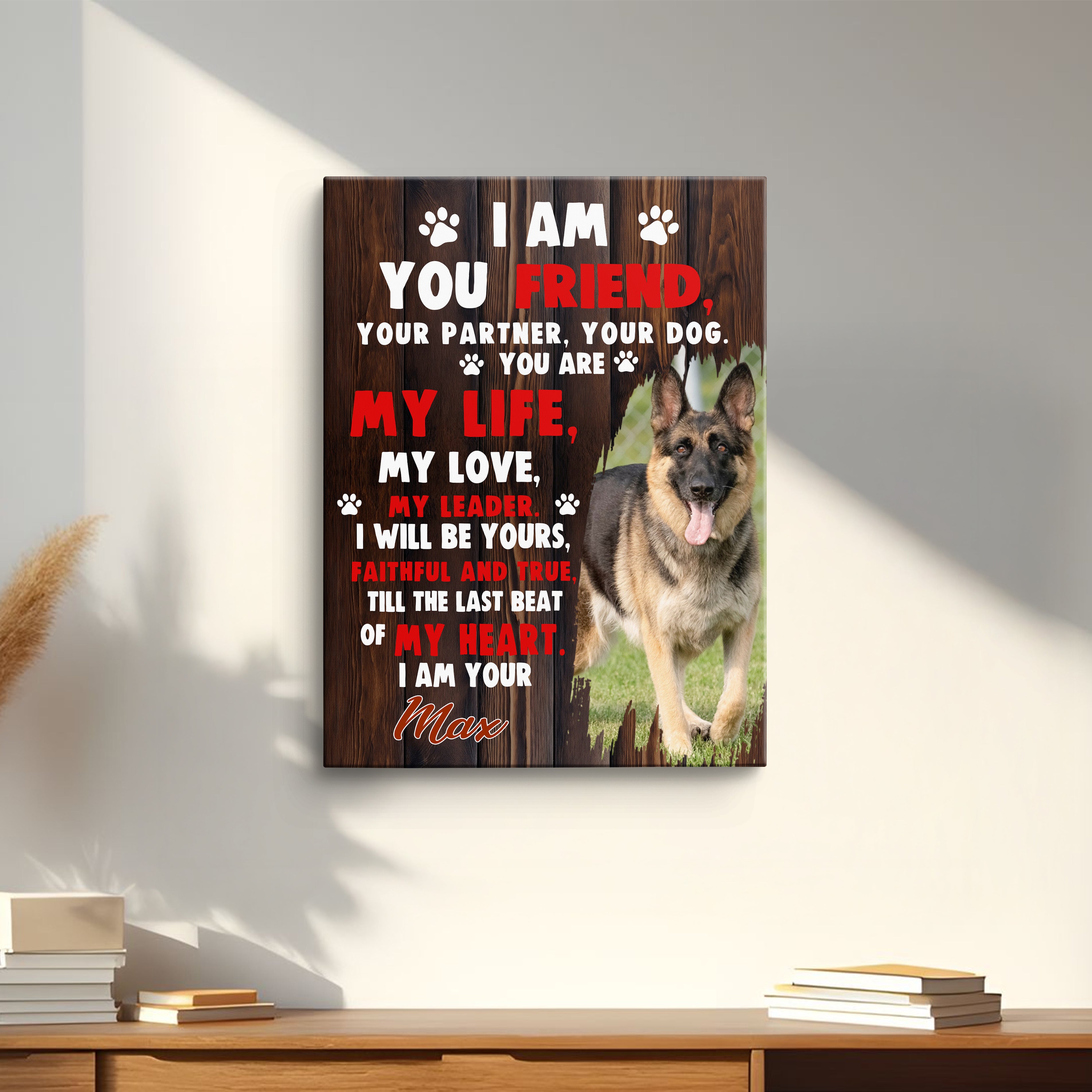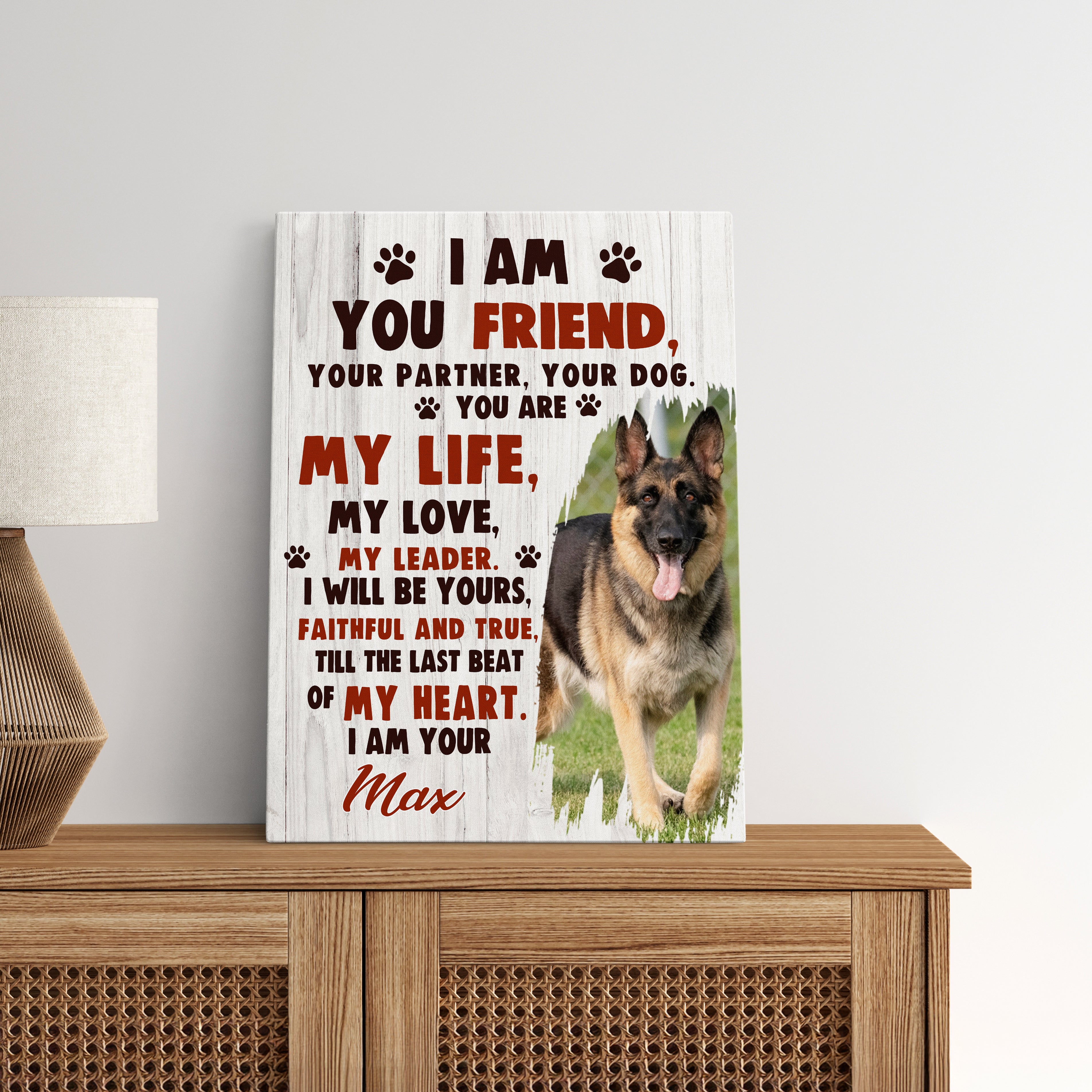 This dog lover gift is a personalized dog canvas featuring a custom photo collage design. Perfect as a German Shepherd photo gift idea, it makes a thoughtful mom birthday gift or a meaningful dog dad gift. A unique custom pet portrait that turns treasured memories into lasting wall art.