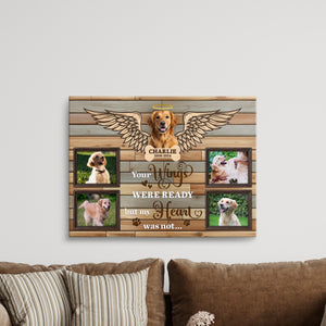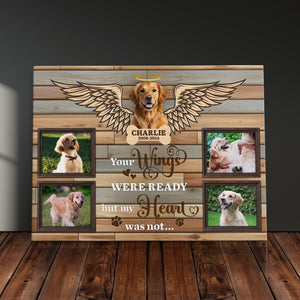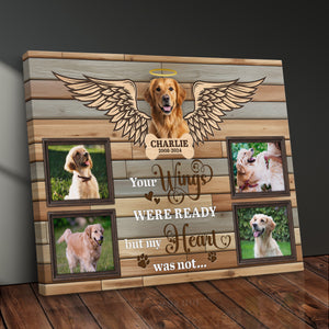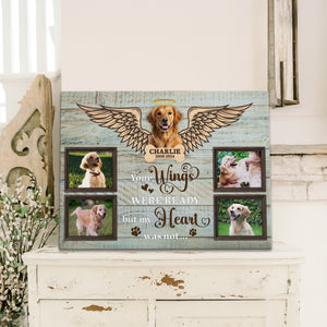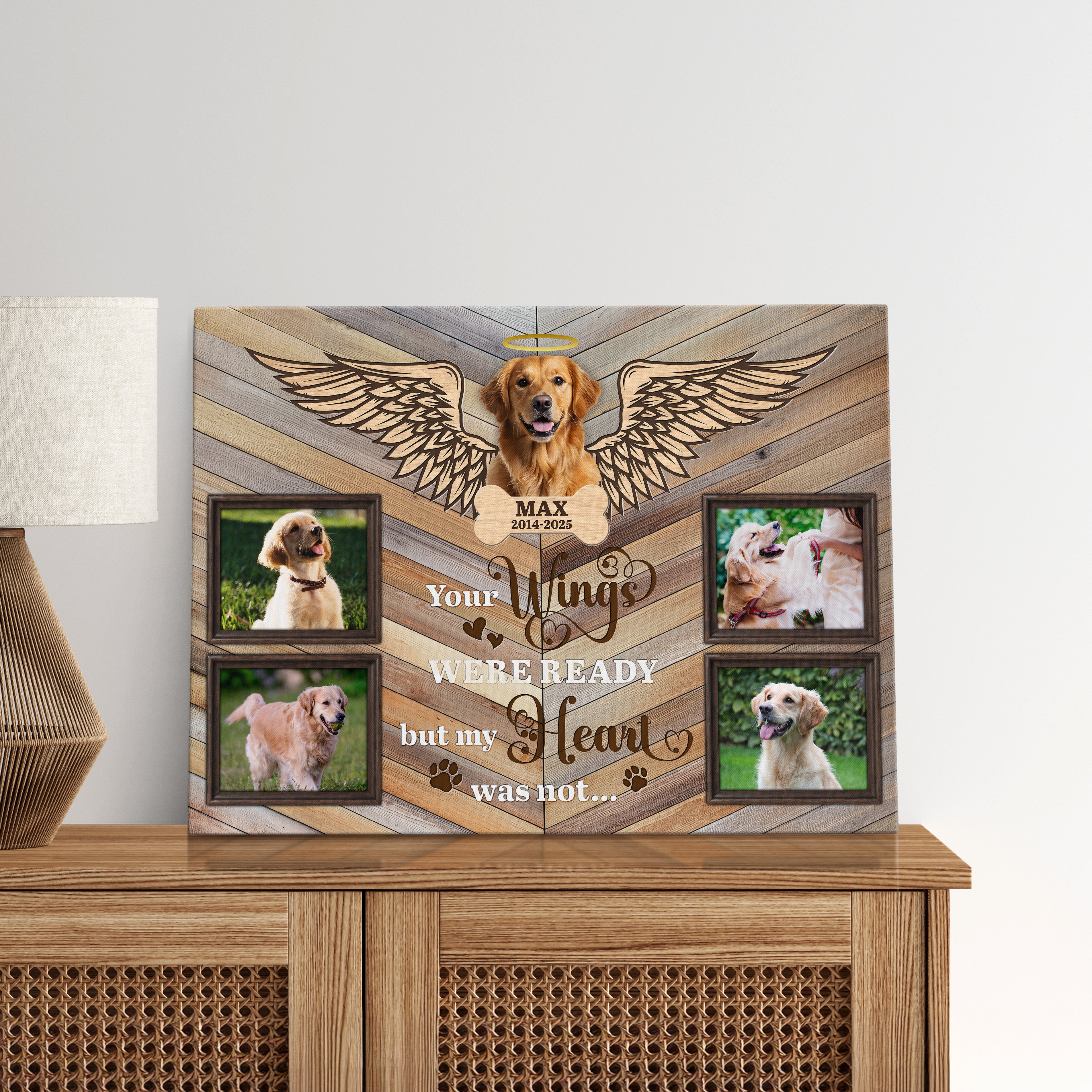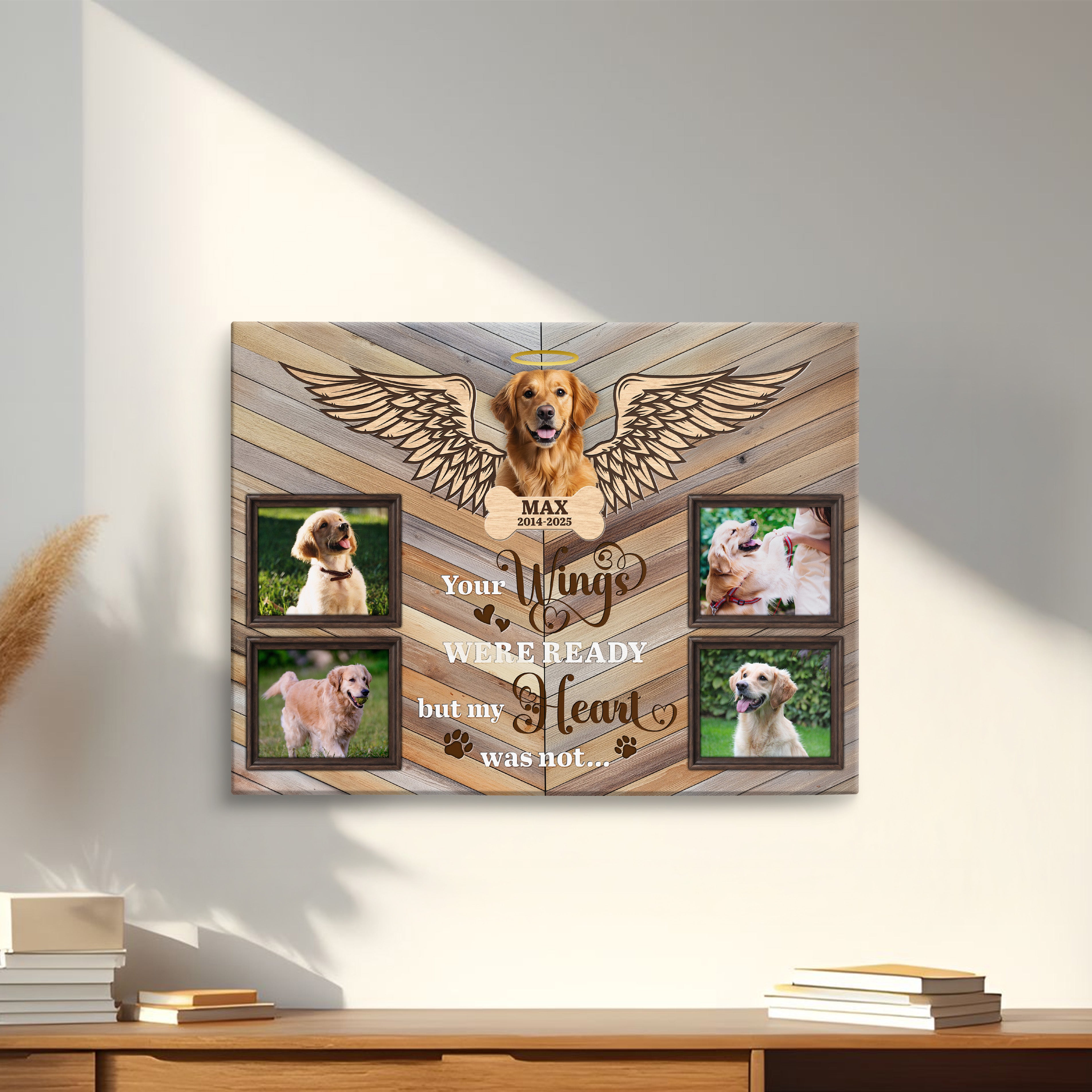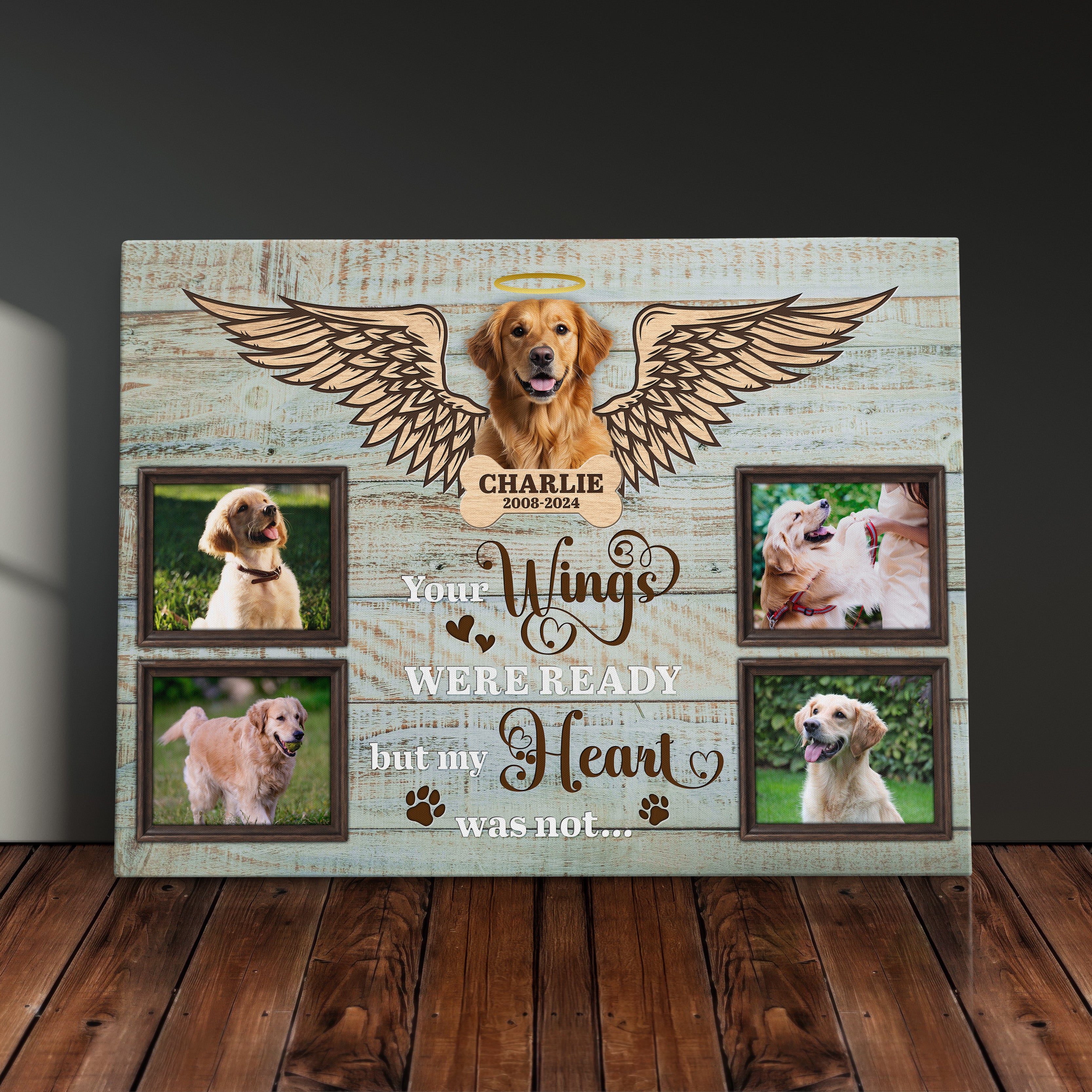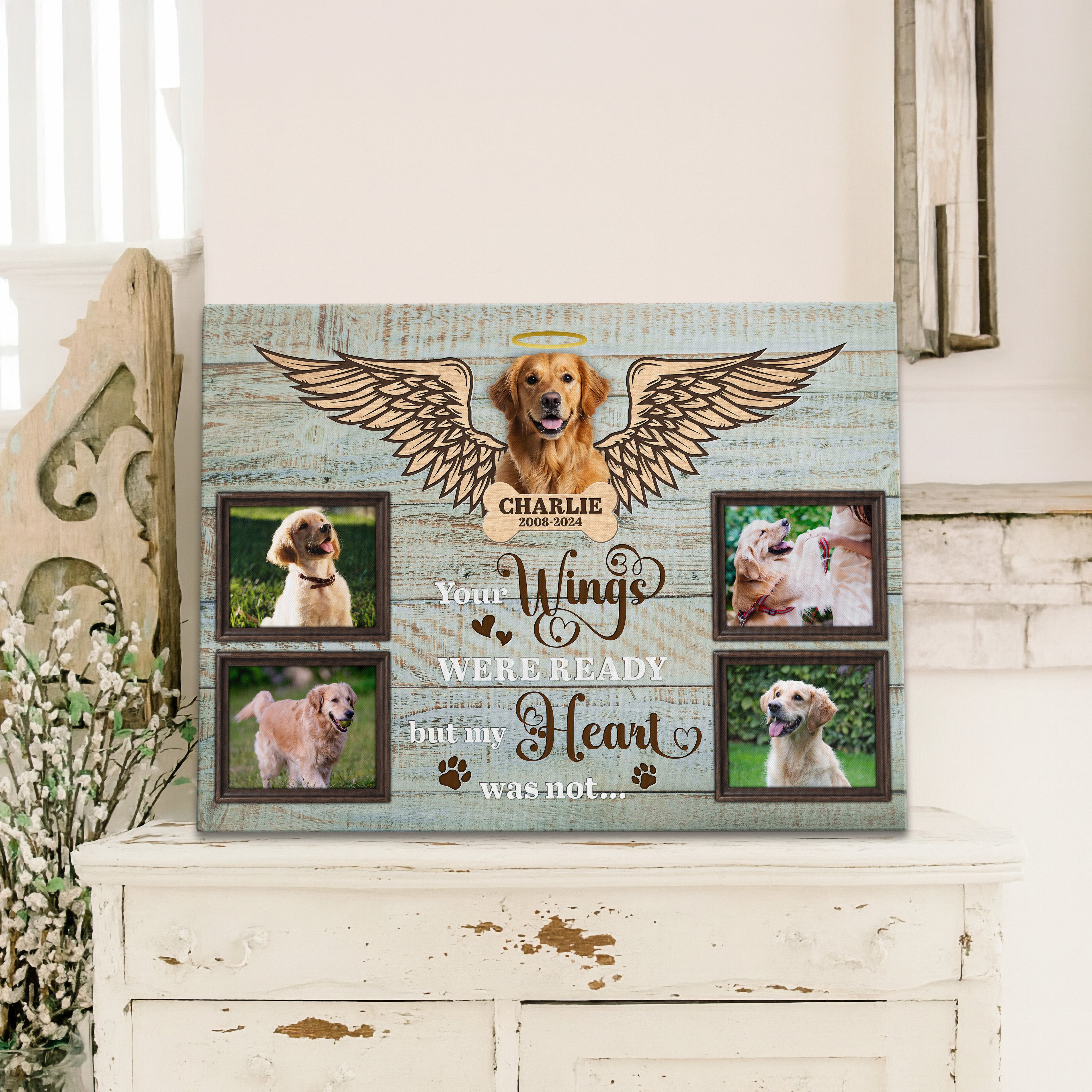 Transform your cherished pet memories into stunning personalized wall art with this memorial canvas featuring a touching angel wing design. This custom pet tribute serves as a beautiful Gift For Dog Loss that celebrates your beloved dog's life, creating a lasting pet photo memory wall that brings comfort during times of loss.