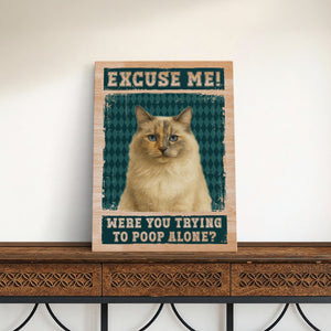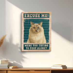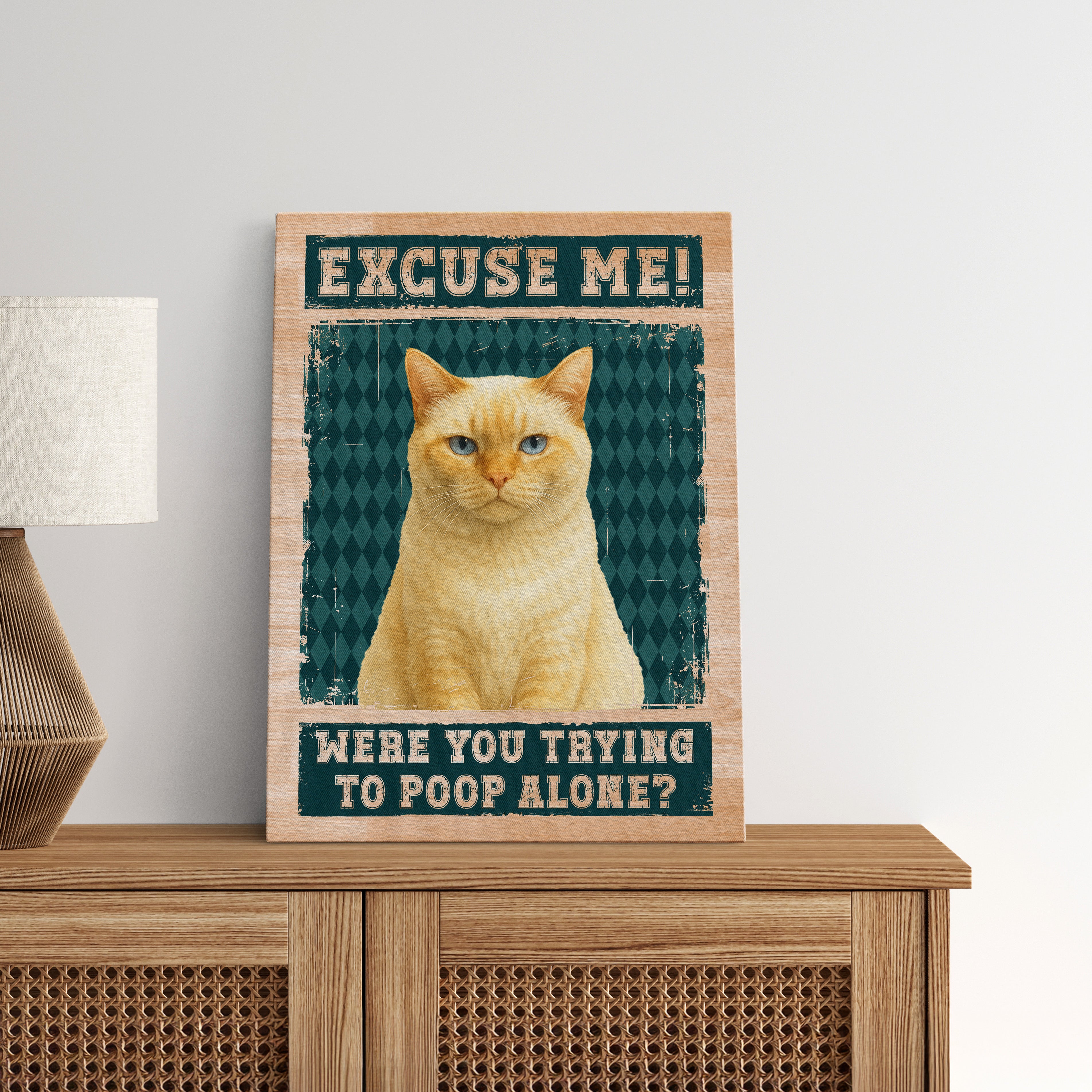 Personalized Funny Cat Bathroom Decor Canvas Print For Cat Mom, Custom Gift For Cat Lover, Were You Trying To Poop Alone