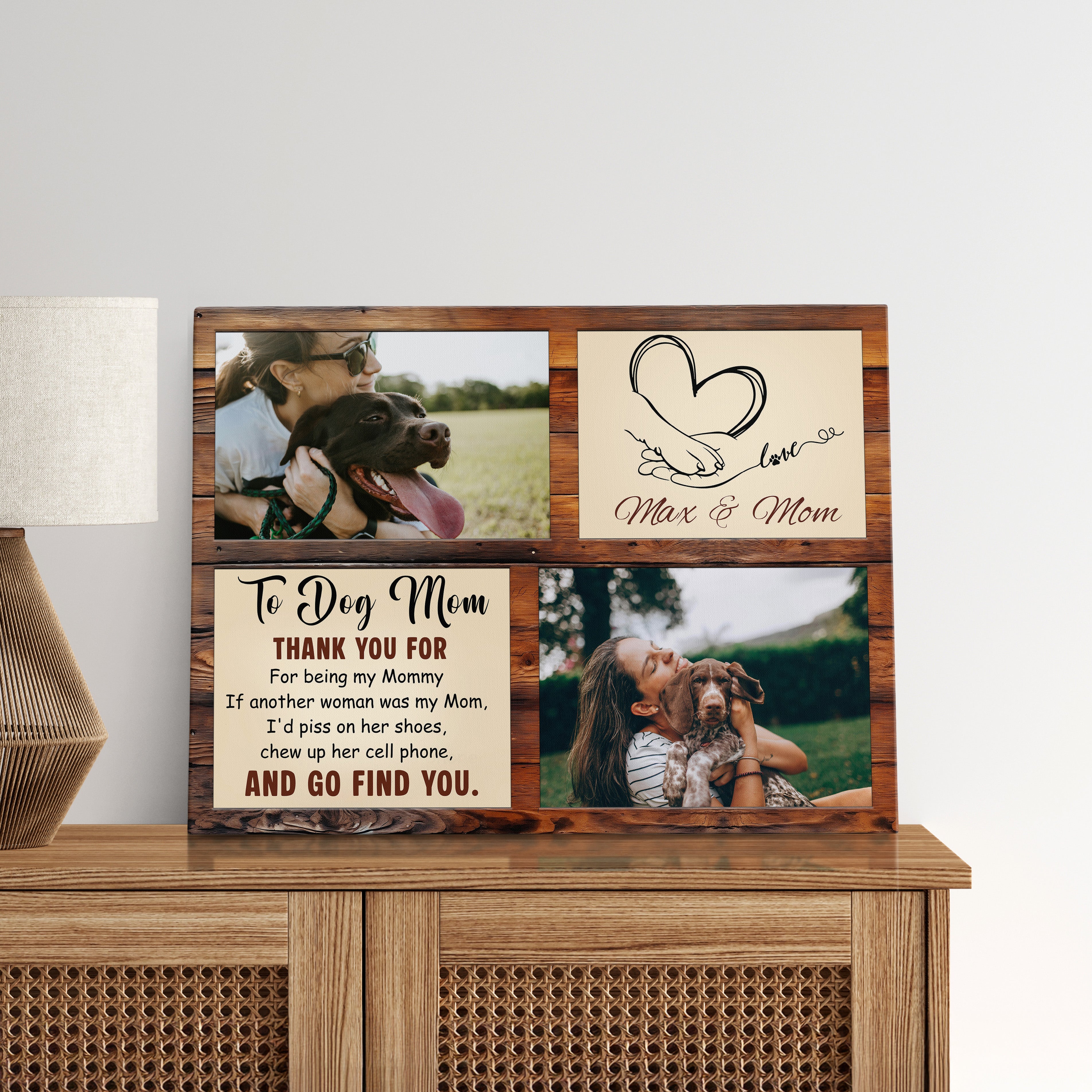 This personalized gift for a dog lover is a meaningful canvas photo collage that celebrates the bond with a beloved pet. Designed as a custom dog picture frame, it makes a thoughtful dog mom gift or pet memorial wall art. A heartfelt choice for dog loss, this loss of dog gift brings comfort while keeping cherished memories close.