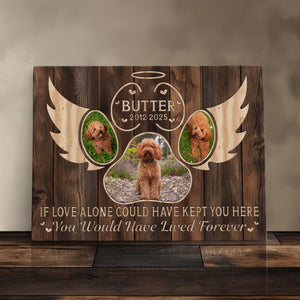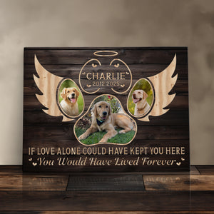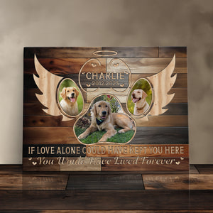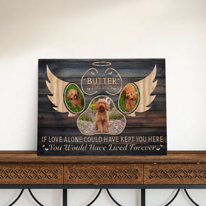 Transform cherished memories into a heartfelt custom photo tribute that serves as both beautiful wall art and a touching sympathy gift. This angel wing display piece features your beloved pet's photos on a premium memory canvas, elegantly framed with a gallery wrap design that creates a lasting remembrance portrait for any pet owner.