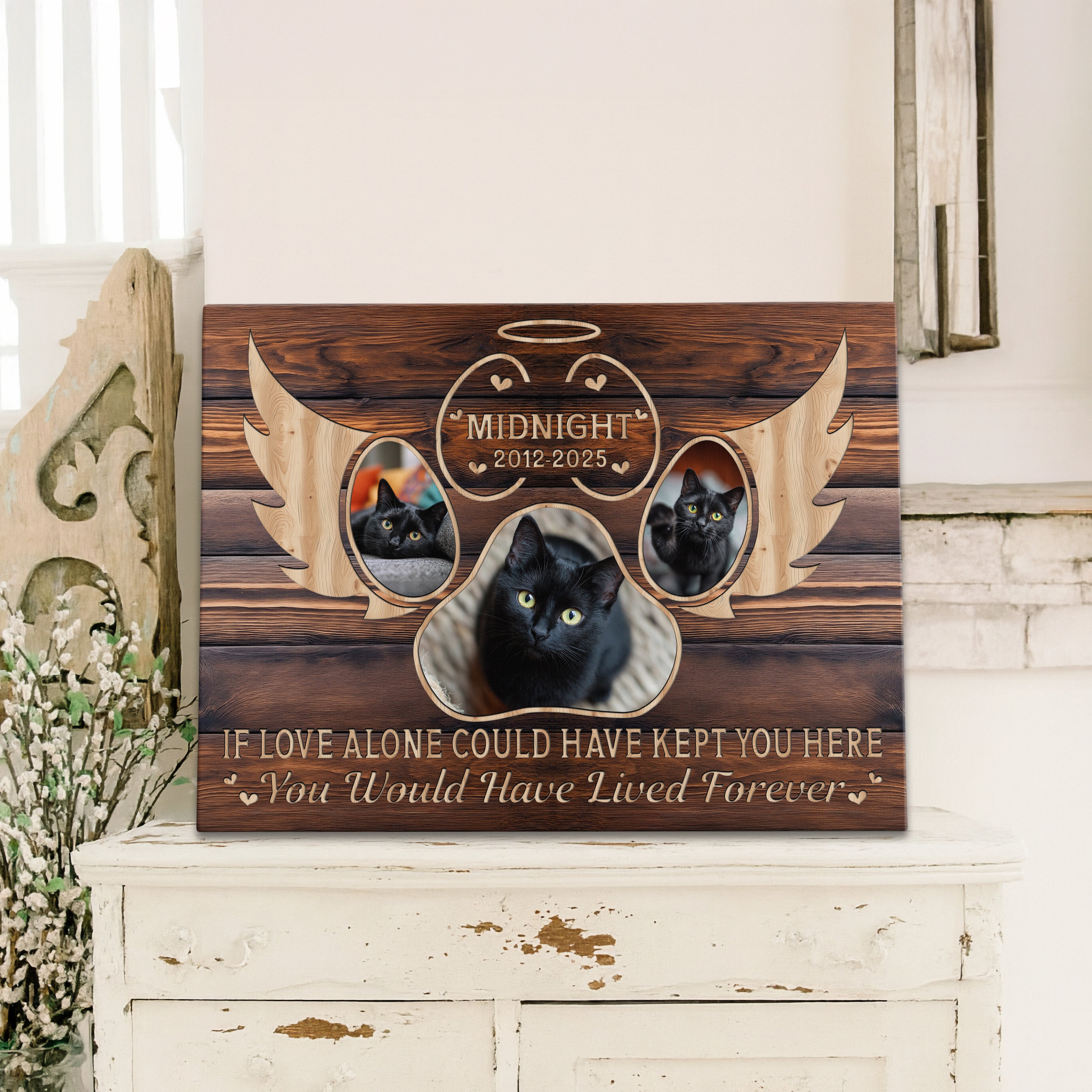 This custom memorial canvas is a heartfelt cat loss gift for a grieving cat mom or pet parent. It also serves as a touching pet remembrance gift and a meaningful loss of dog bereavement gift. Whether you're searching for cat memorial ideas or a dog loss sympathy gift, this personalized artwork brings comfort through cherished memories.