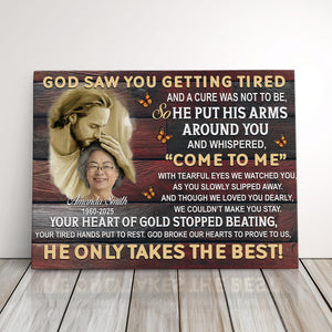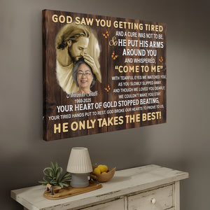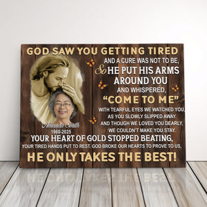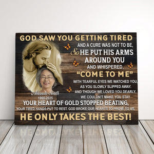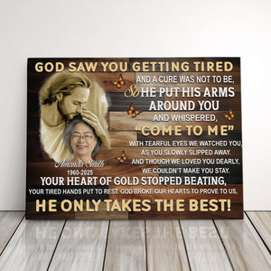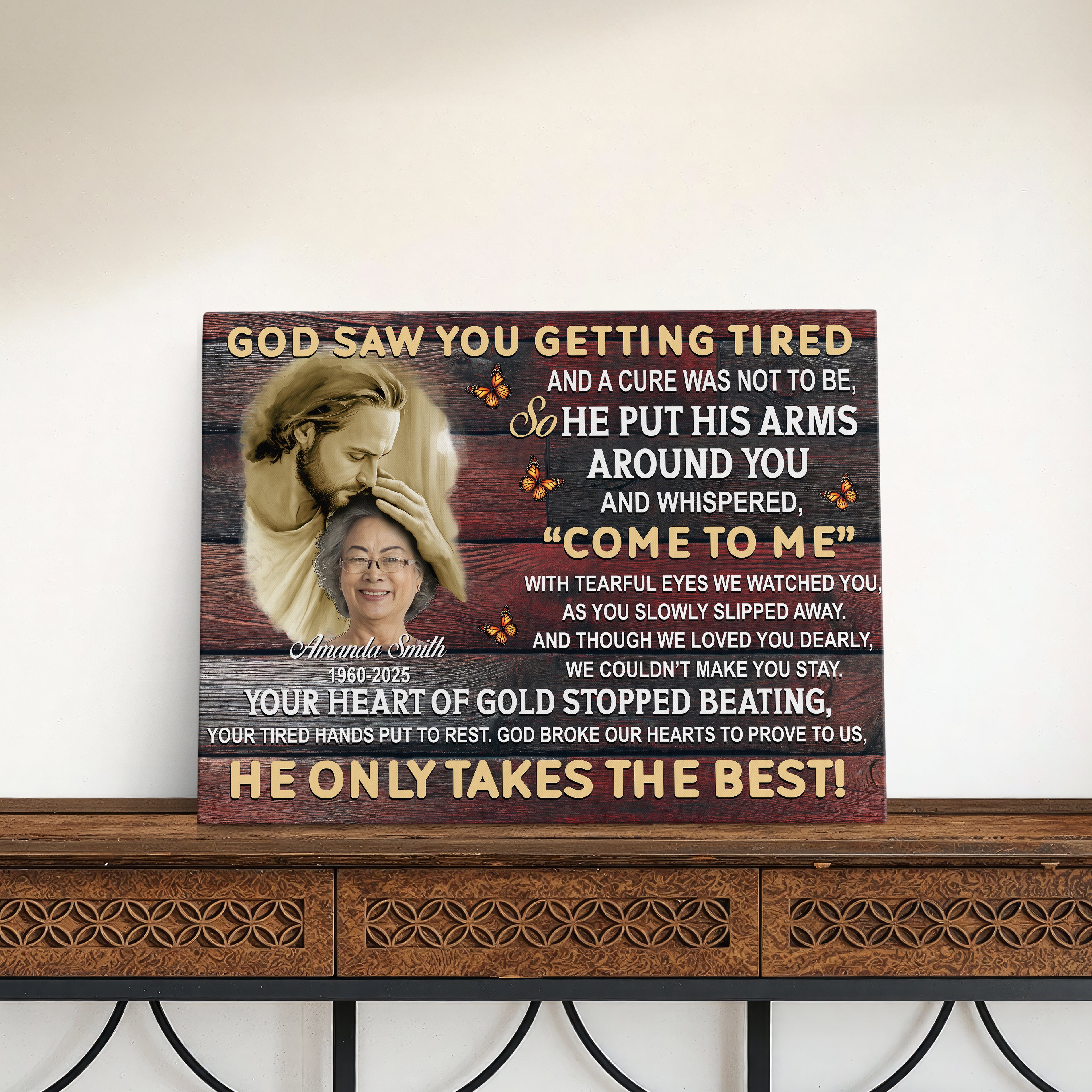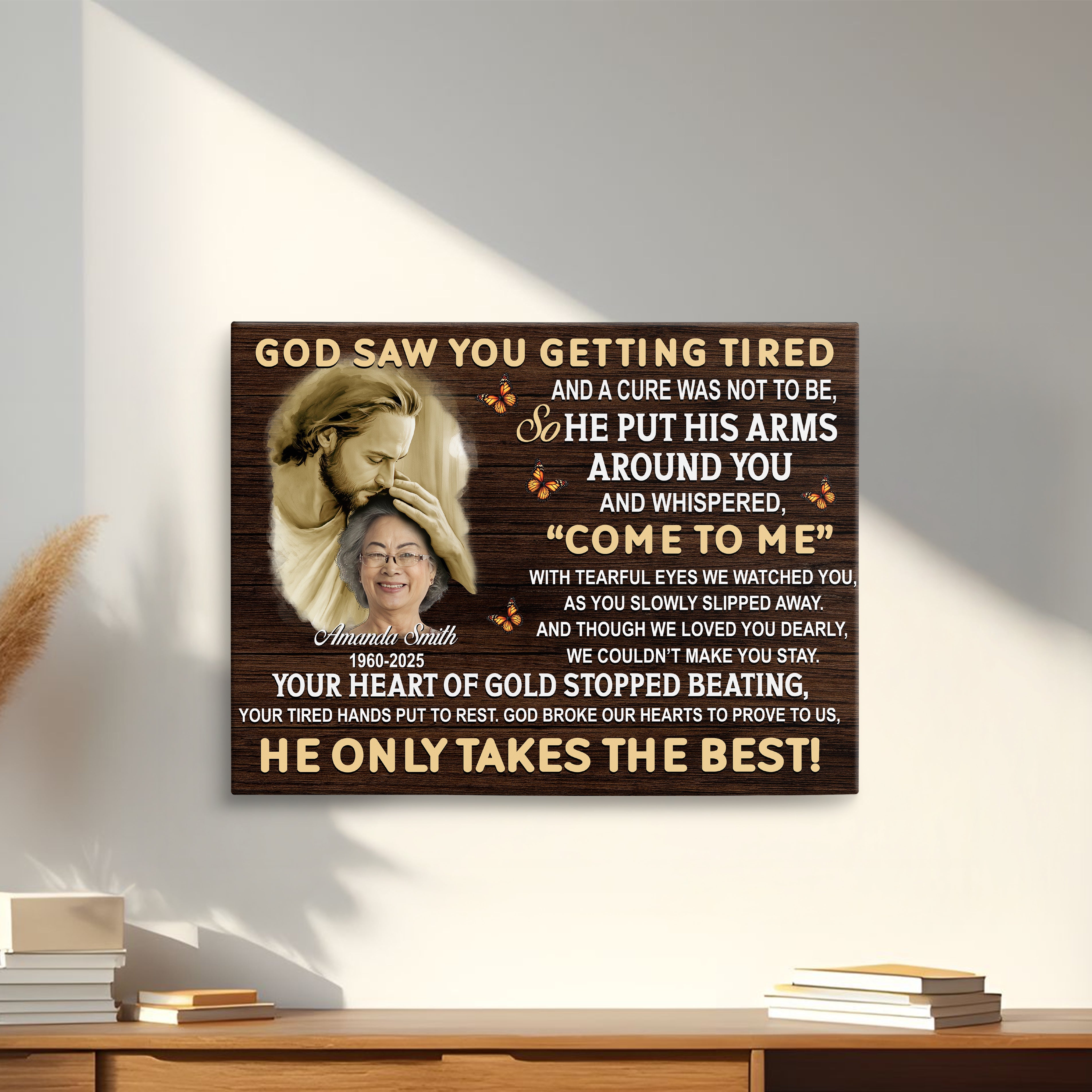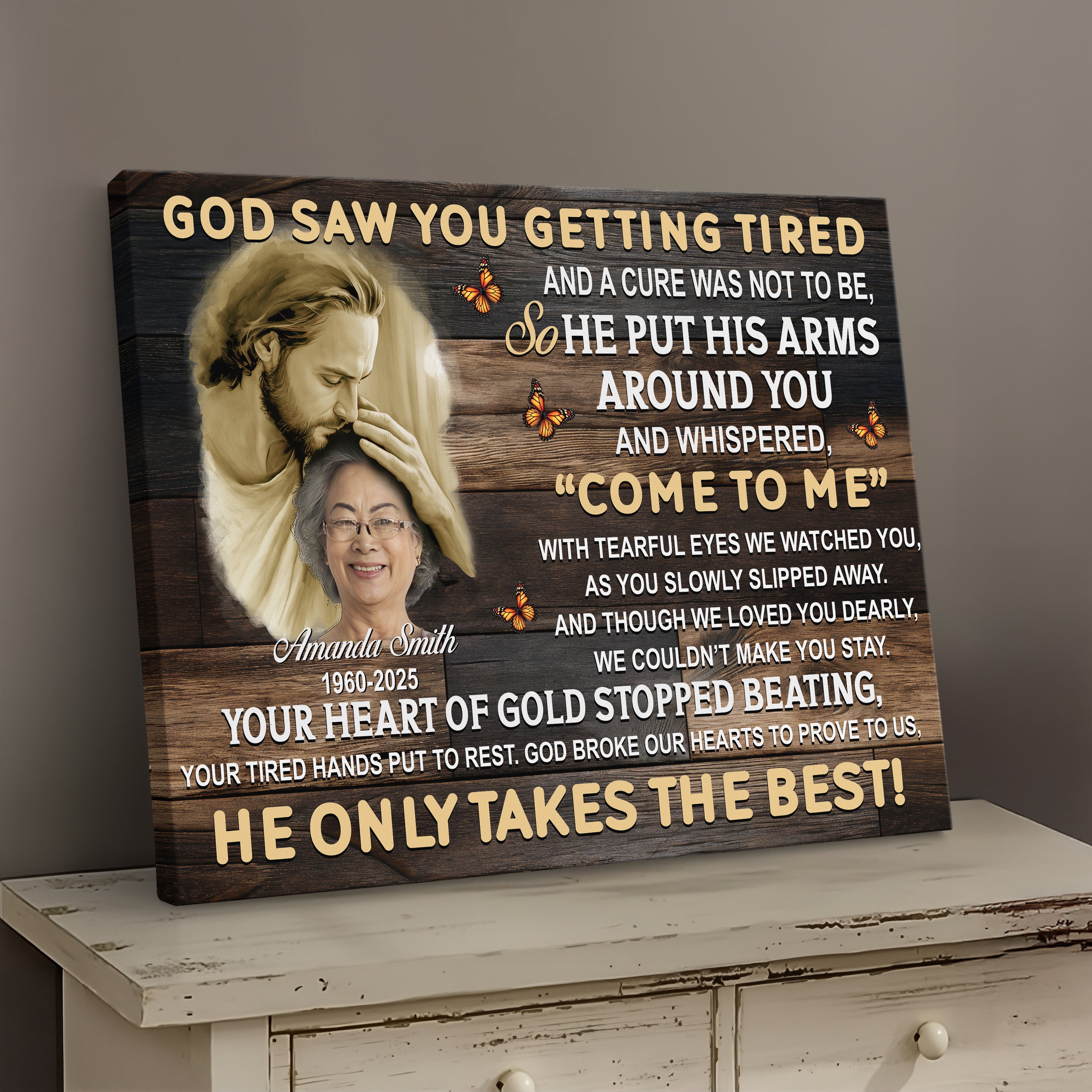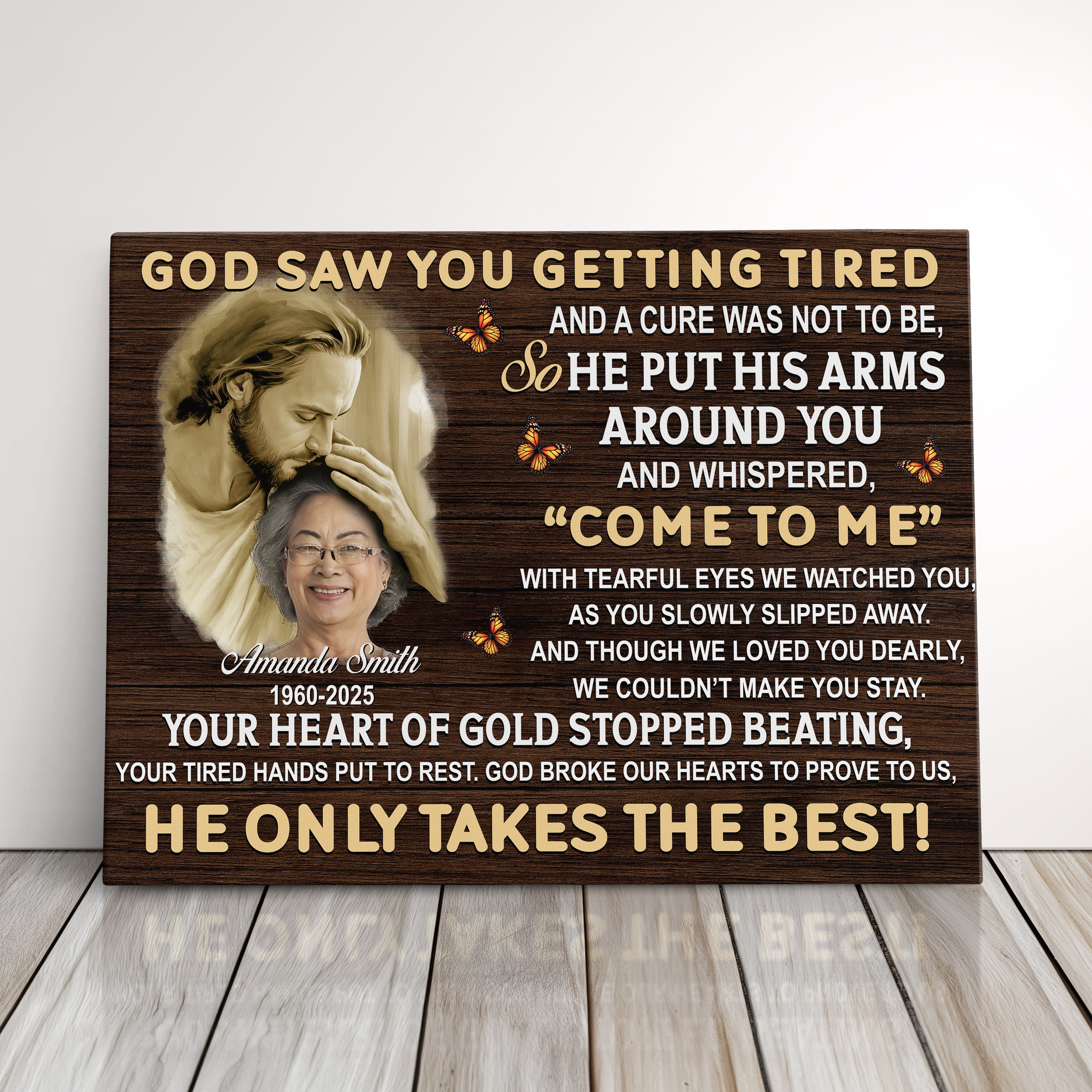 Personalized Memorial Canvas Print, Custom Photo Sympathy Gift For Loss Of Mom, Dad, Or Loved Ones, God Saw You Getting Tired Canvas