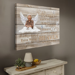 This memorial photo to canvas print is a heartfelt condolence gift for the loss of a loved one. Thoughtfully personalized, it offers comfort as a sympathy gift for the loss of a mother or another close family member. A peaceful rest in peace tribute, this memorial canvas brings cherished memories to life.