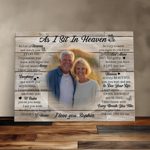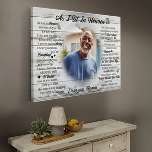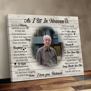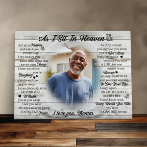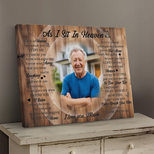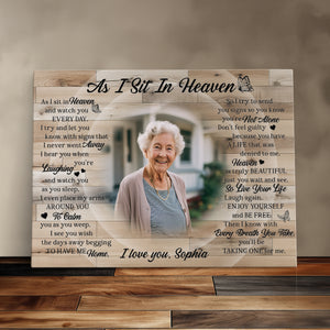 Personalized Rest In Peace Memorial Canvas Print, Custom Photo Sympathy Gift, Remembrance Gift For Loss Of Loved One, As I Sit In Heaven Canvas