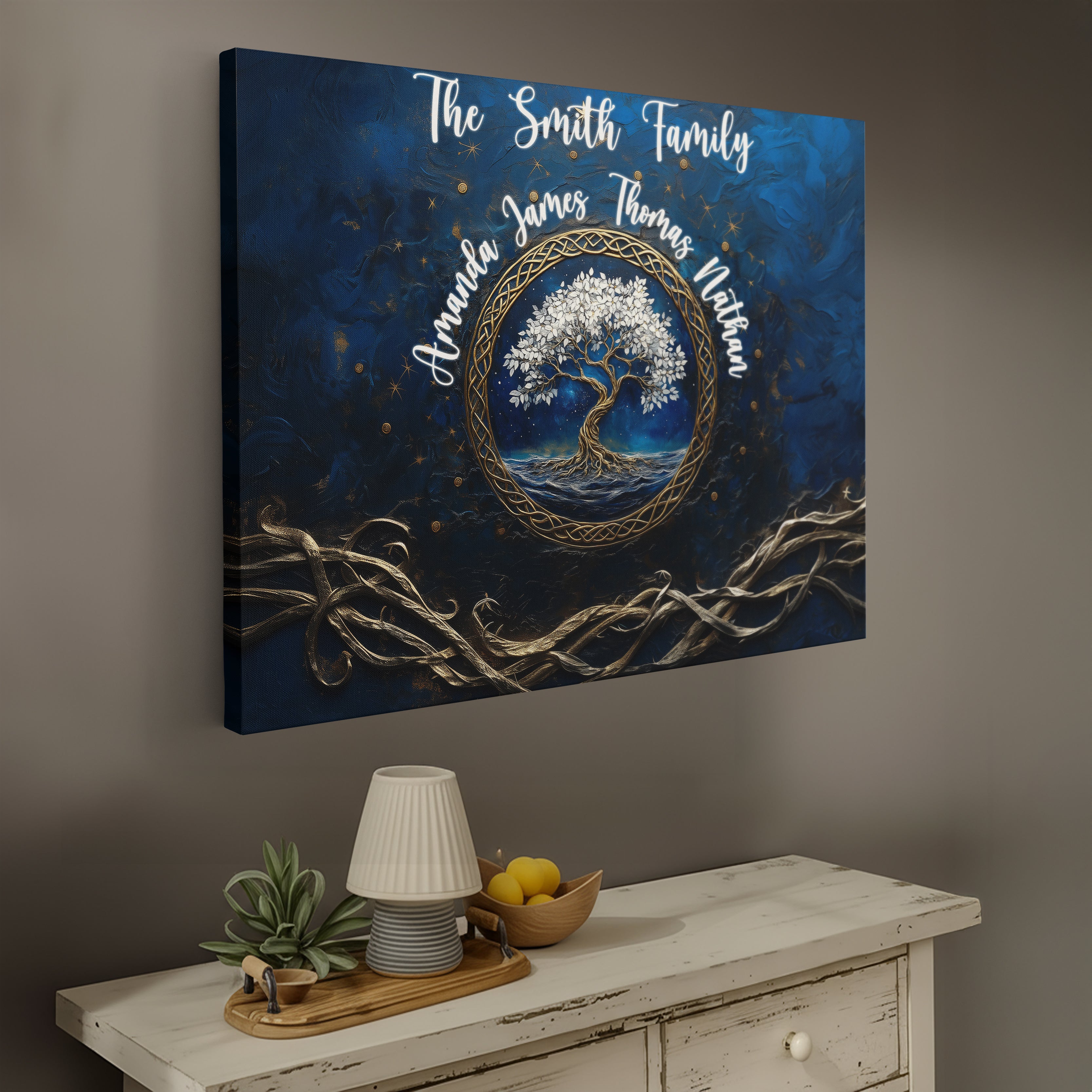 Celebrate the roots and branches of your family with this elegant, personalized Tree of Life canvas print.
