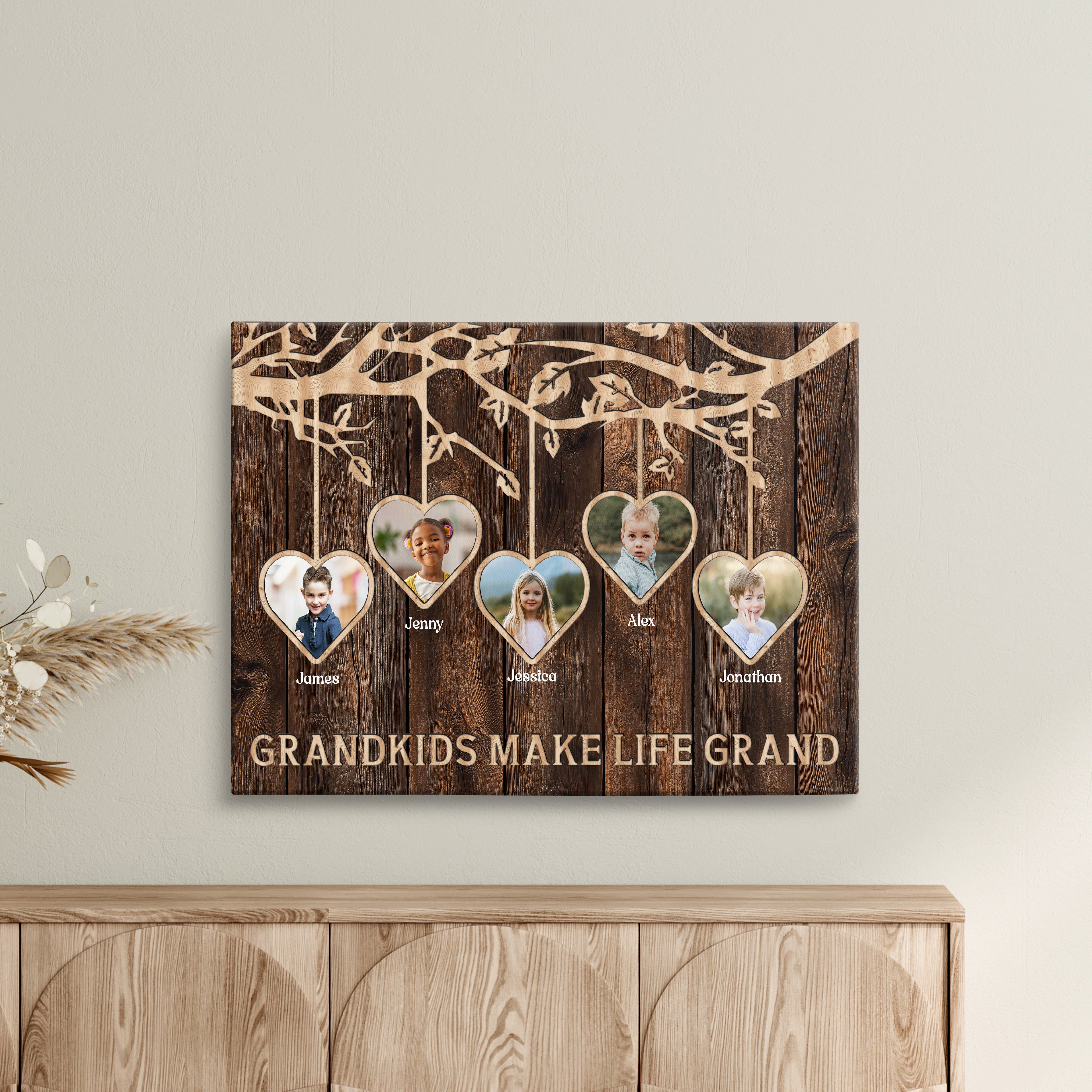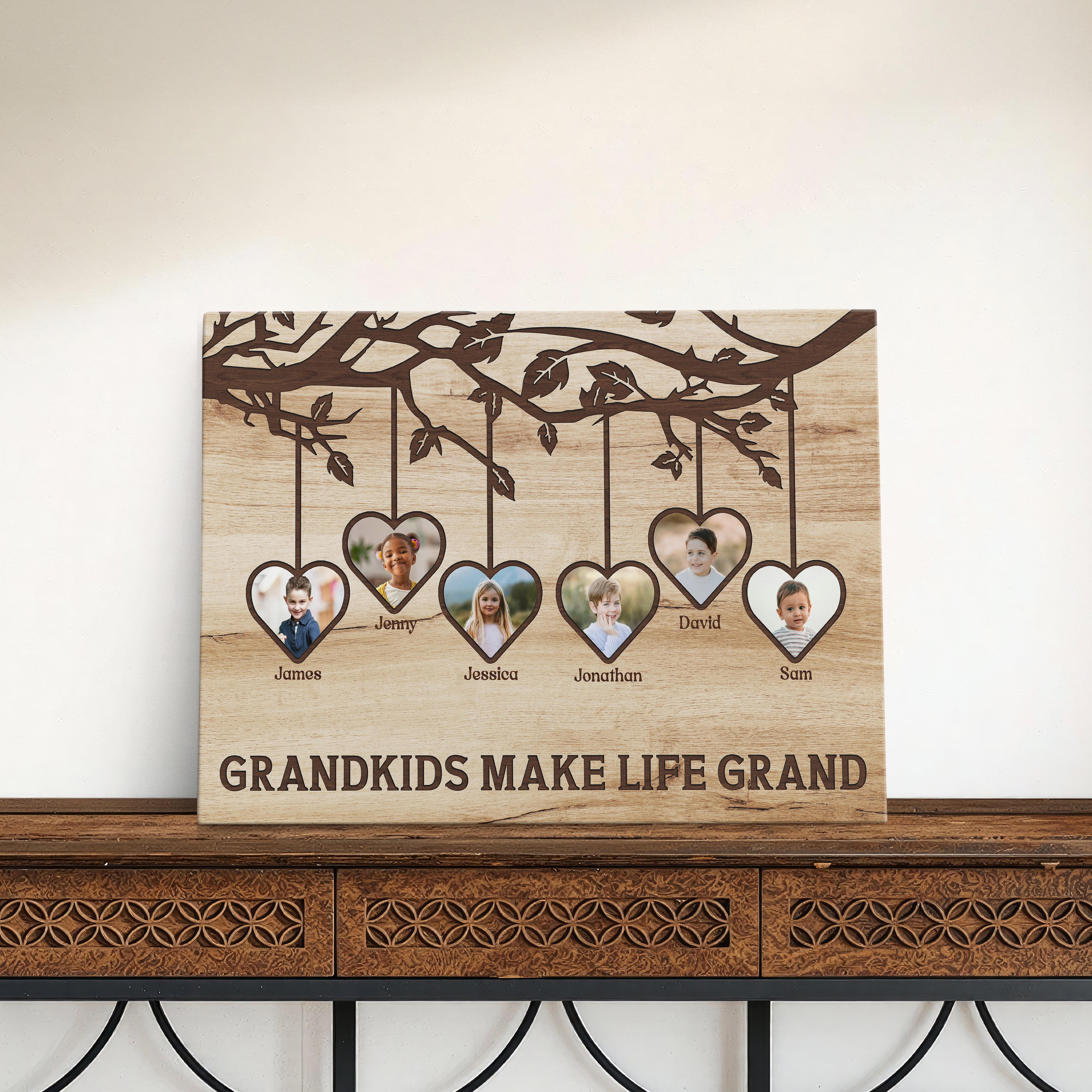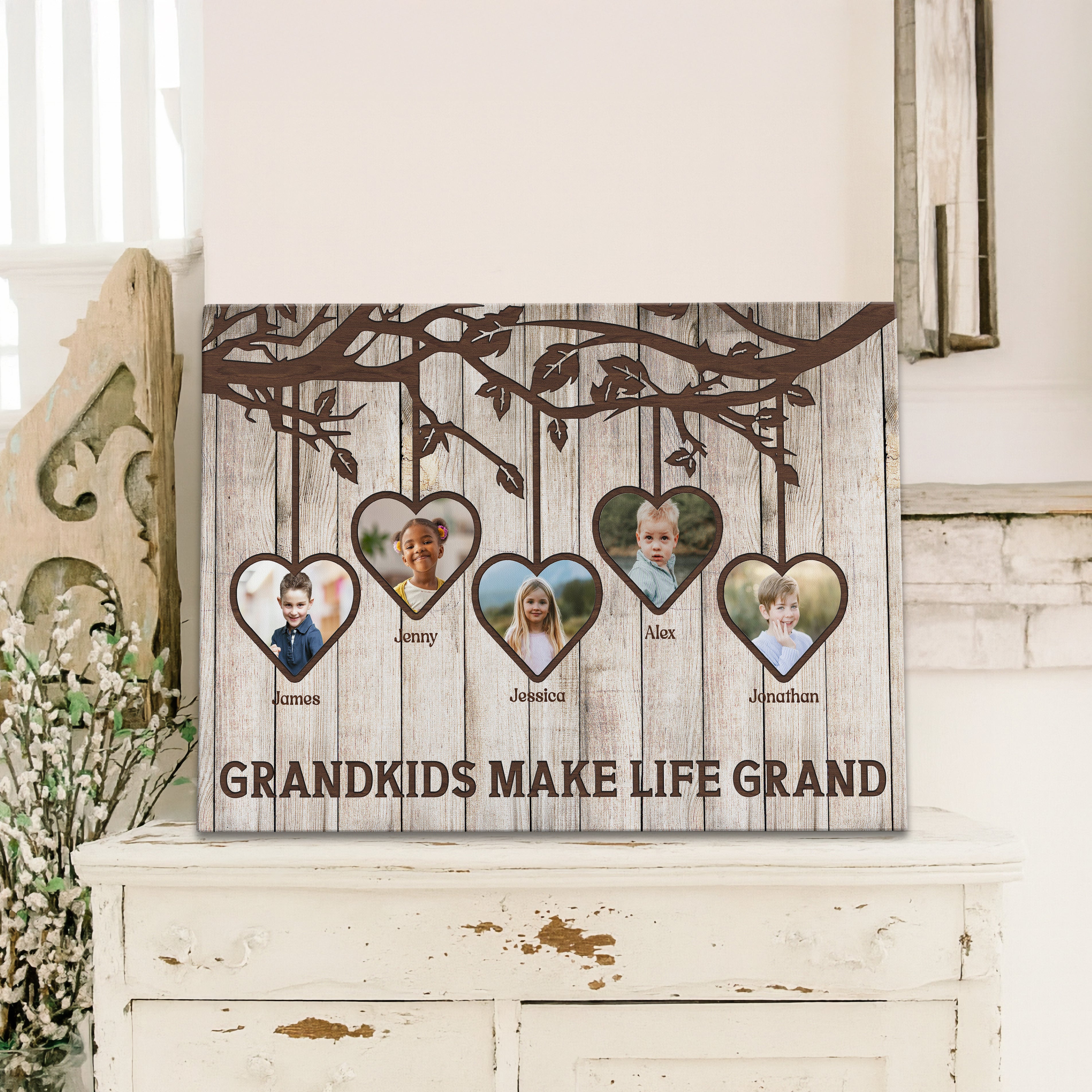 Grandkids Make Life Grand Personalized Photo Frame Canvas Print Gift Idea For Grandparents Family Photo Collage