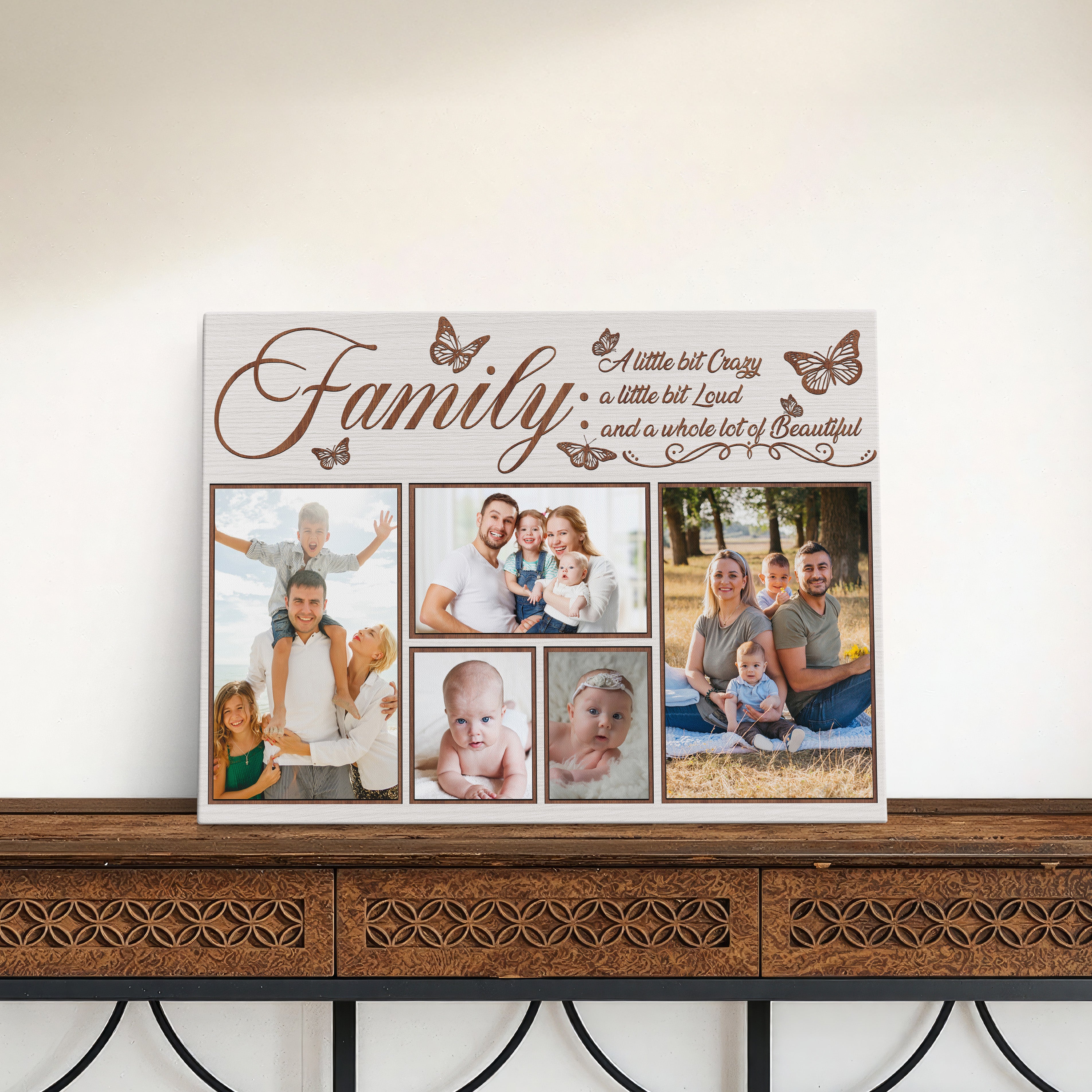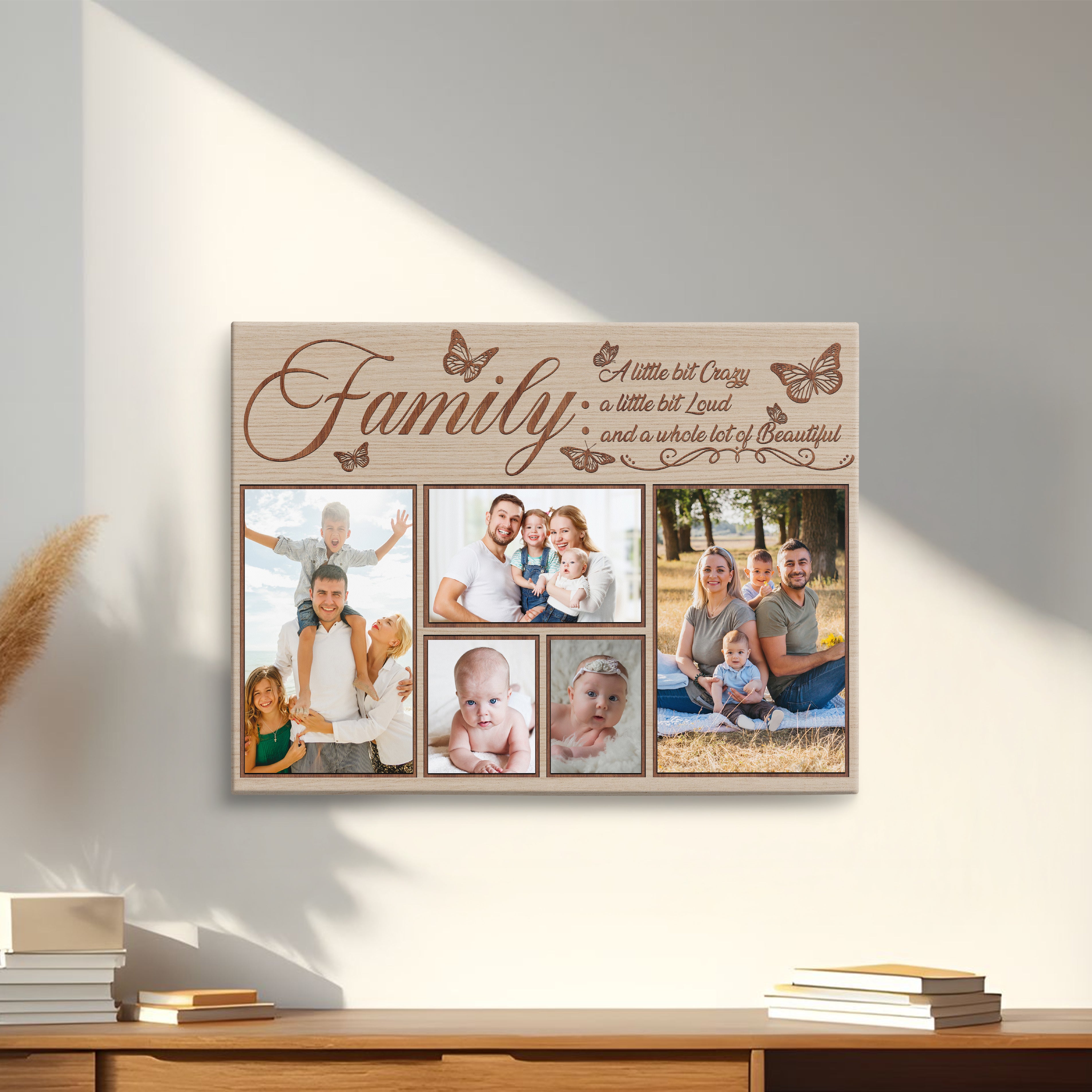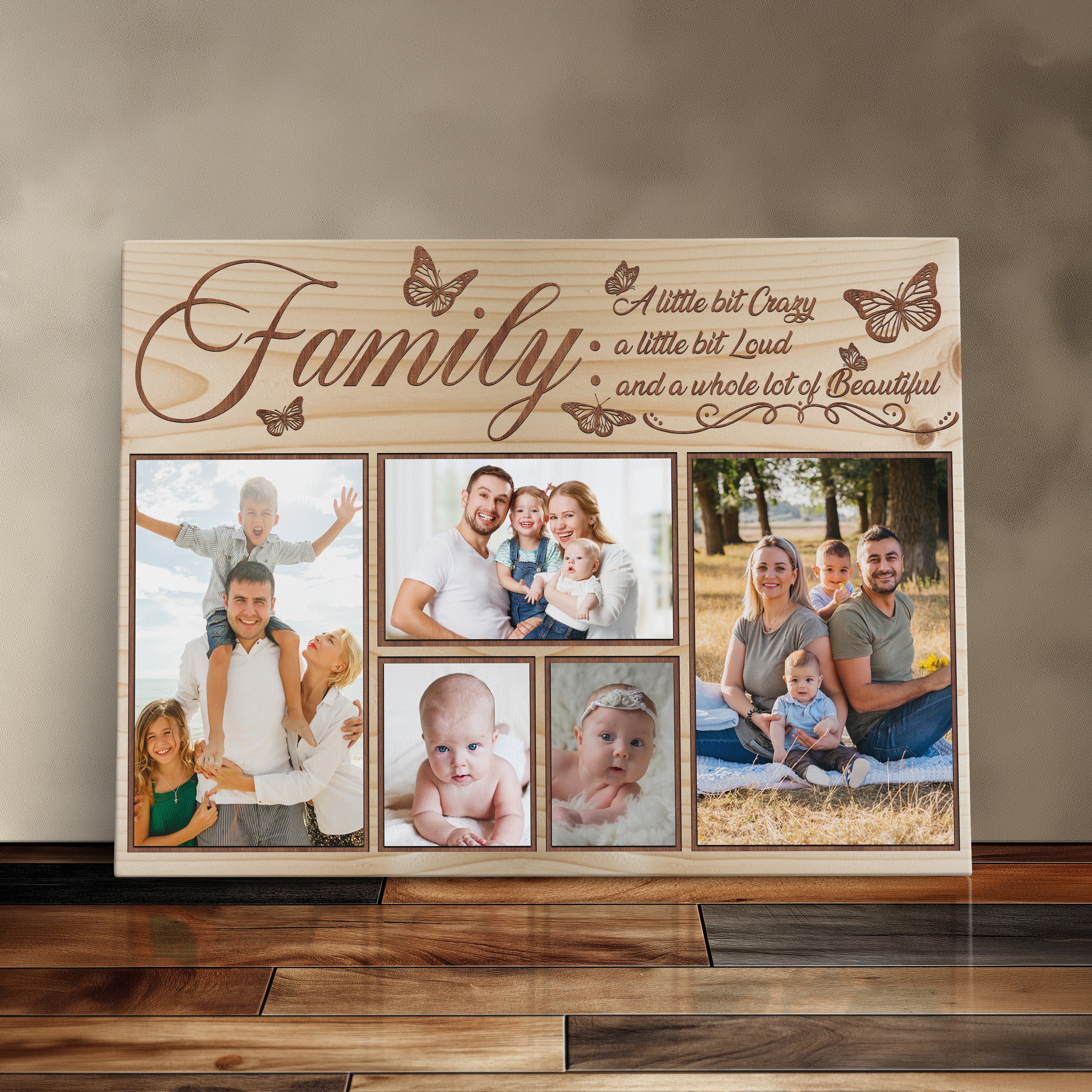 Transform your space into a cherished memory gallery with this custom wall art display featuring your family photos beautifully arranged in a memory wall frame. This rustic-styled piece includes a charming butterfly accent and makes the perfect home art gift that brings lasting joy as a stunning living room decor piece.