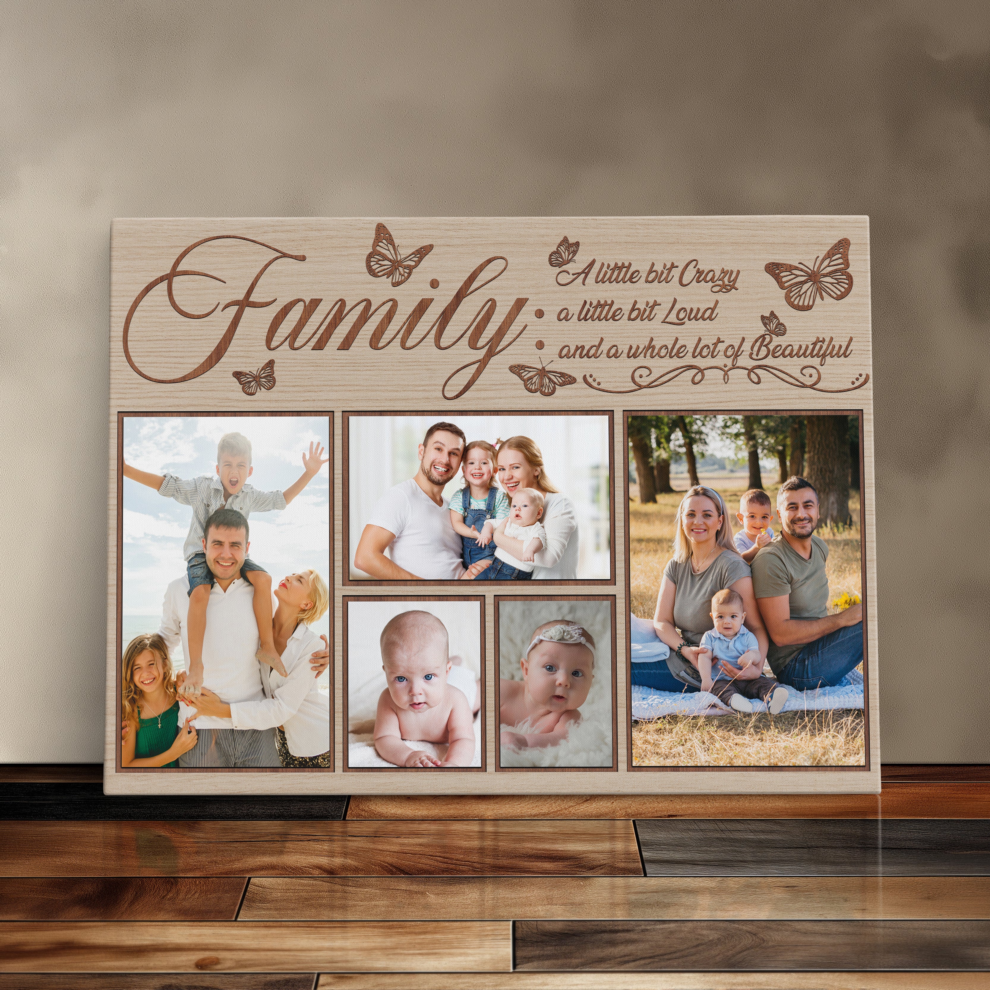 These personalized photo gifts for a husband or wife make a meaningful way to celebrate family memories. Perfect as a mom birthday gift or a thoughtful family gift idea, the photo collage canvas blends style with sentiment. Designed as a custom family photo frame with rustic decor charm, it turns treasured moments into timeless wall art.
