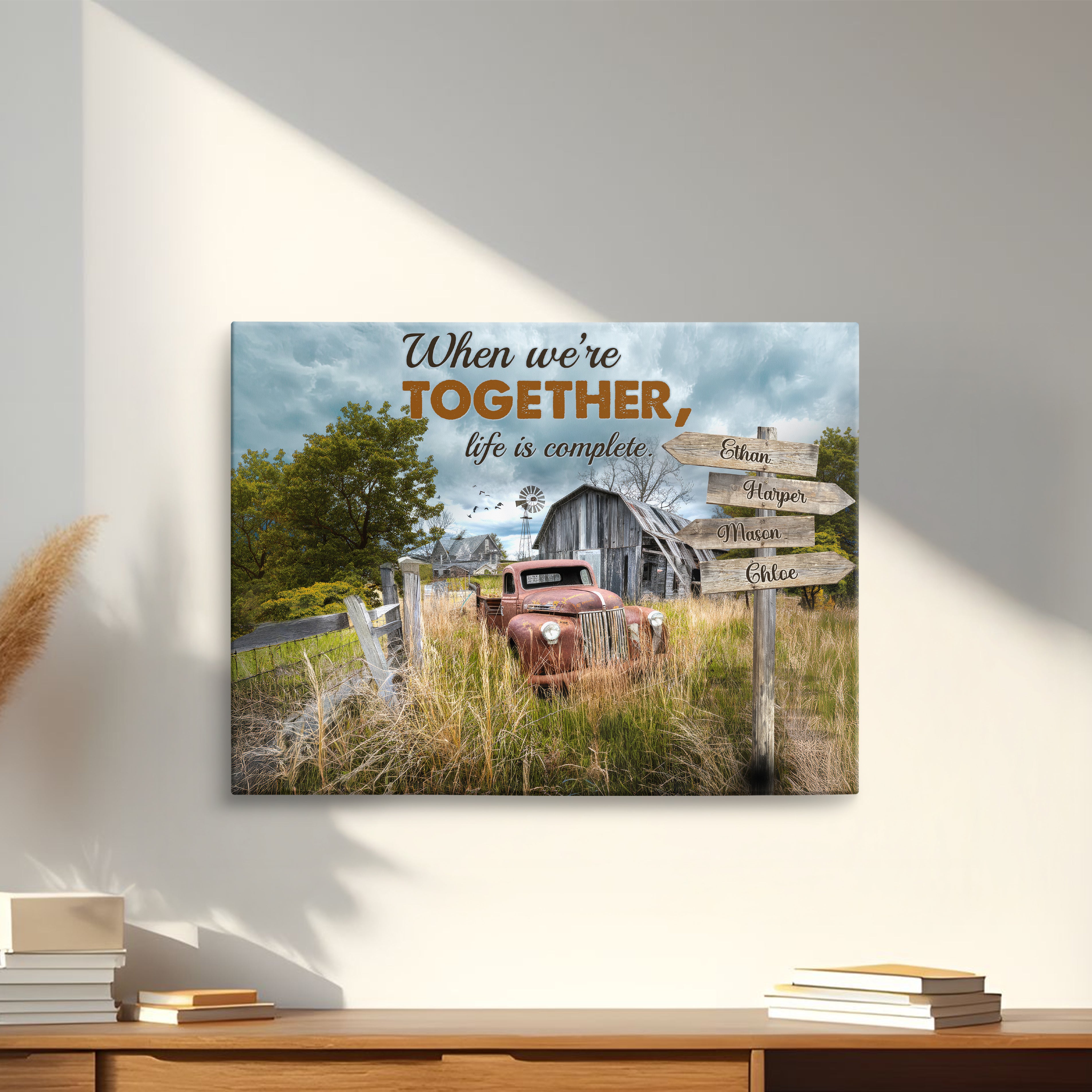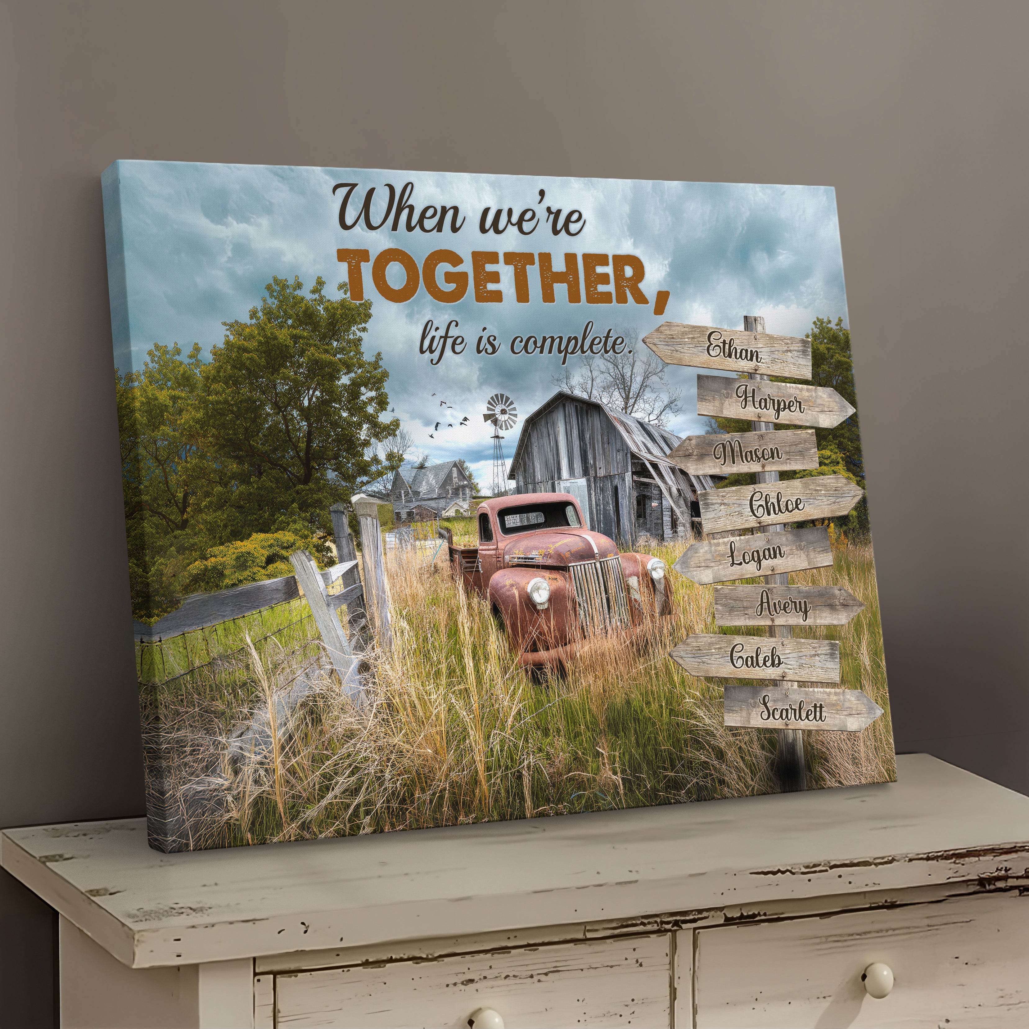 Transform your space with this charming personalized farm art wall decor, featuring a rustic barn scene with a vintage truck and windmill that makes the perfect farmhouse style family gift for any country lover. This beautiful wall canvas print captures the essence of farm life, creating a stunning piece of custom art that brings together the warmth of home and the serenity of rural living.
