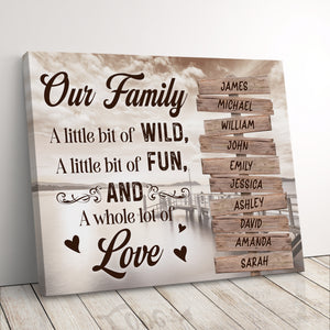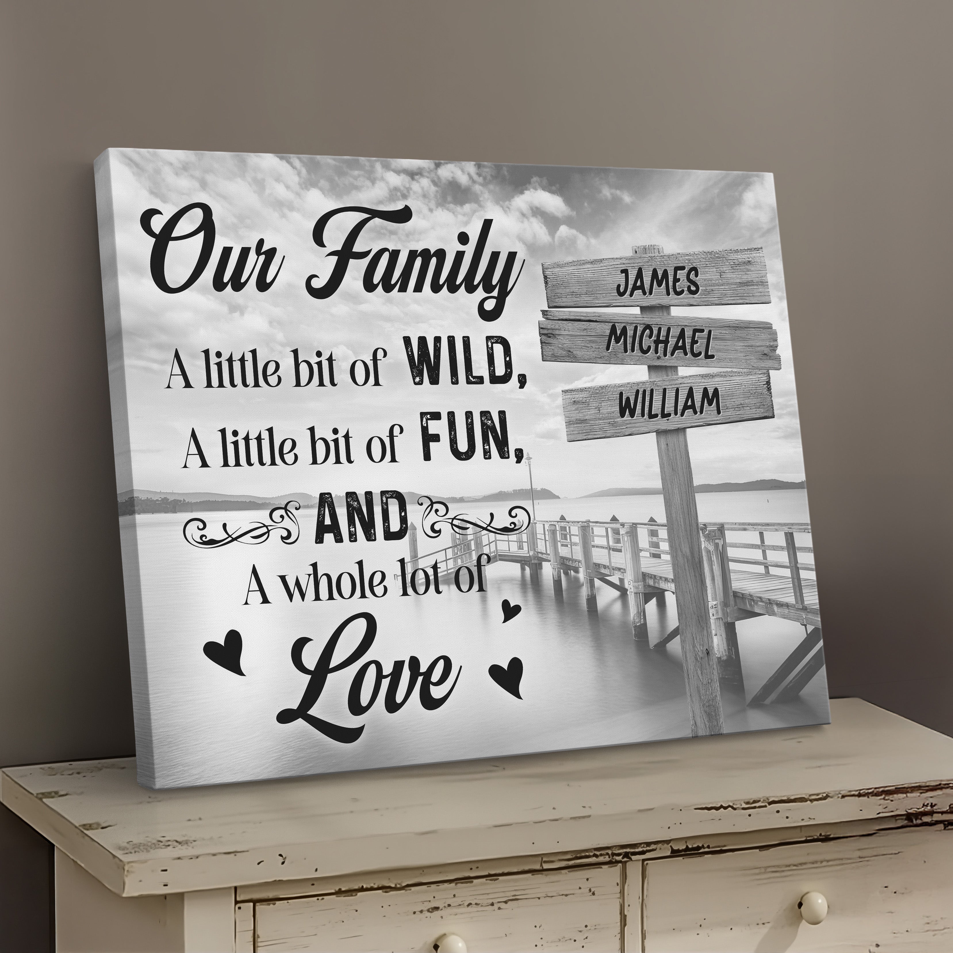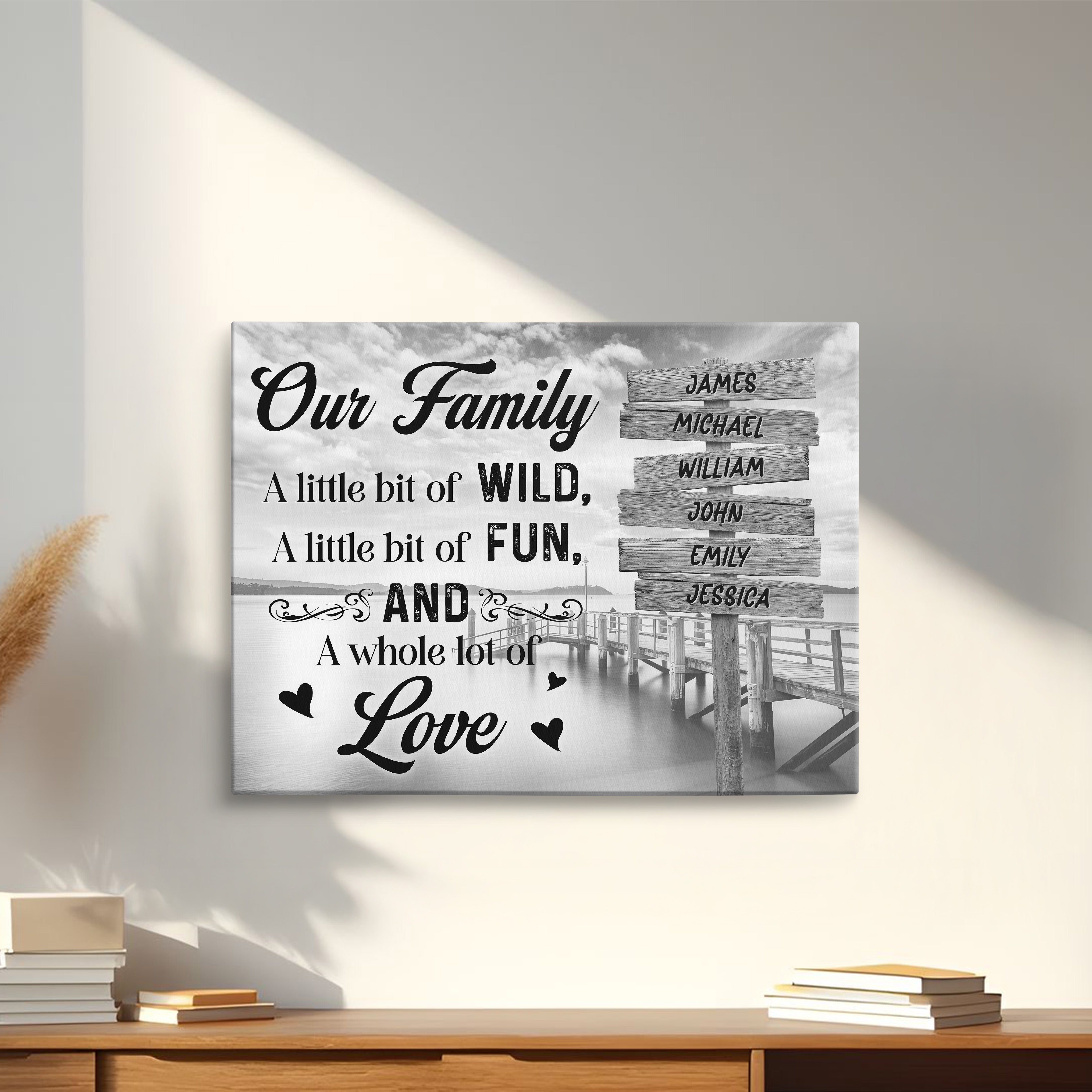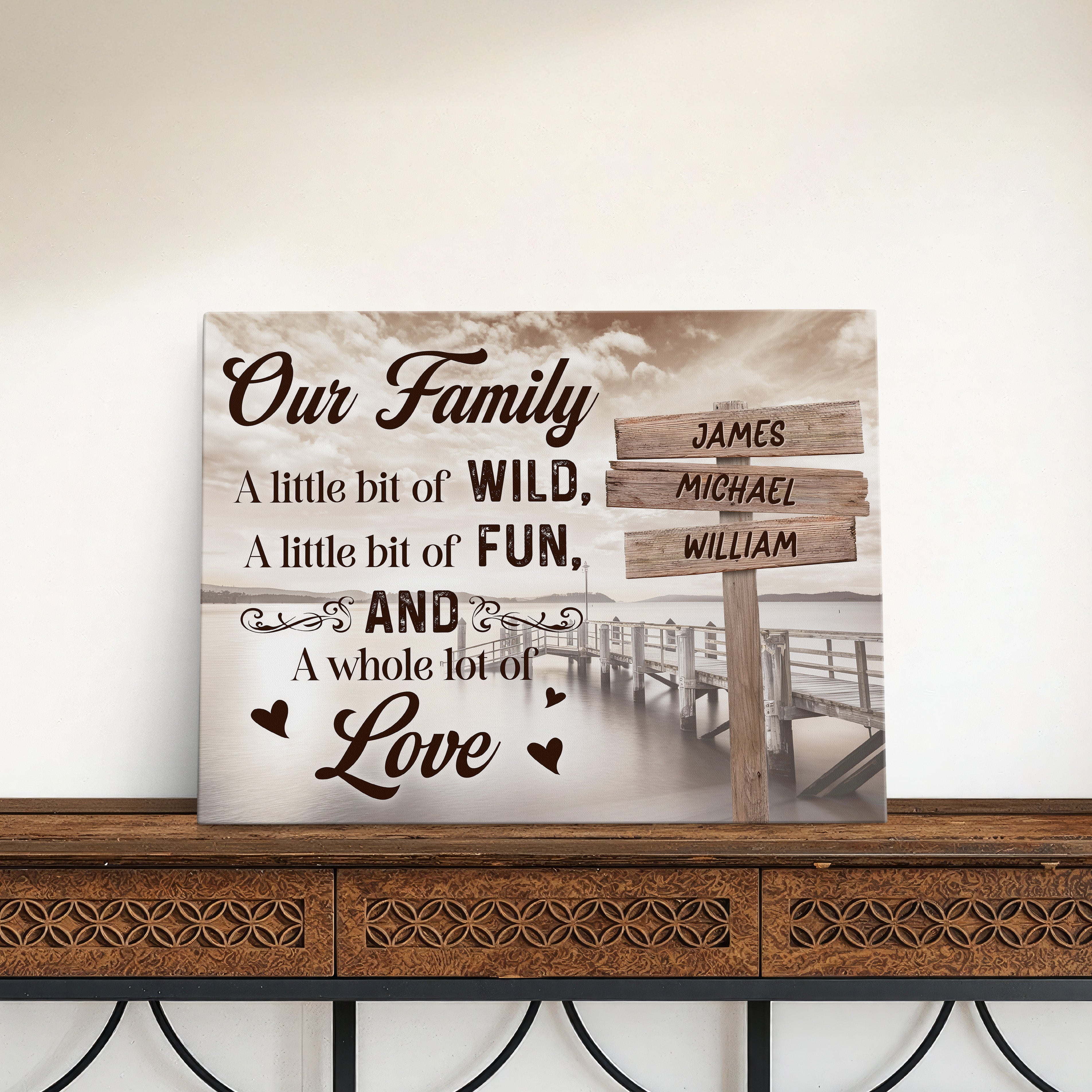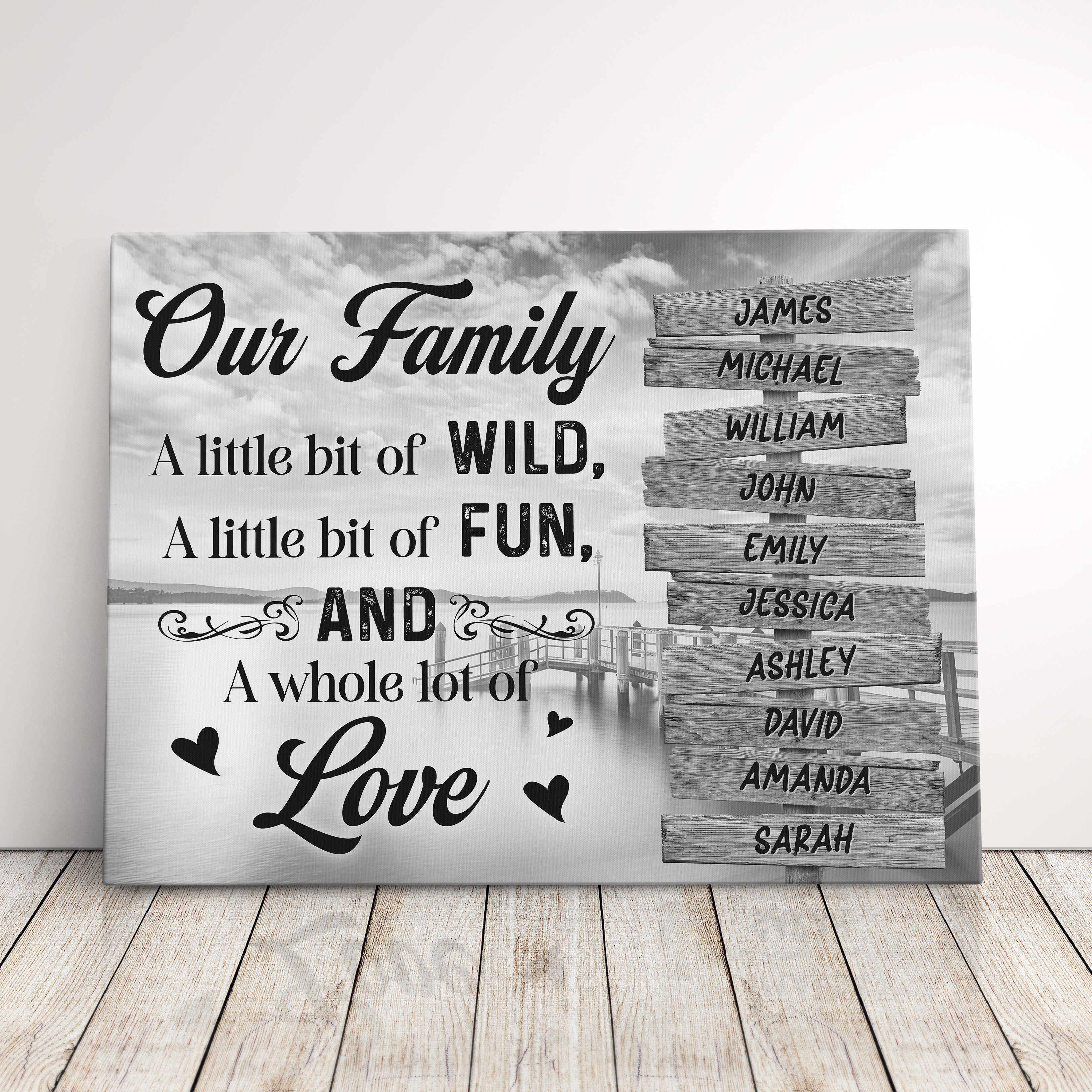 Transform your space with this custom wall art featuring your family's names and a heartwarming love quote, beautifully printed on a gallery-wrapped canvas print. This versatile piece serves as both an elegant home decor family sign and a cherished memory gift, making it a perfect wall decoration for your living room or any room that needs a touch of personalized style.