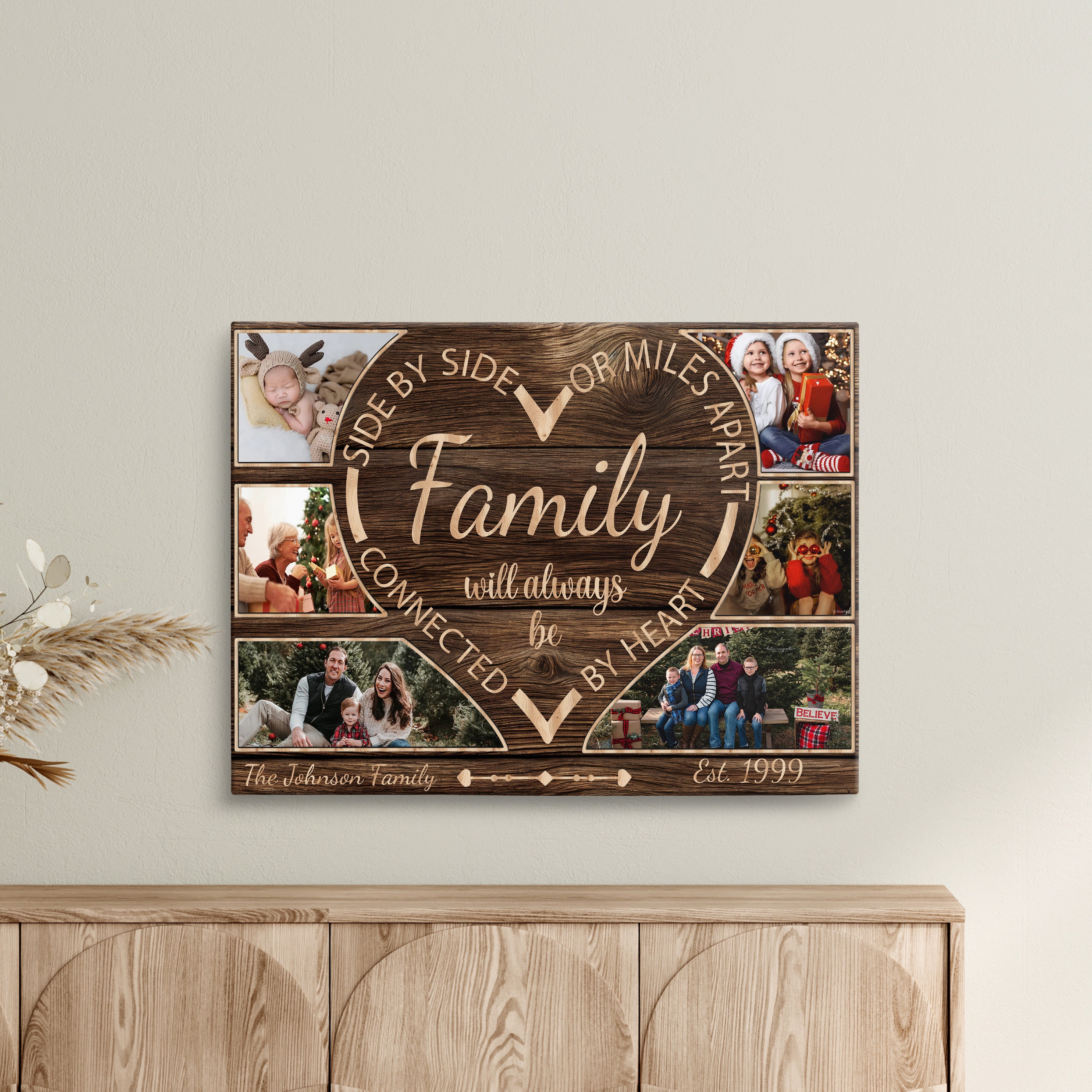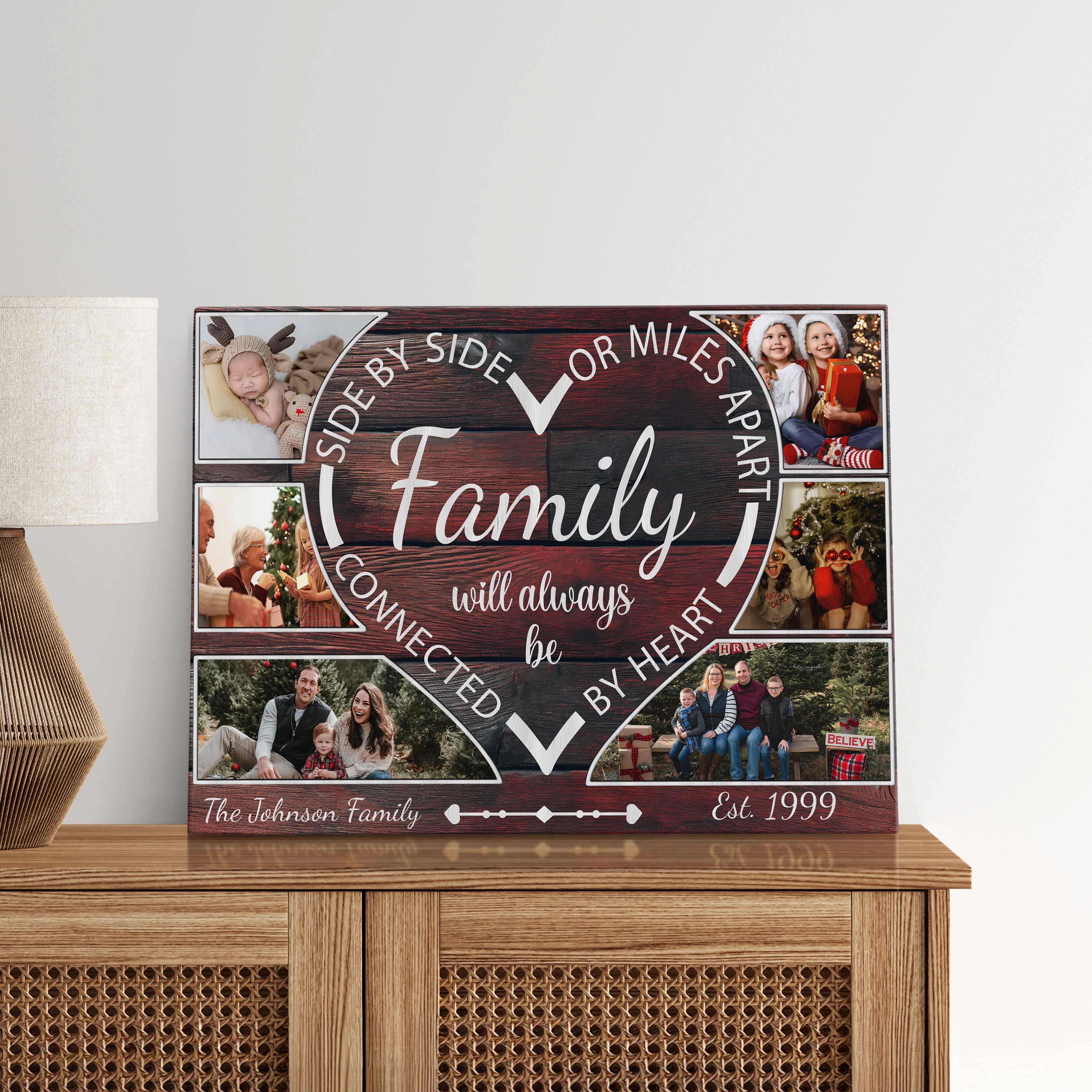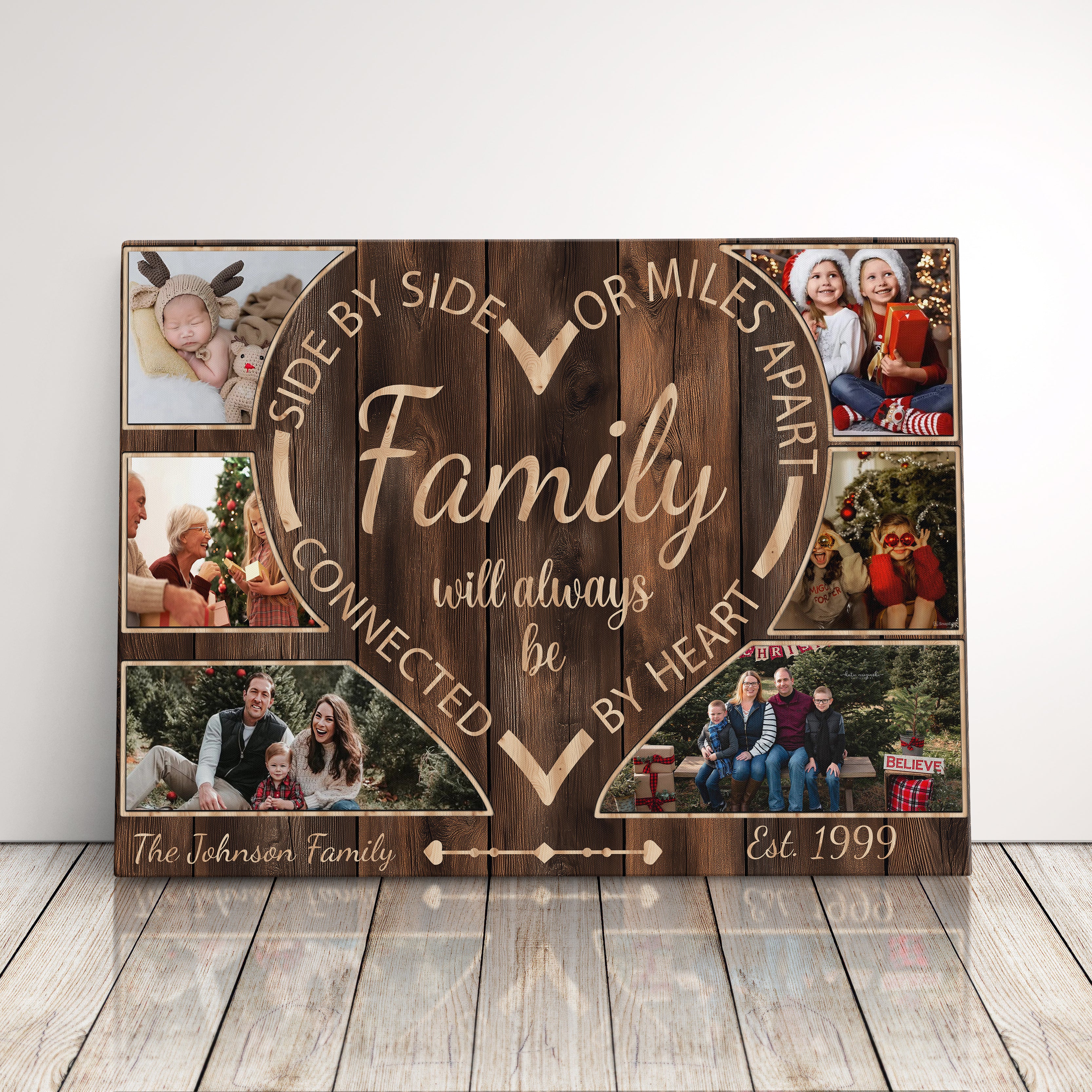 Transform your cherished family photos into stunning wall decor with this custom-designed gallery wrap canvas, perfect as a living room wall art piece that celebrates your loved ones. This versatile photo display combines elegant design elements with practical customization options, making it an ideal personalized gift for any special occasion like an anniversary celebration.