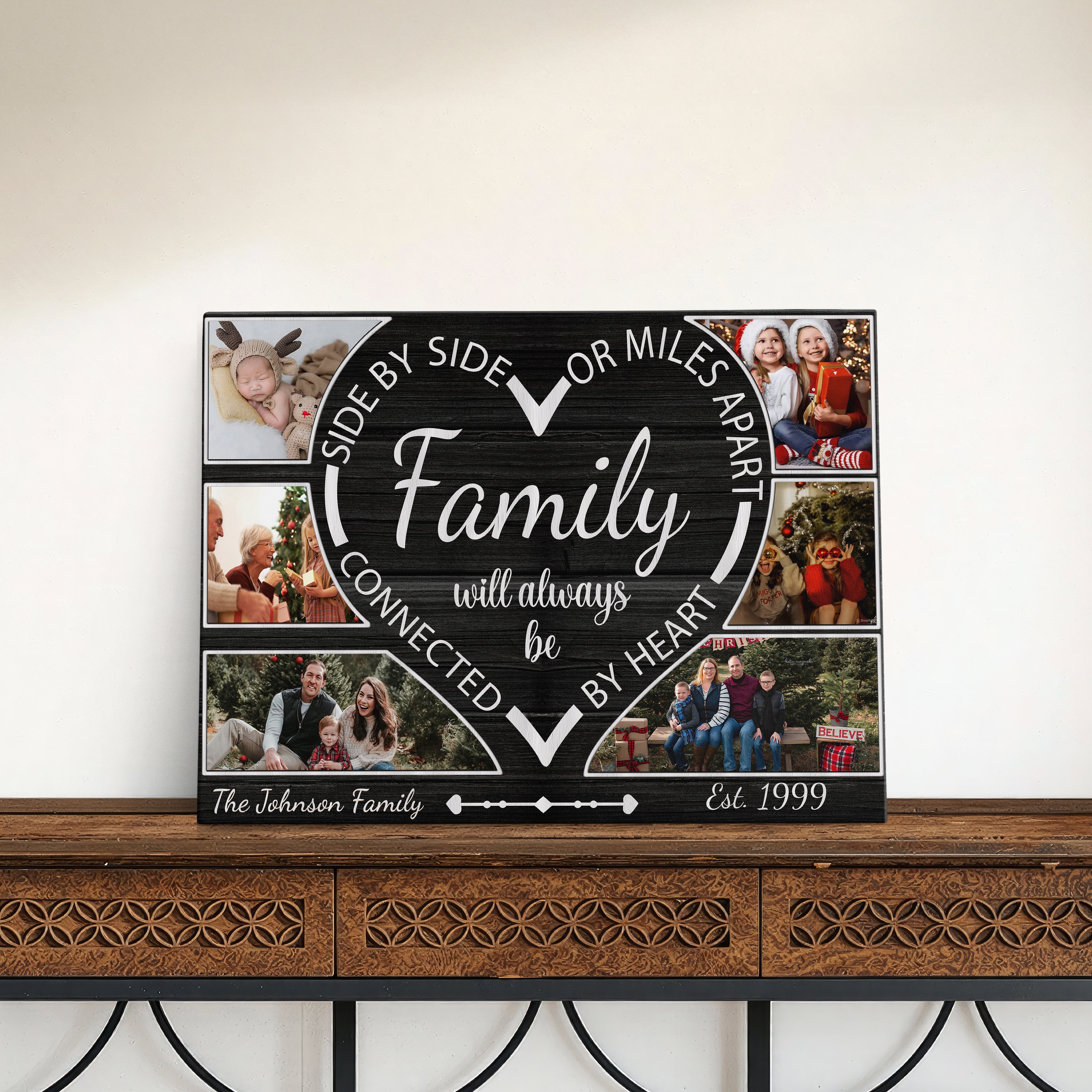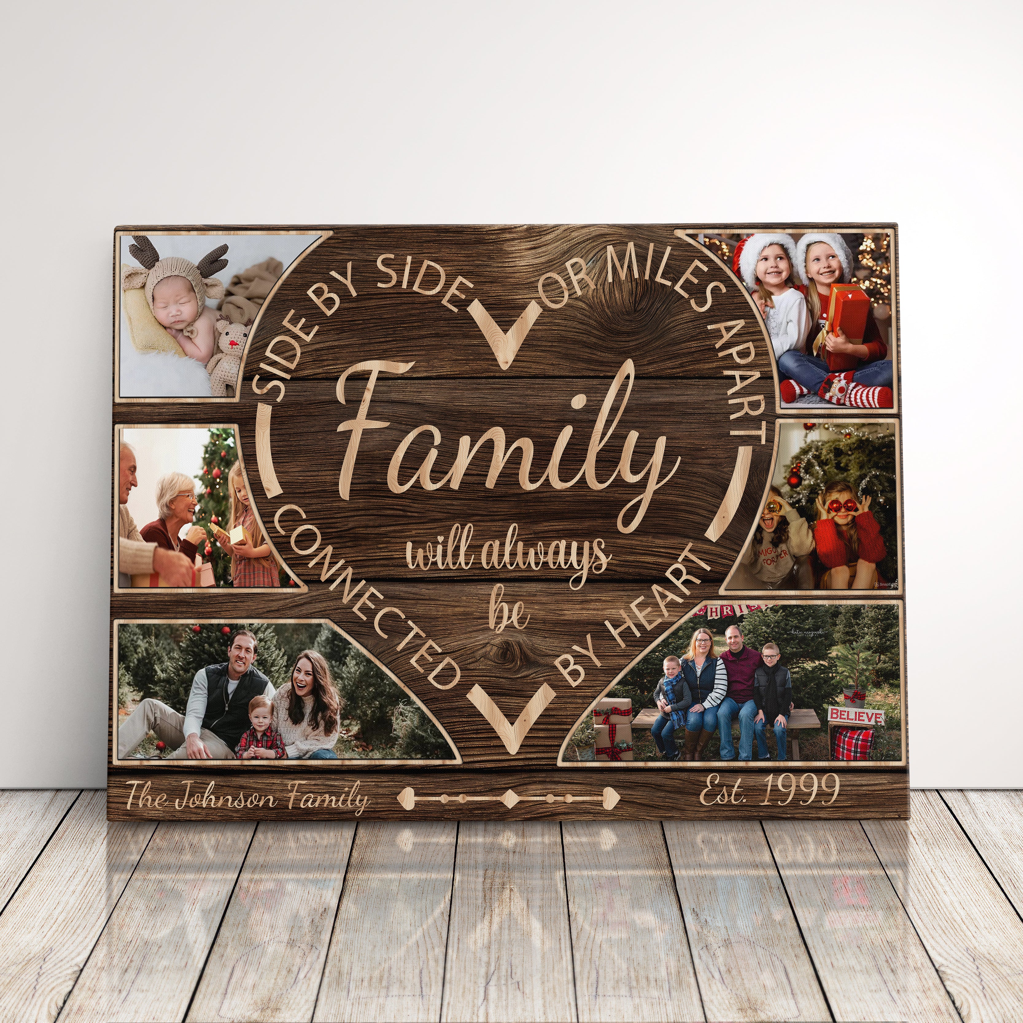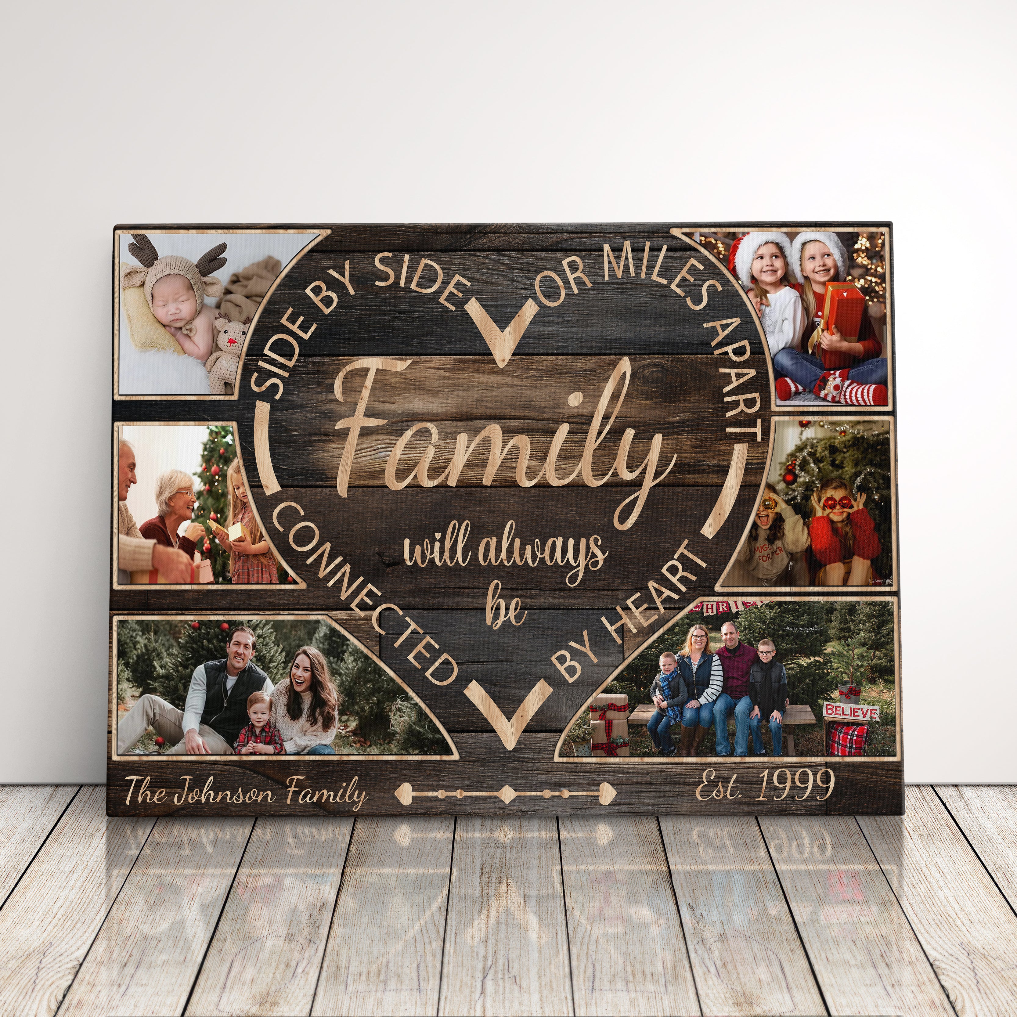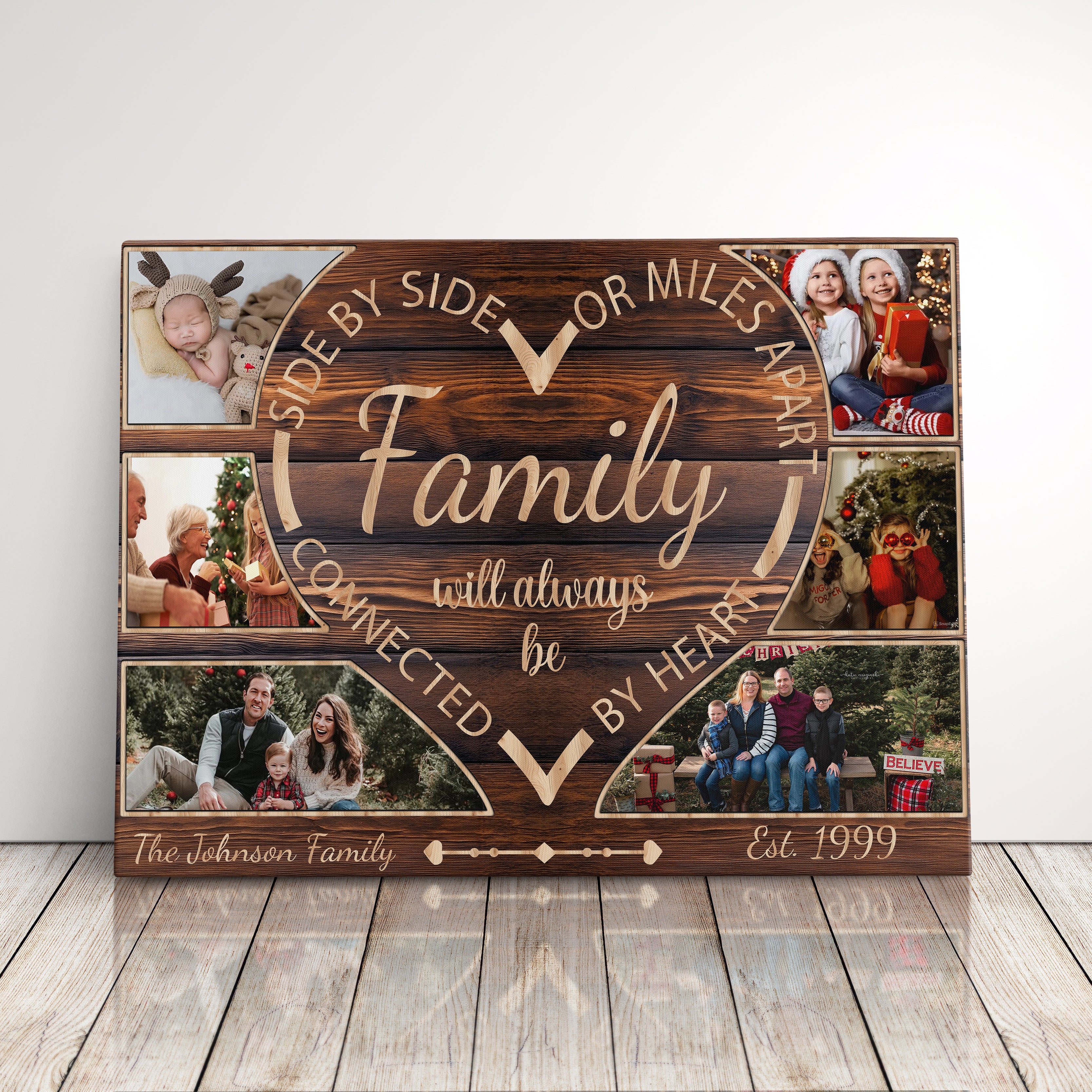 This family photo frame makes a meaningful customized gift for parents, capturing memories in a beautiful photo collage canvas print. It’s a thoughtful family picture idea that also works as a couple’s gift from a daughter or son. Designed like a family photo album, this gift idea turns cherished moments into lasting wall art.