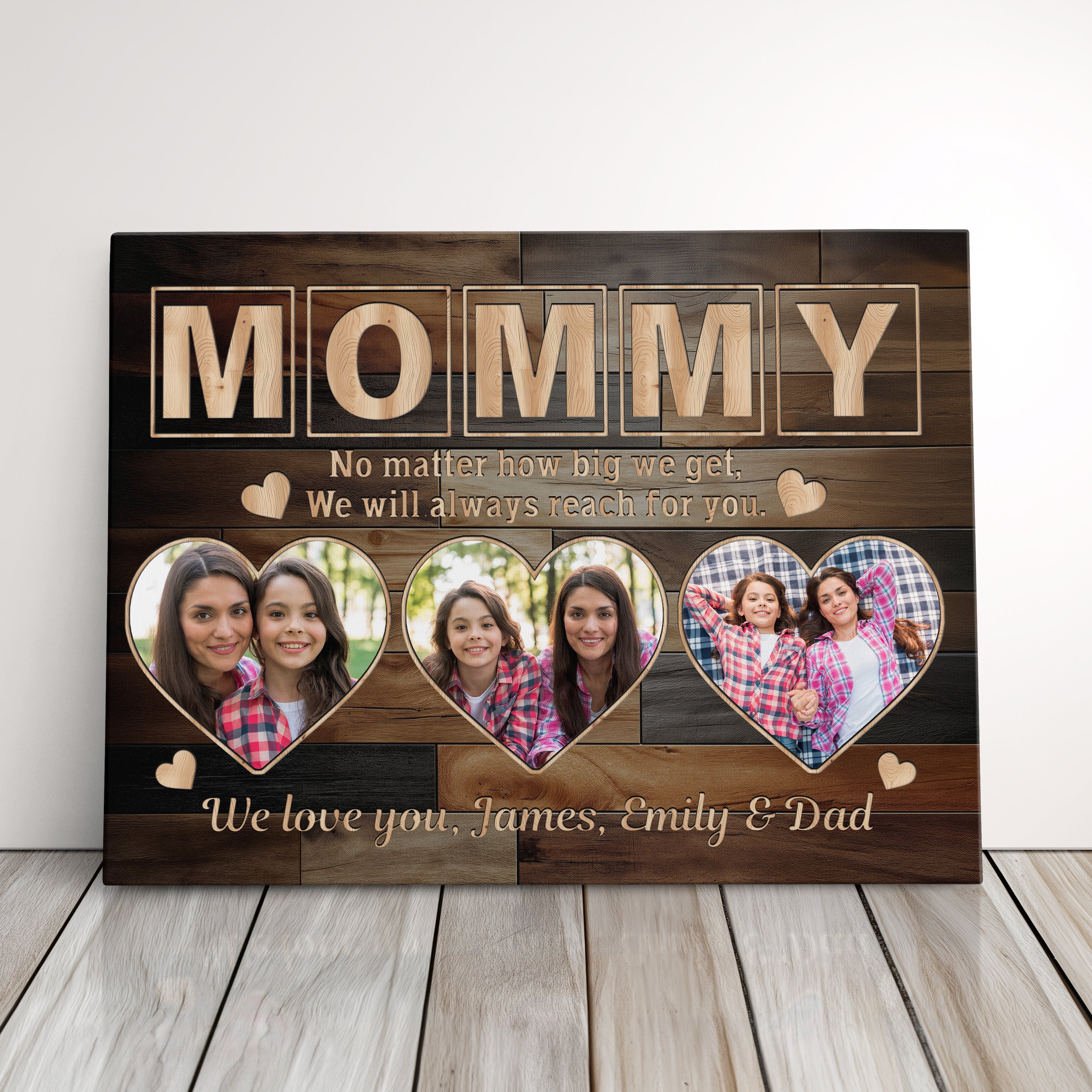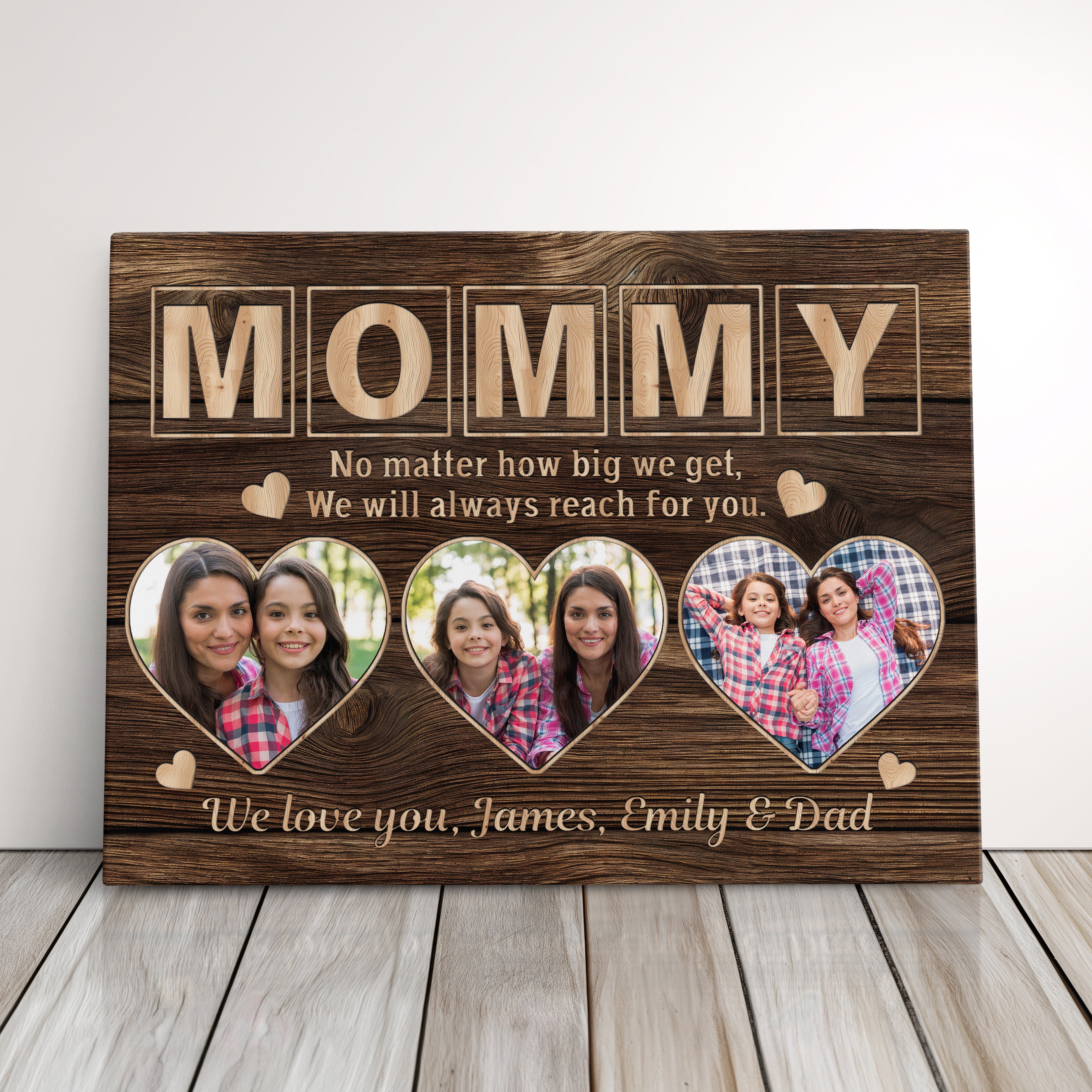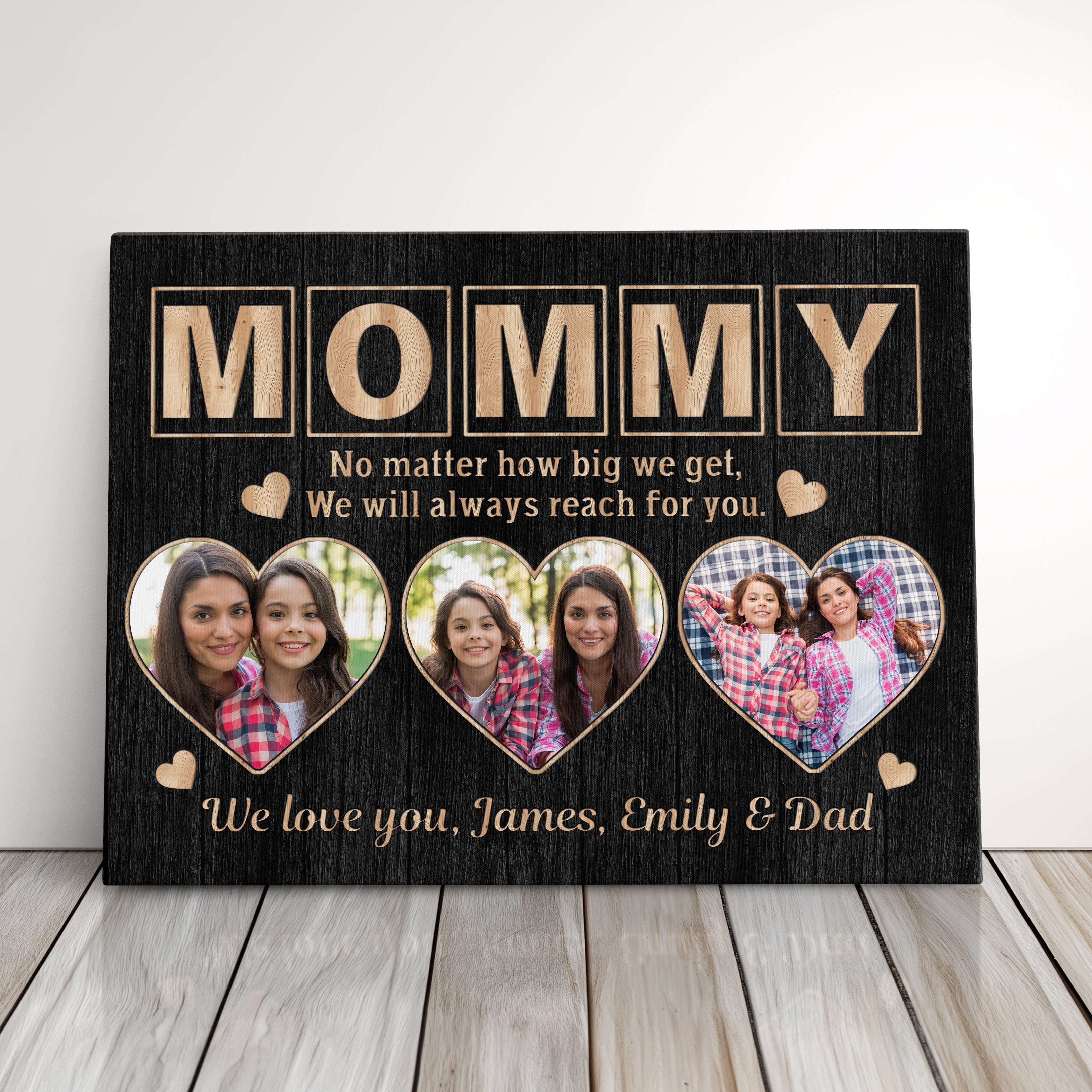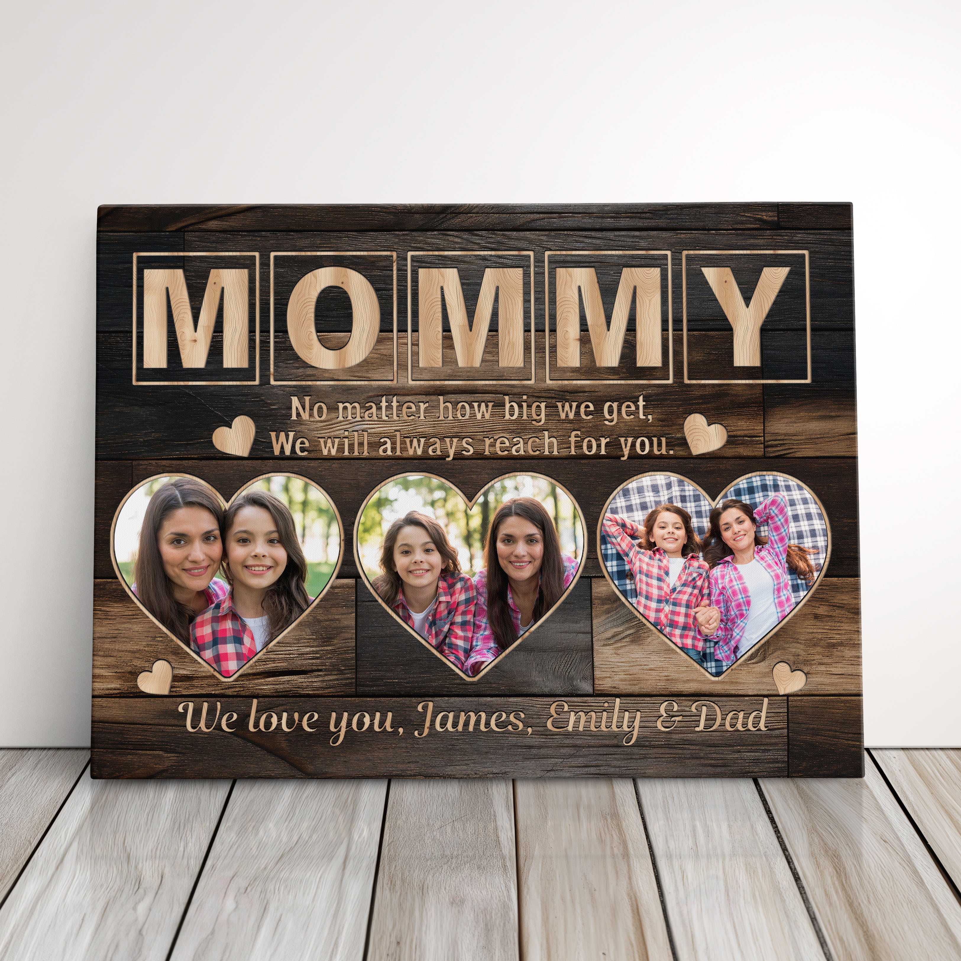 Transform cherished memories into stunning custom wall art with this personalized gallery wrapped canvas print, featuring a unique three-photo display and elegant signature design. This makes the perfect memory keepsake and serves as exquisite wall decor, creating a meaningful parent present that celebrates family bonds.