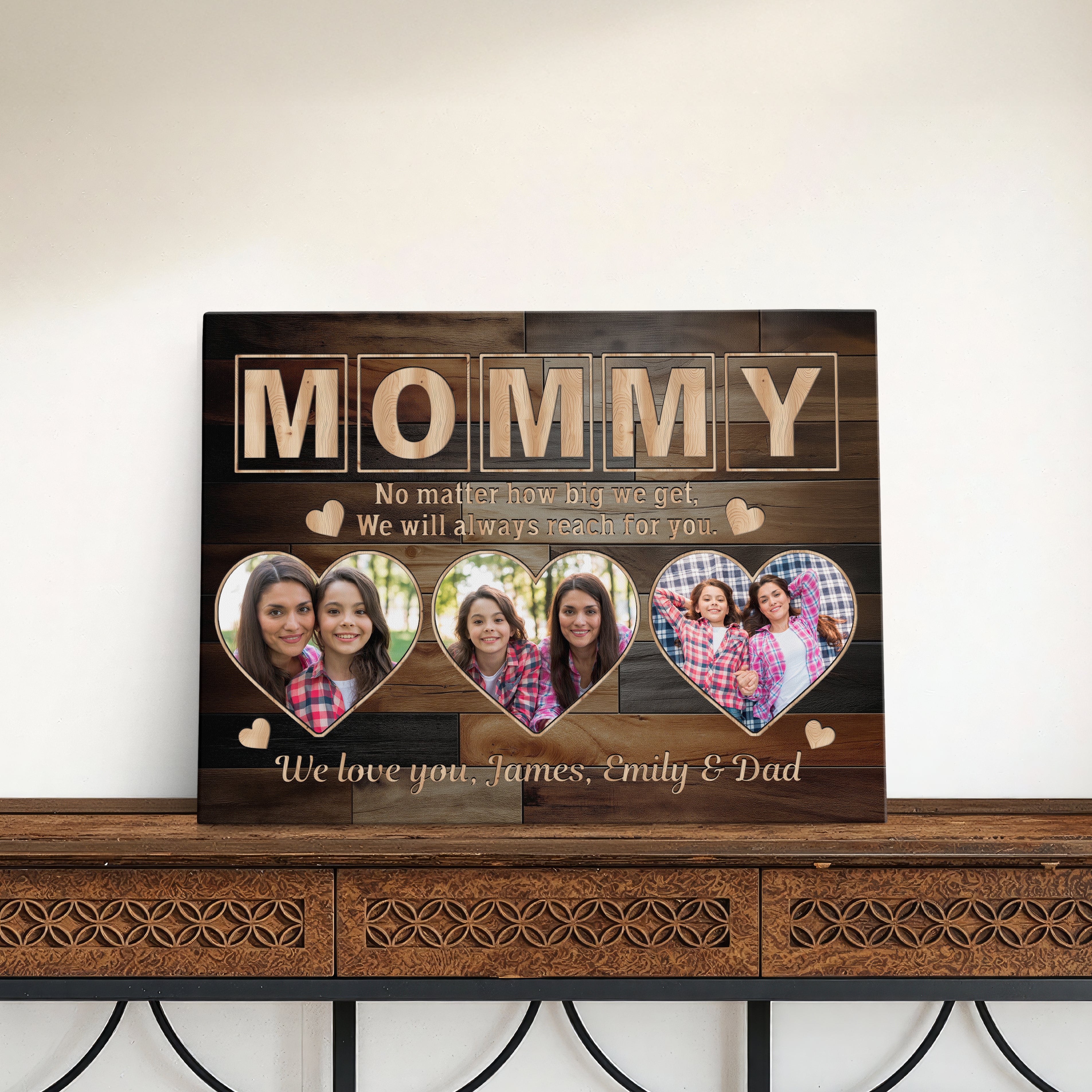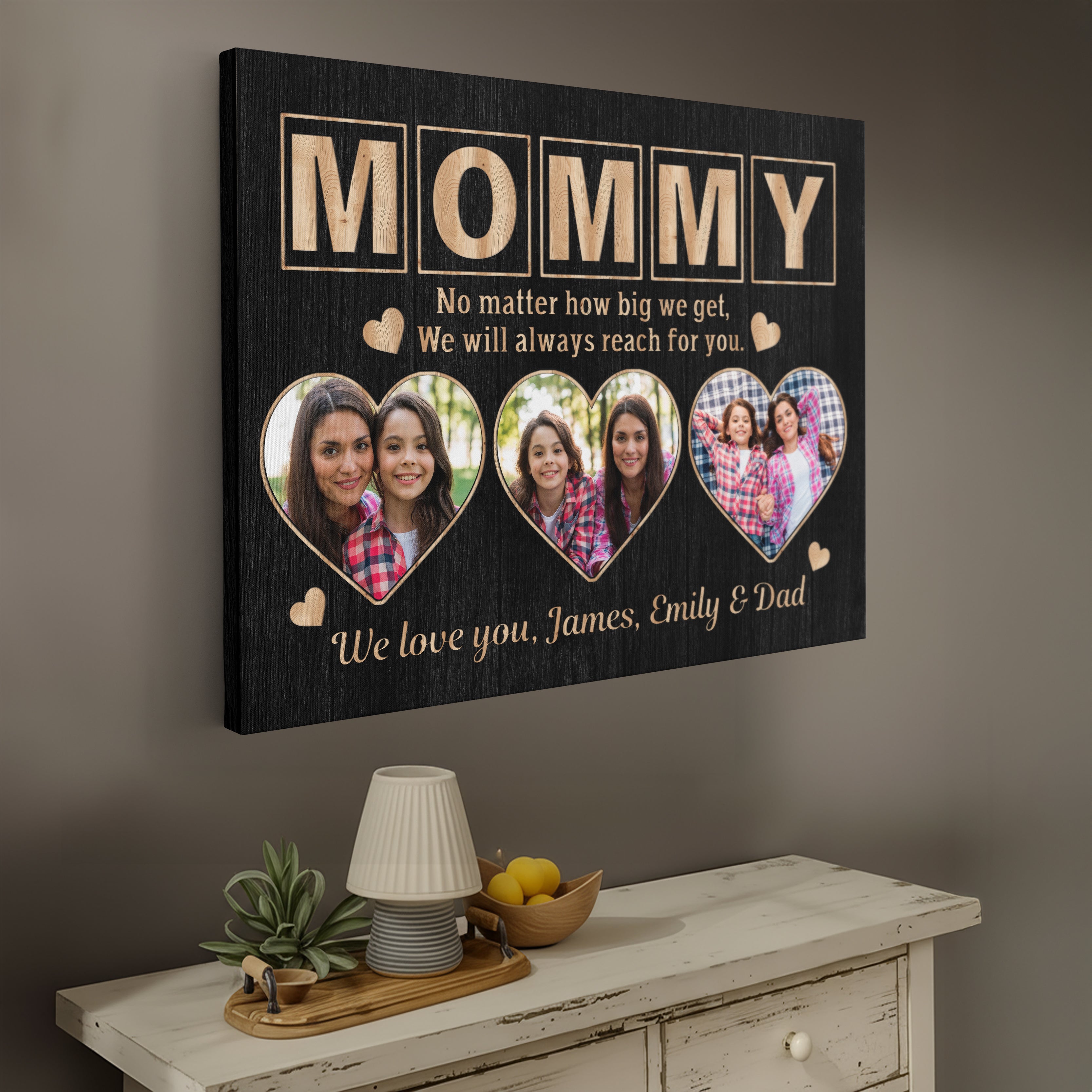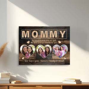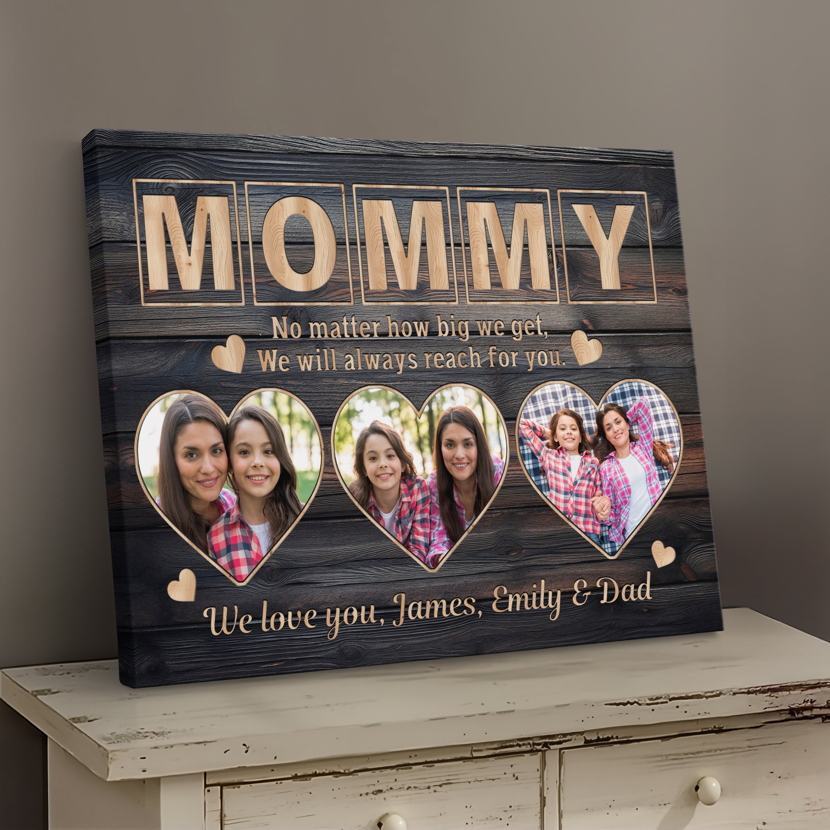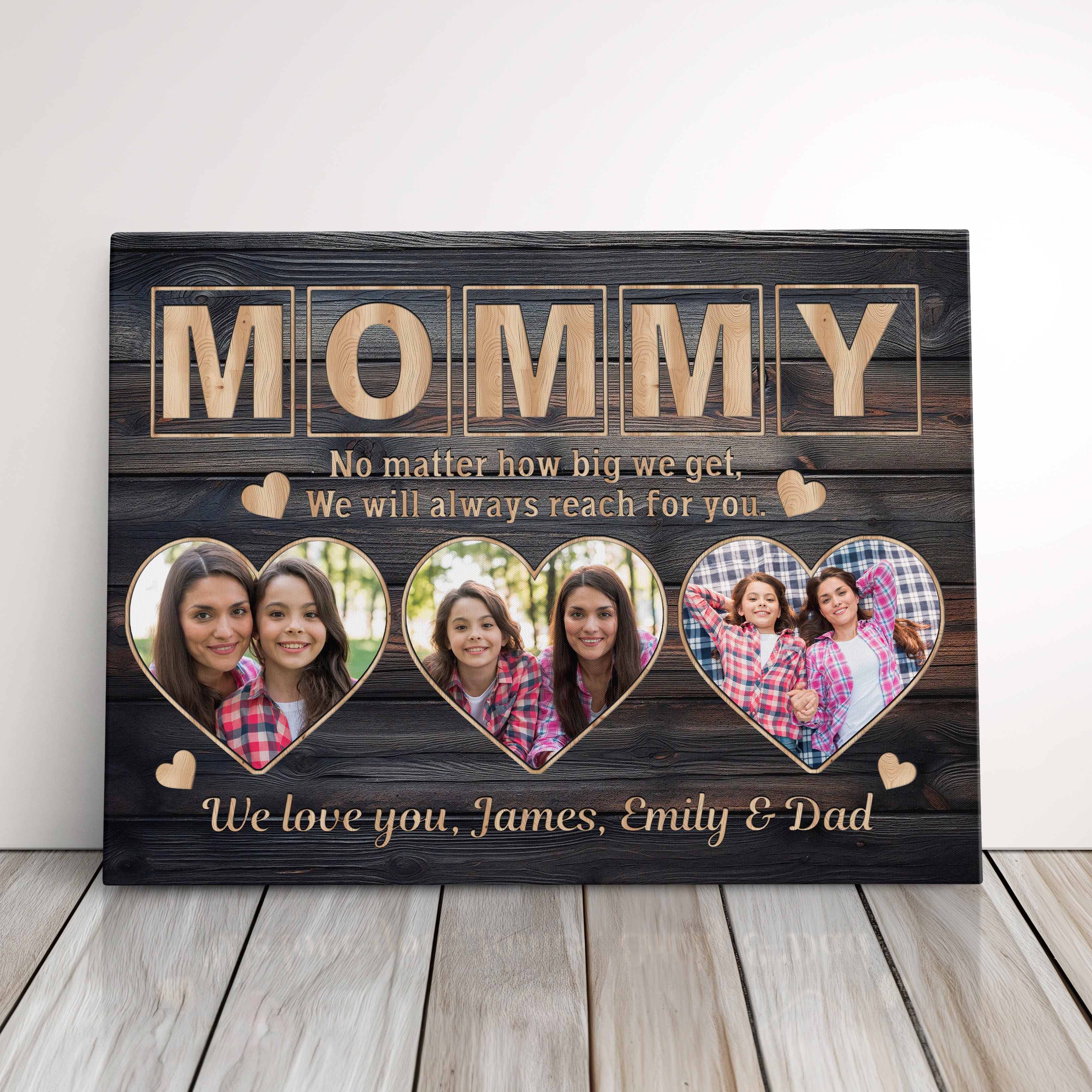Transform cherished memories into stunning custom wall art with this personalized gallery wrapped canvas print, featuring a unique three-photo display and elegant signature design. This makes the perfect memory keepsake and serves as exquisite wall decor, creating a meaningful parent present that celebrates family bonds.