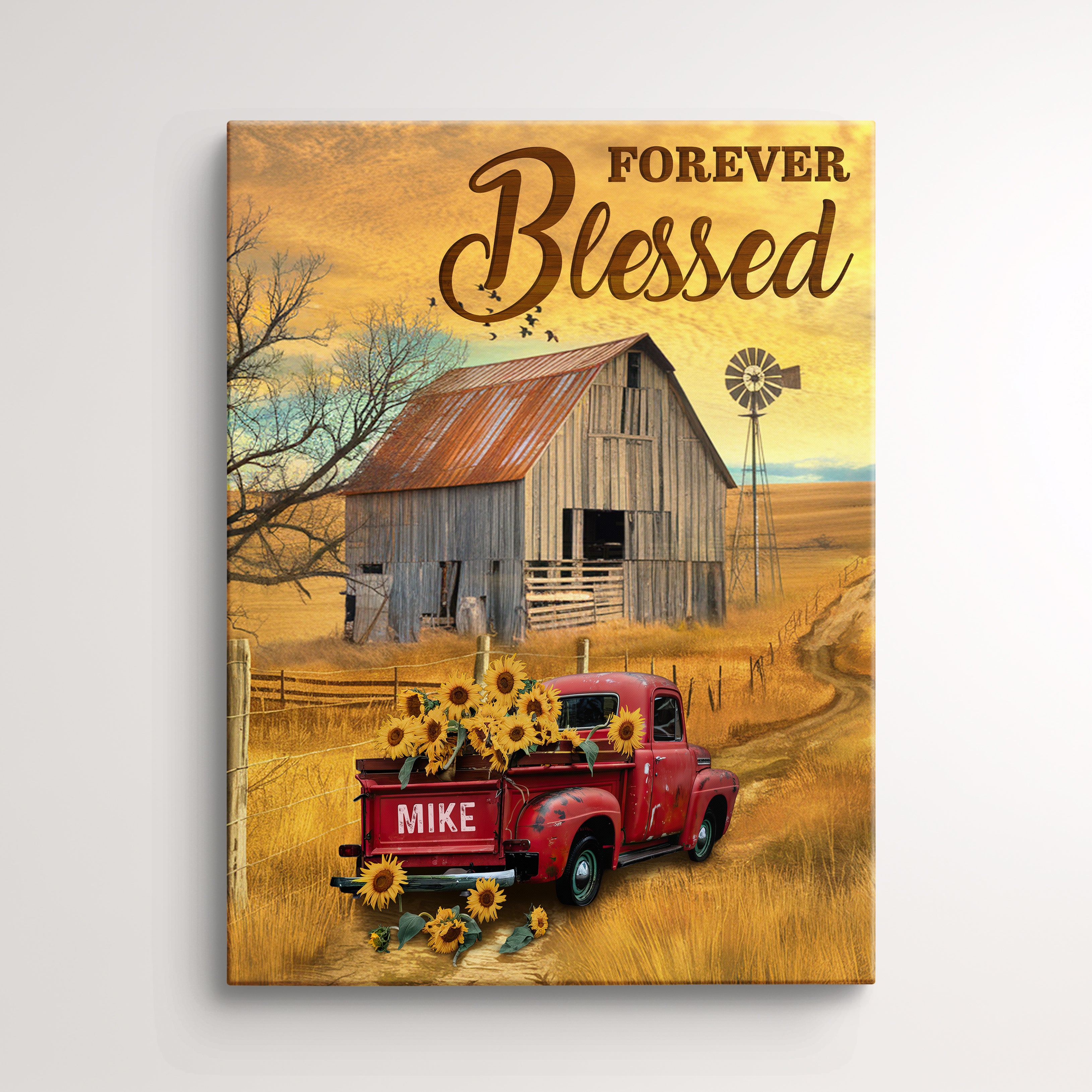 Transform your space with this stunning farmhouse canvas art featuring a charming truck sign design that makes a perfect custom name family gift. This beautiful country style wall decor showcases a peaceful barn scene at sunset, creating rustic decoration that brings the serenity of farm life to your home.