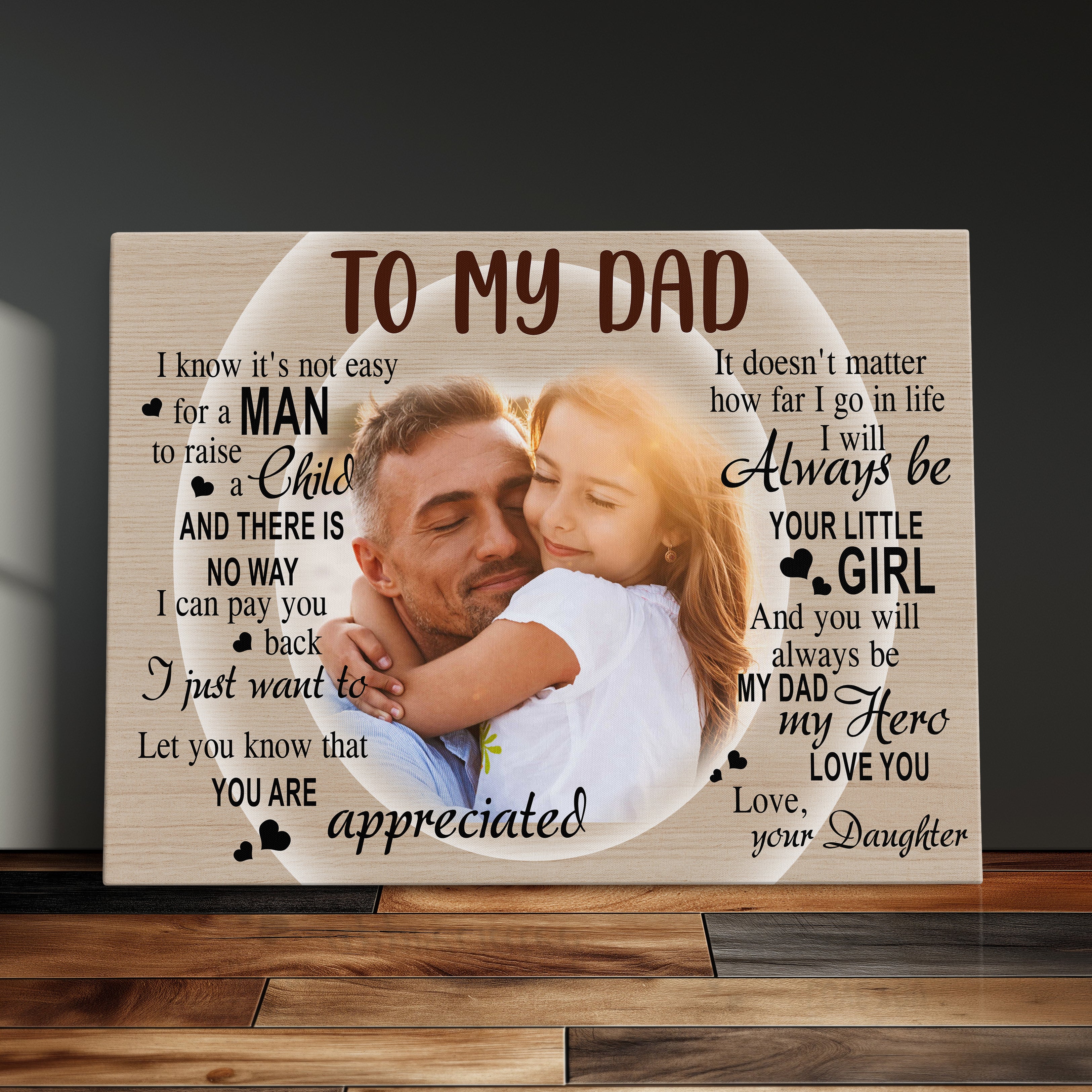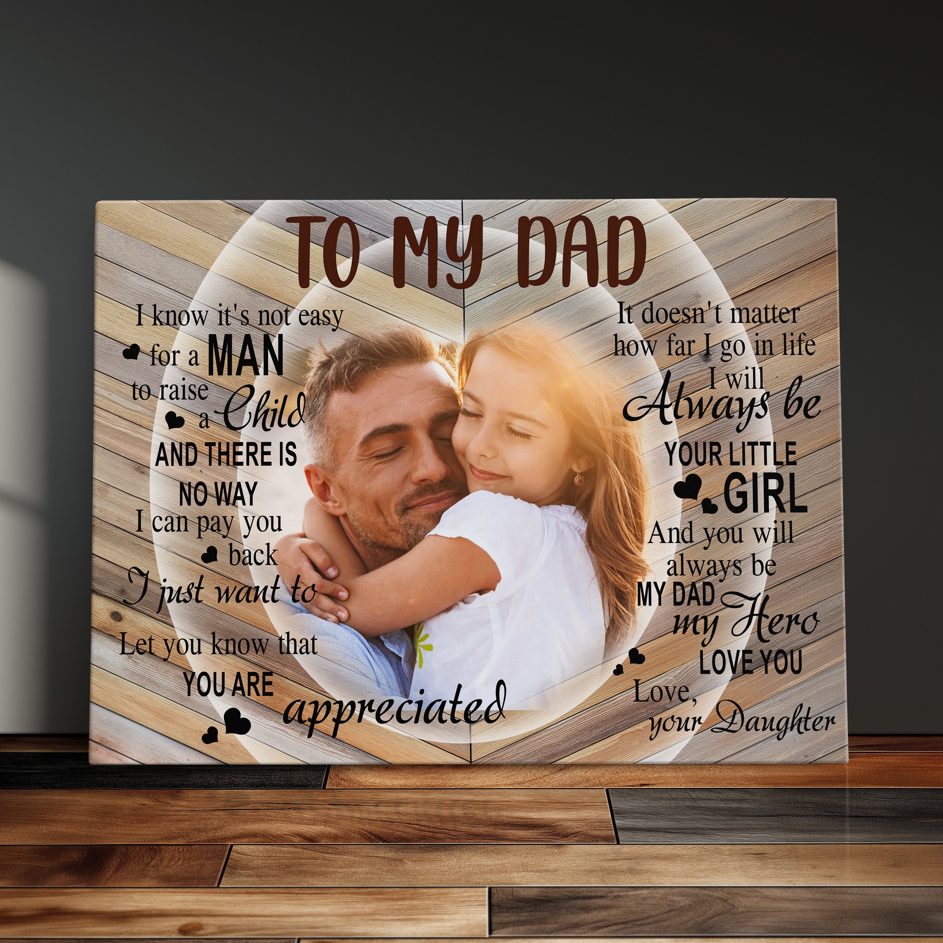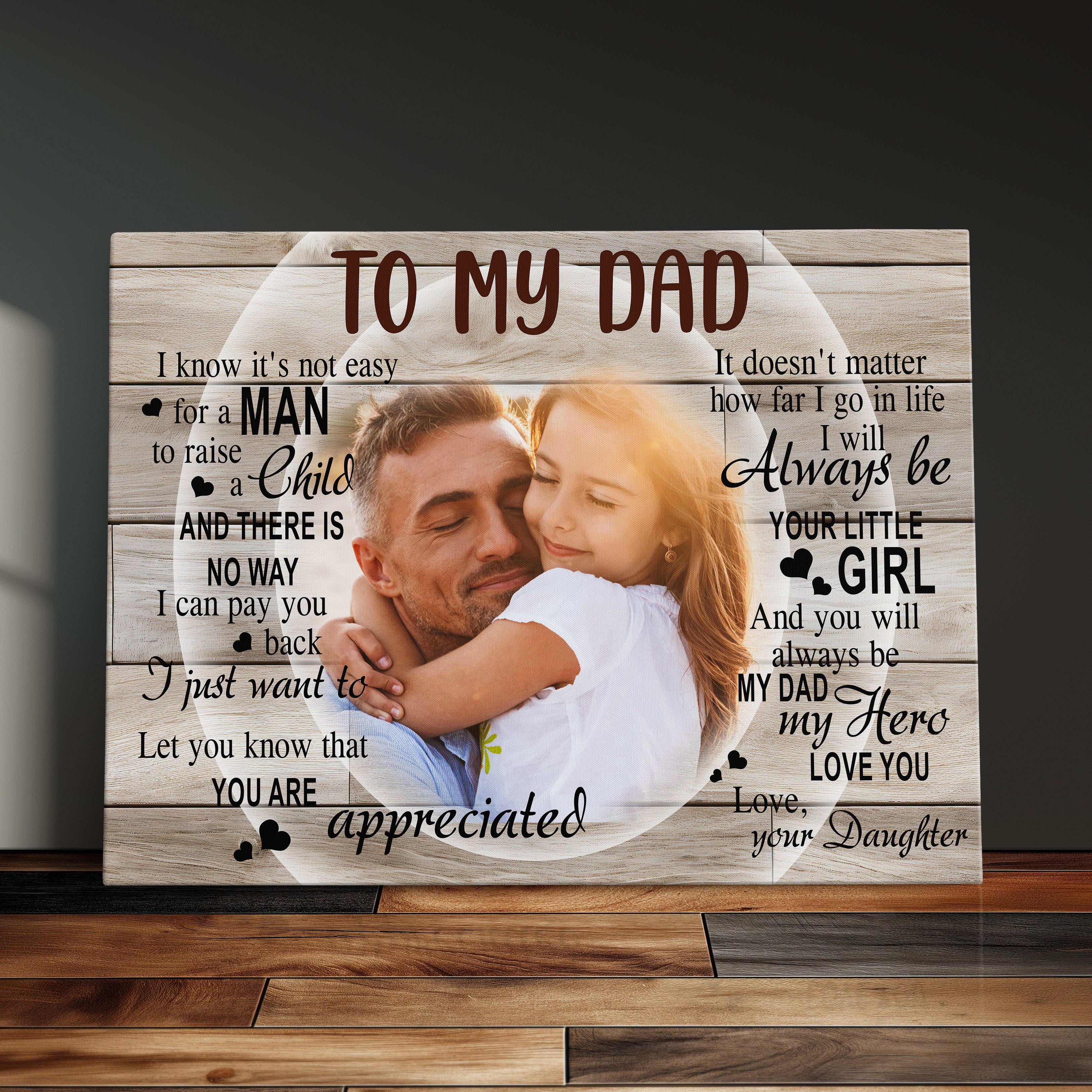 Transform your cherished father-daughter memories into stunning personalized canvas wall art, creating a meaningful photo display that serves as both a beautiful home decor piece and a heartfelt custom message design. This elegant wood frame display makes the perfect Gift For Dad, bringing lasting joy as a striking wall decoration.