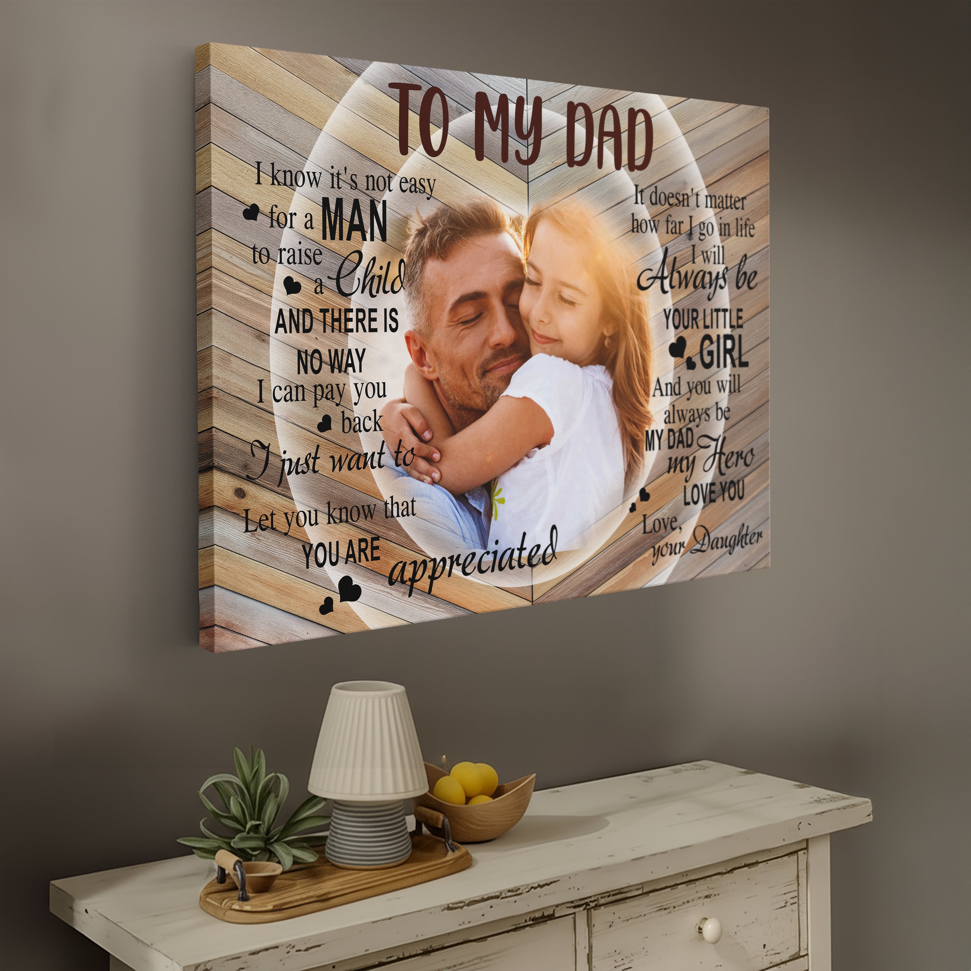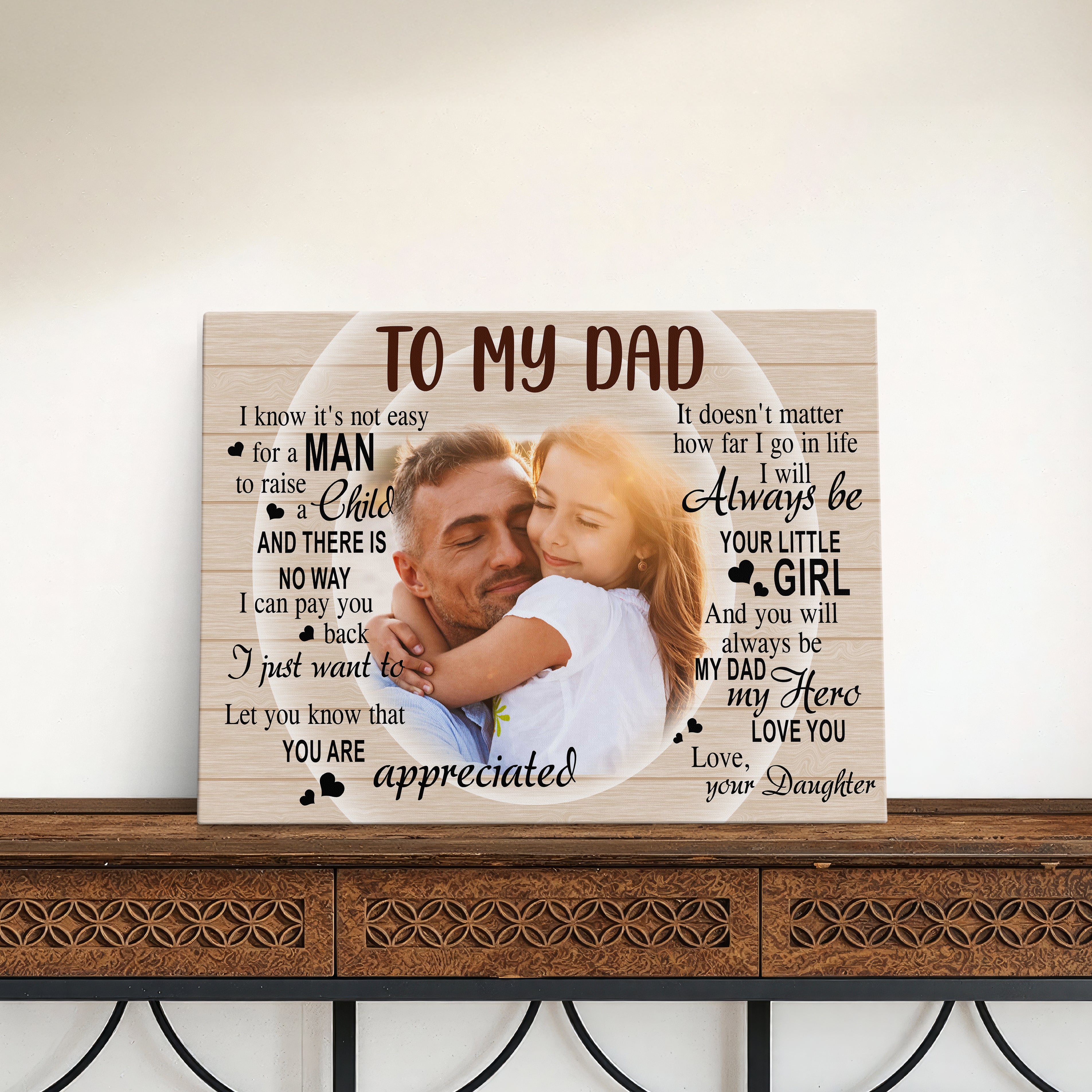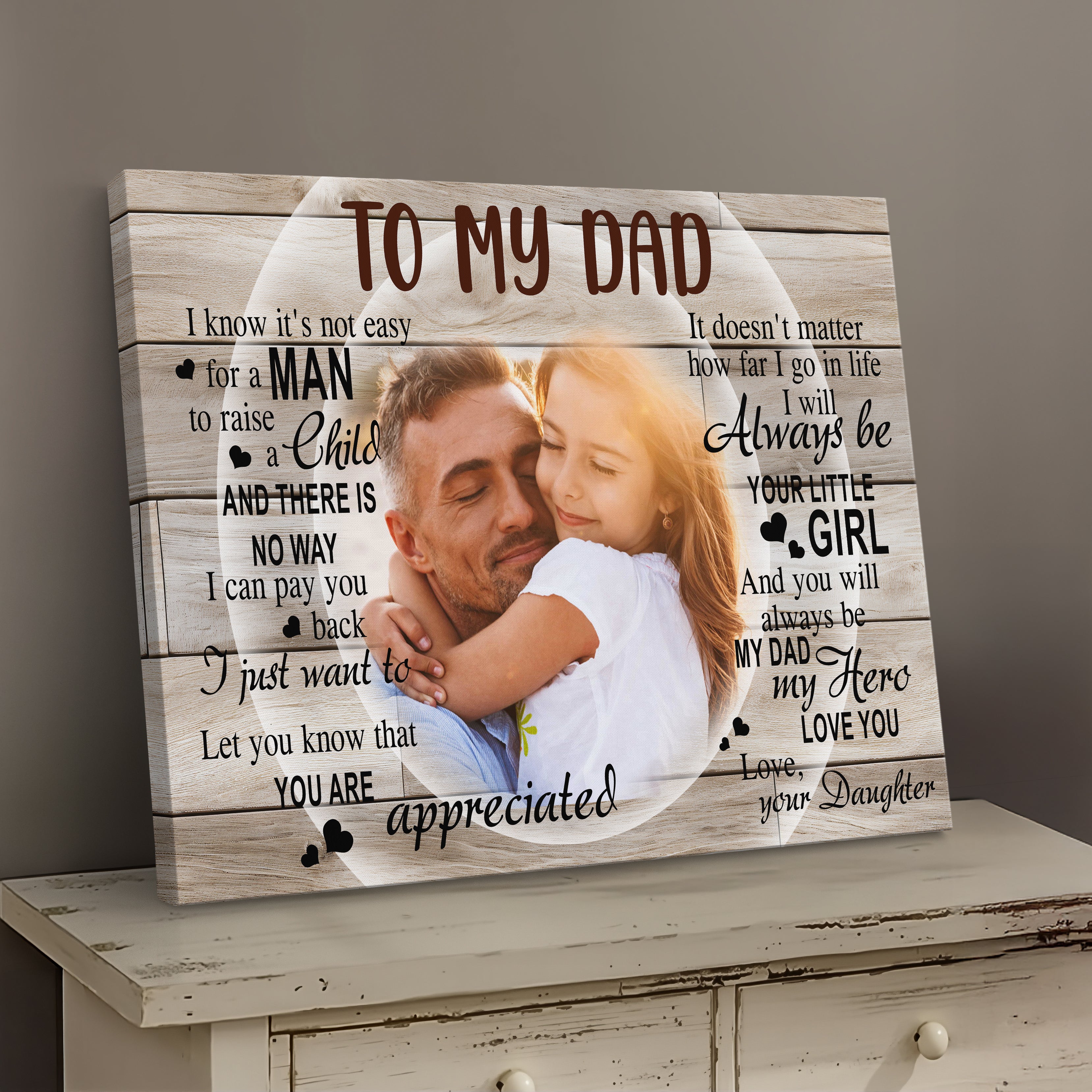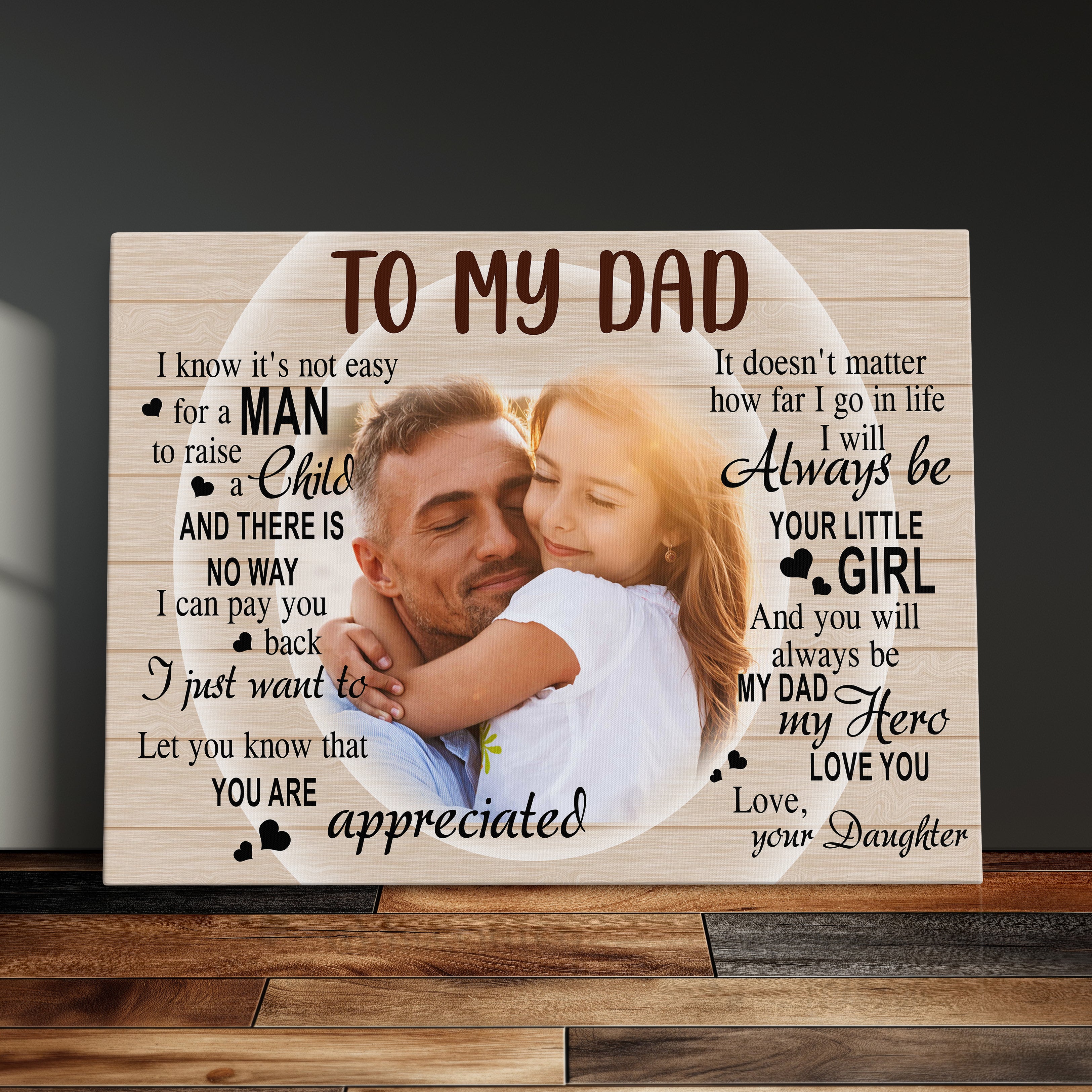 Transform your cherished father-daughter memories into stunning personalized canvas wall art, creating a meaningful photo display that serves as both a beautiful home decor piece and a heartfelt custom message design. This elegant wood frame display makes the perfect Gift For Dad, bringing lasting joy as a striking wall decoration.