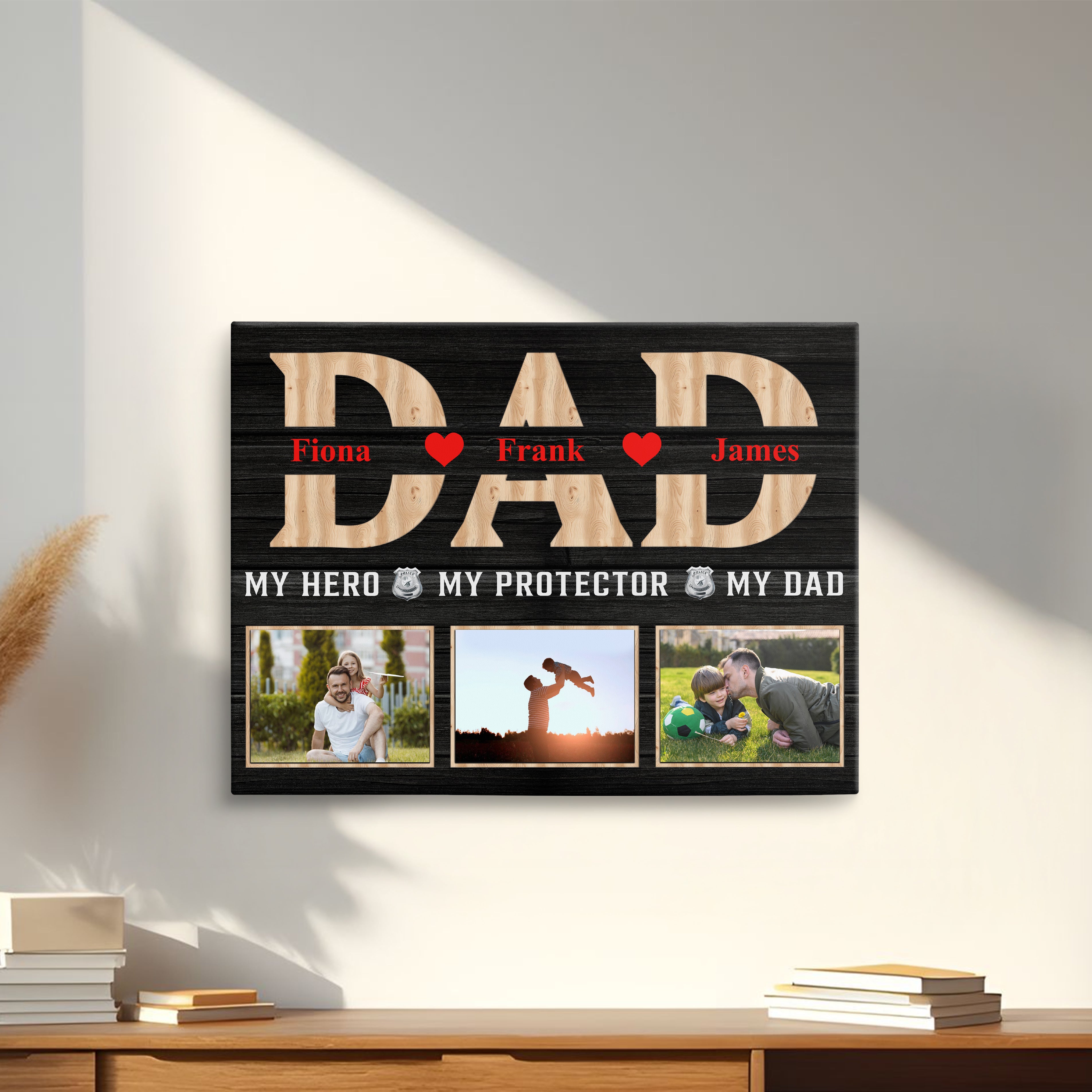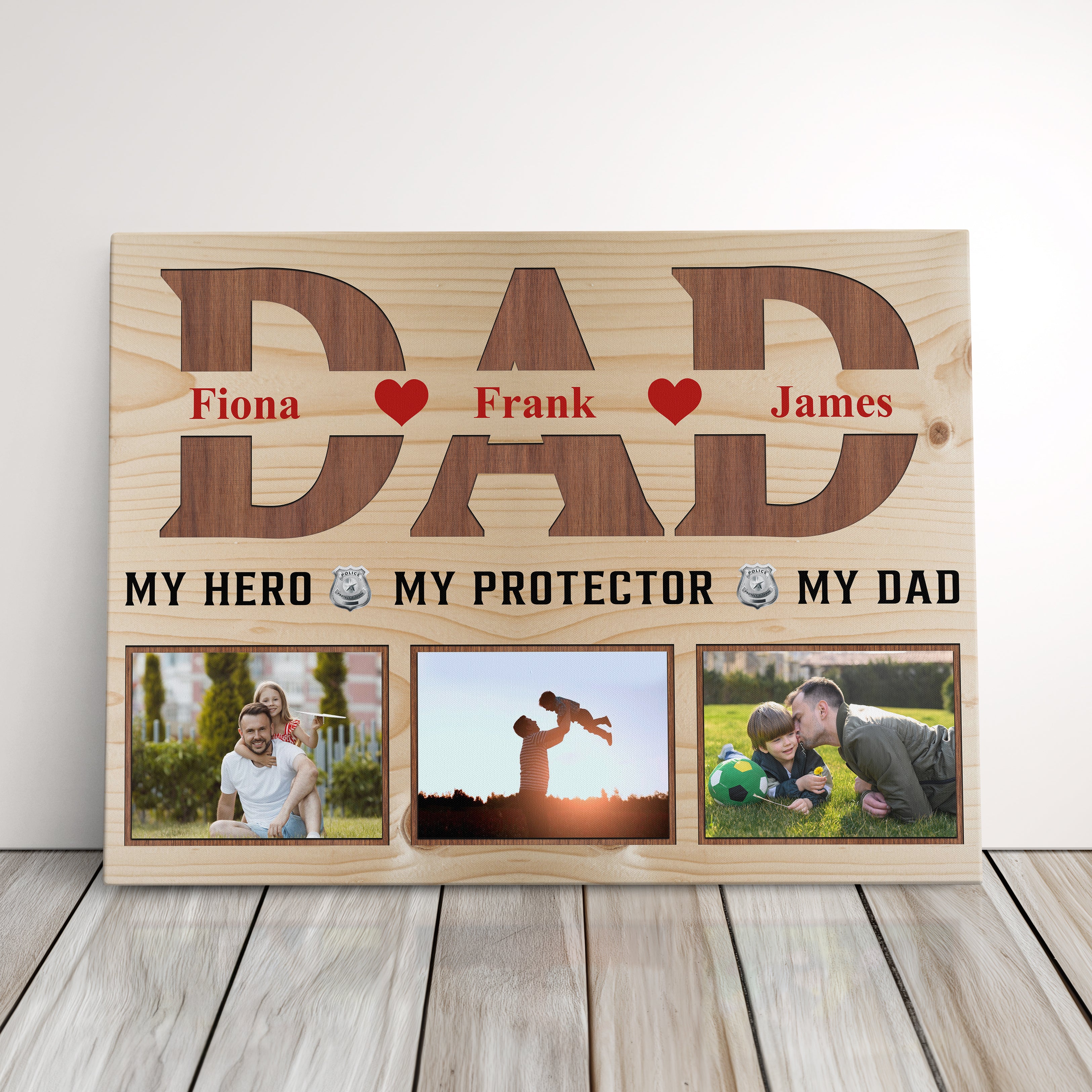 Personalized Gift For Dad Police, Fire, Or Military Father Photo Collage Canvas Print Photo Gift Idea For Dad
