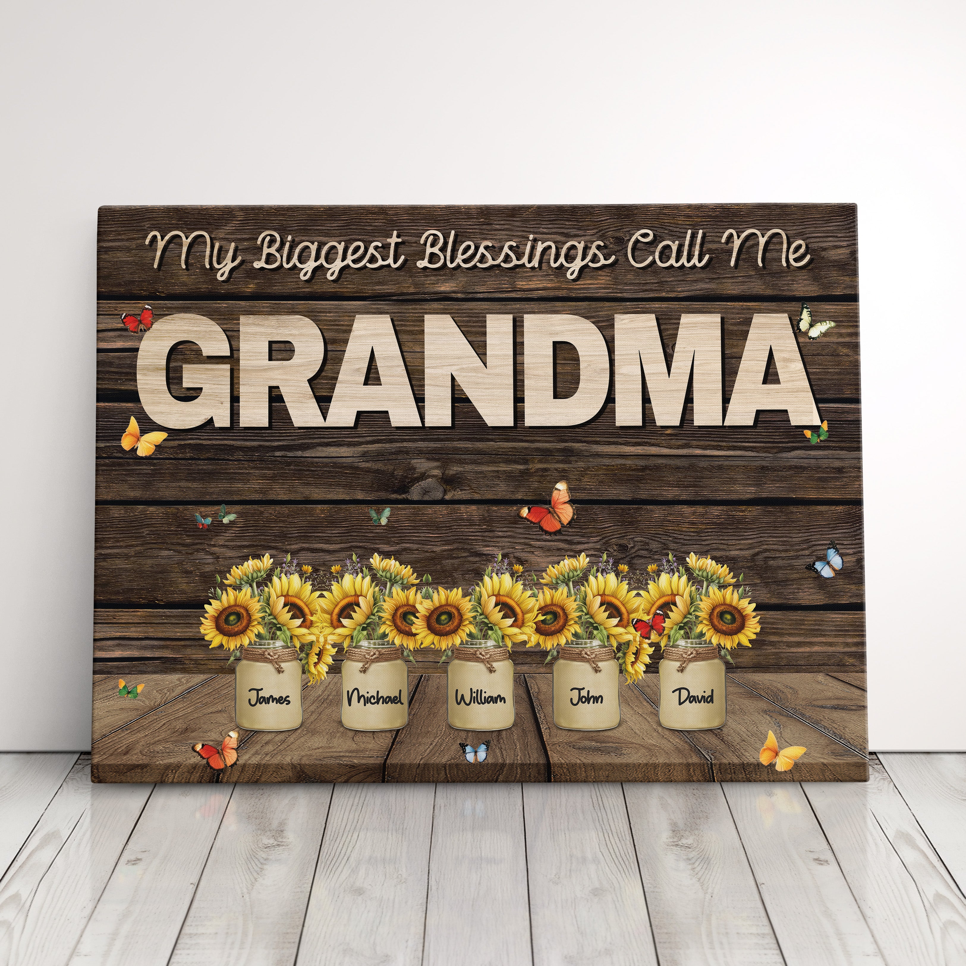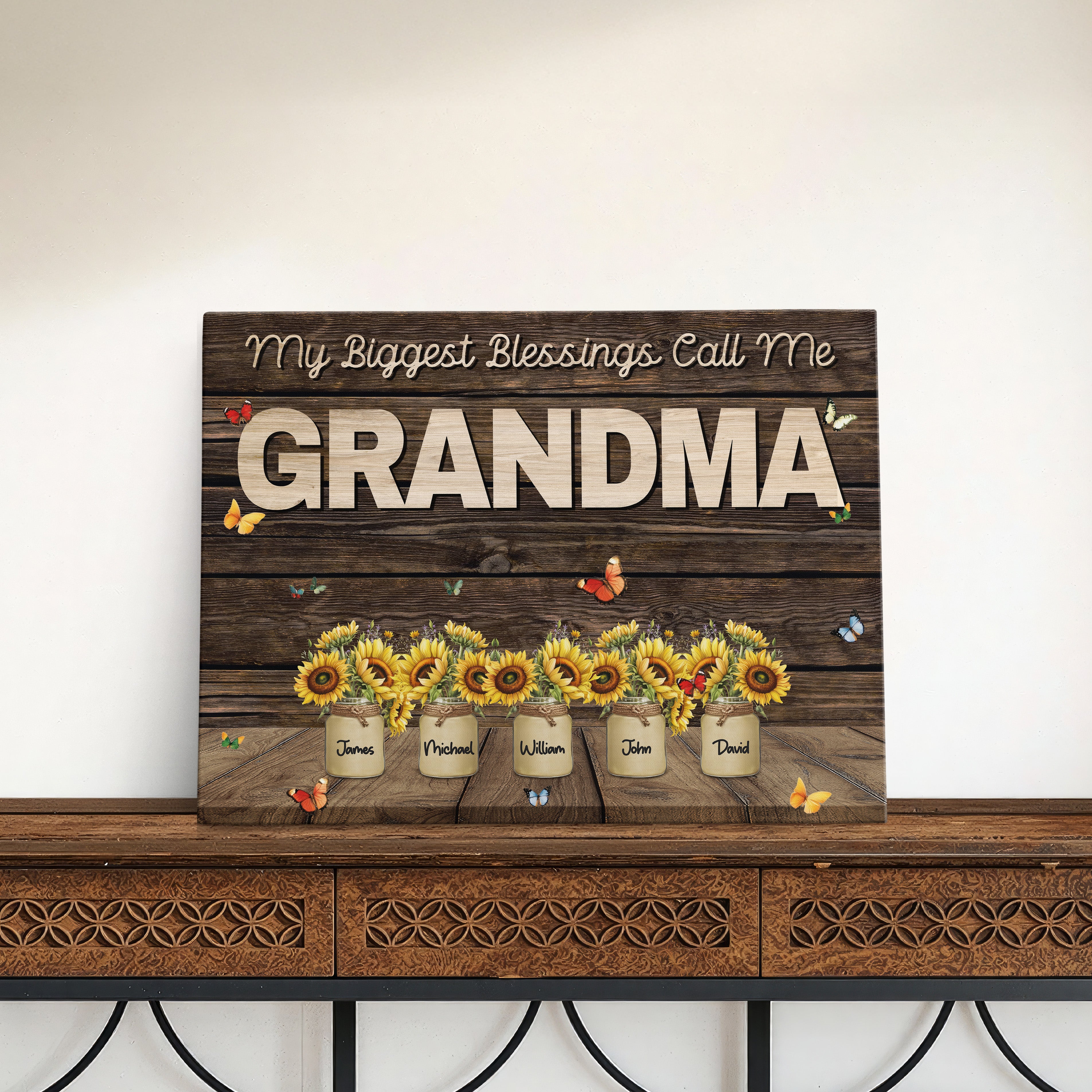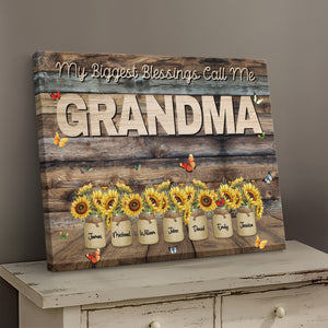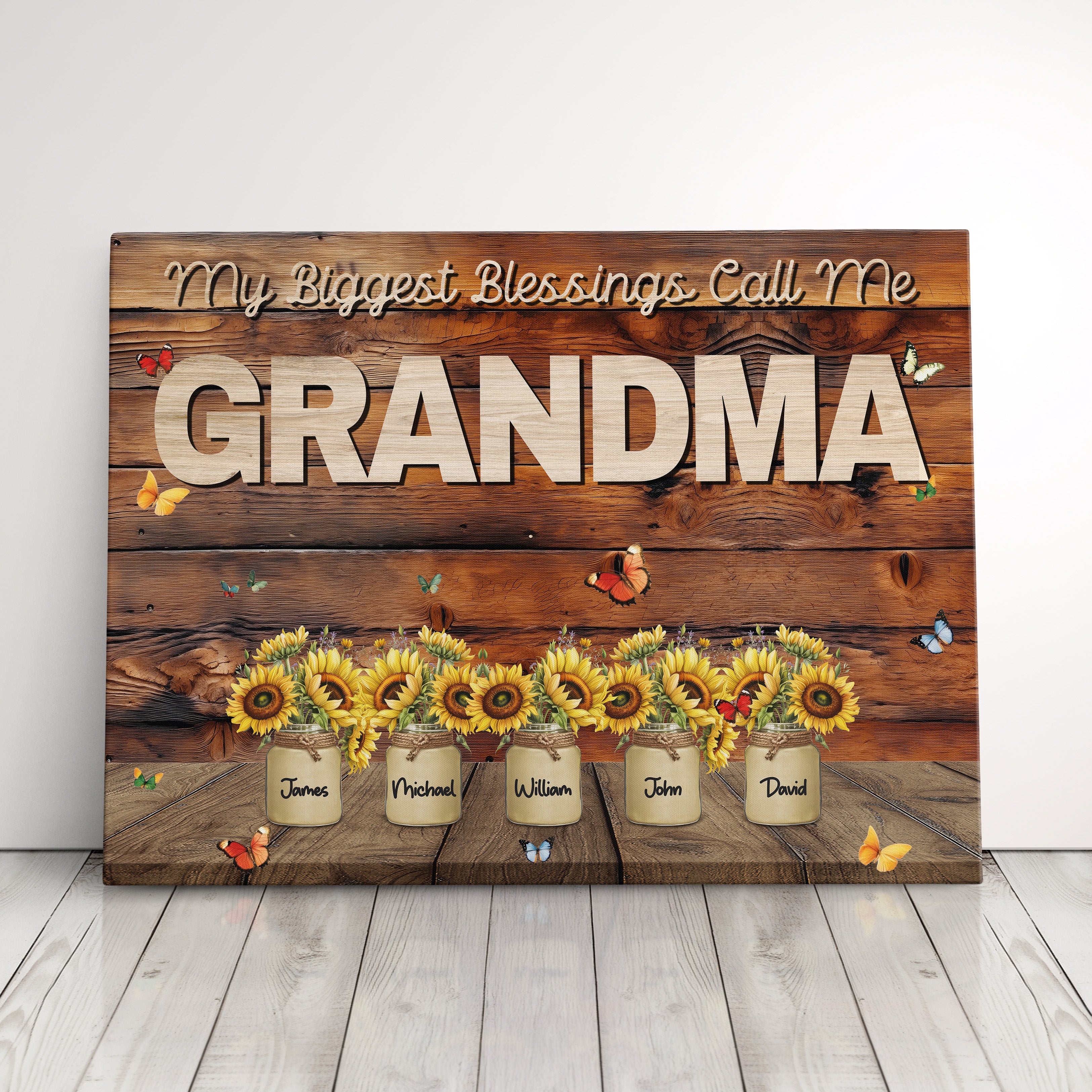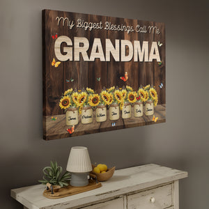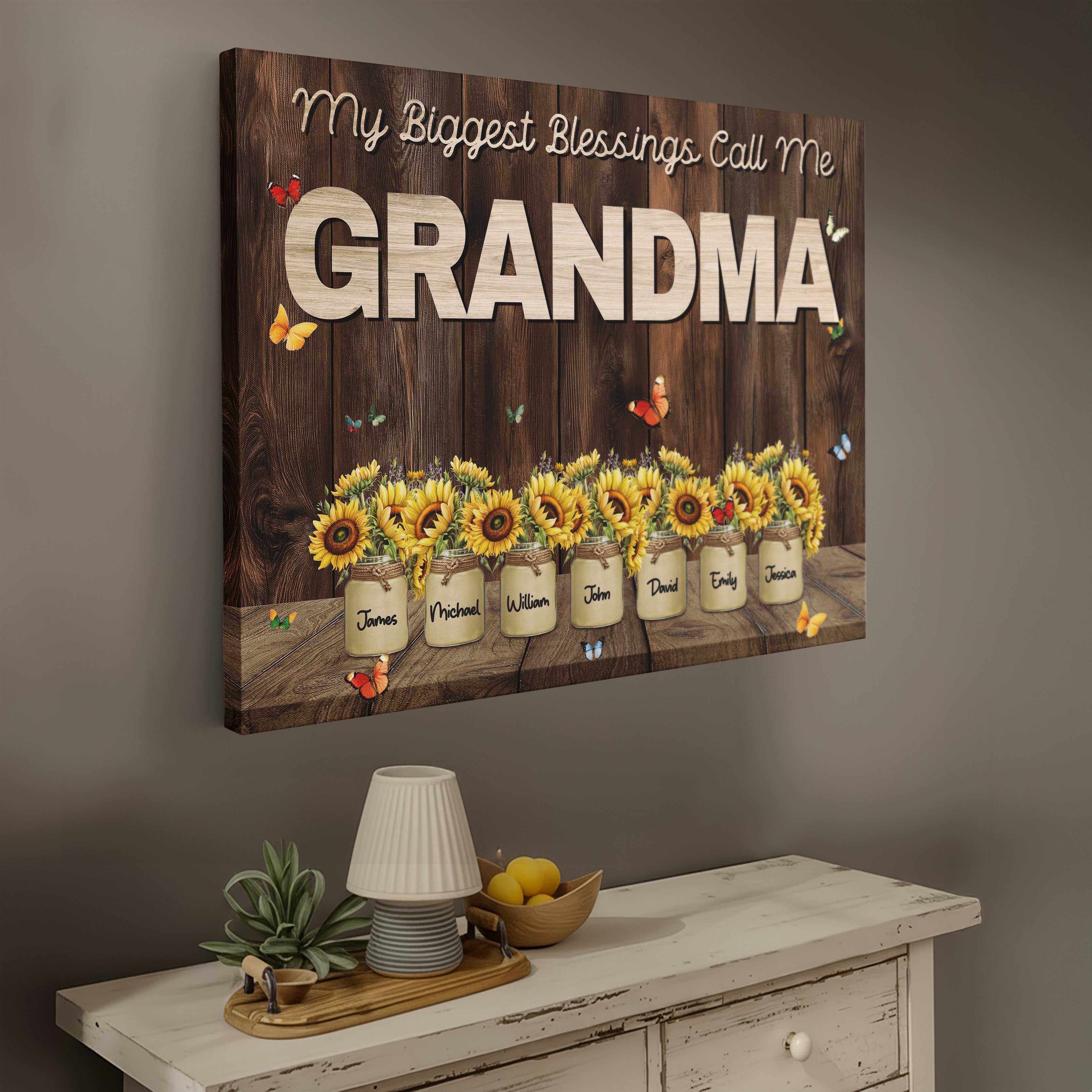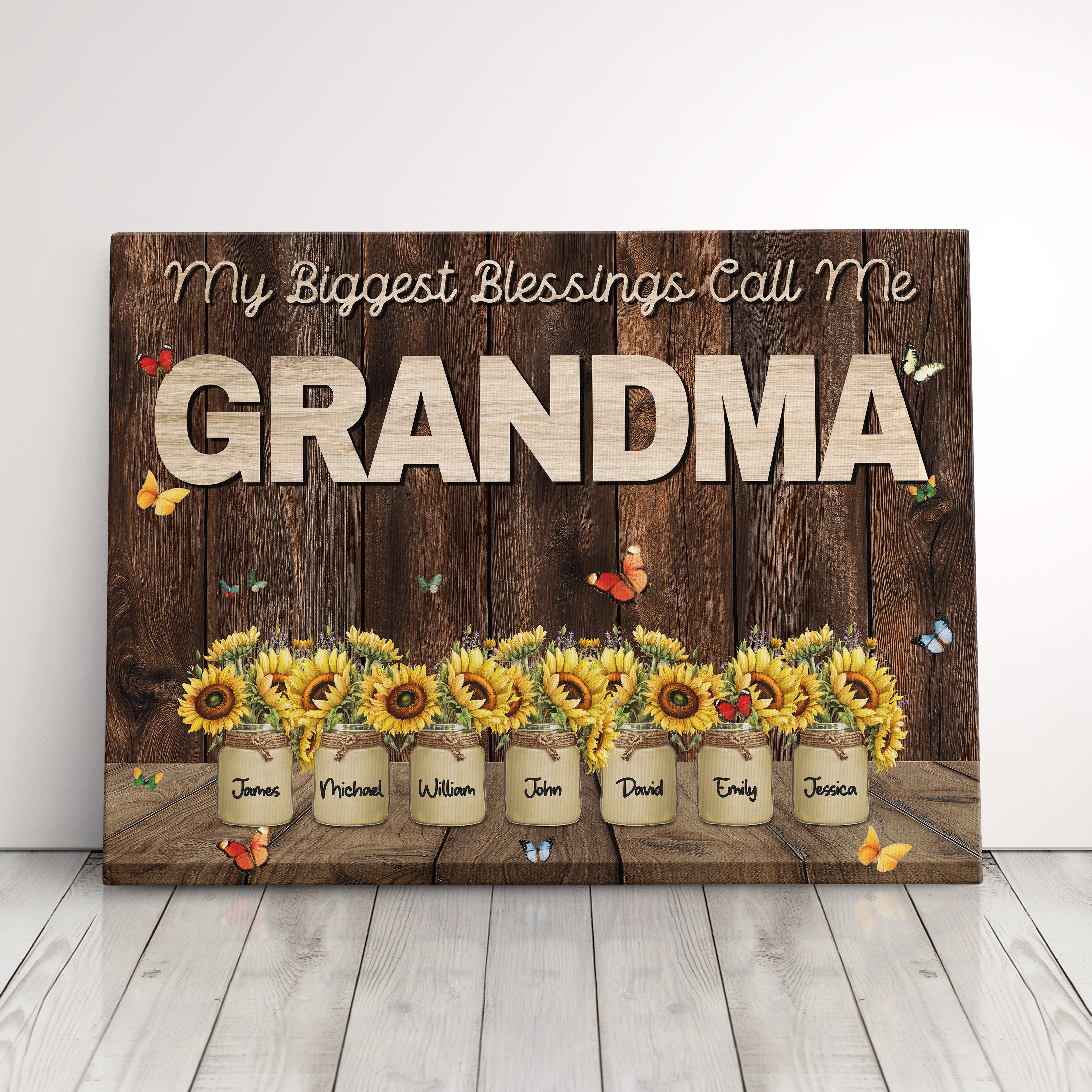 Personalized Gift For Grandma Farmhouse Style Sunflower Mason Jar Family Names Canvas Print