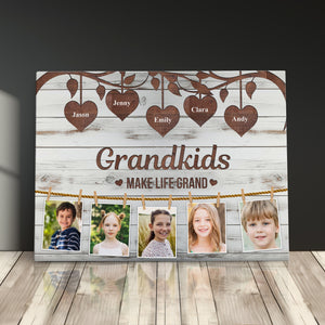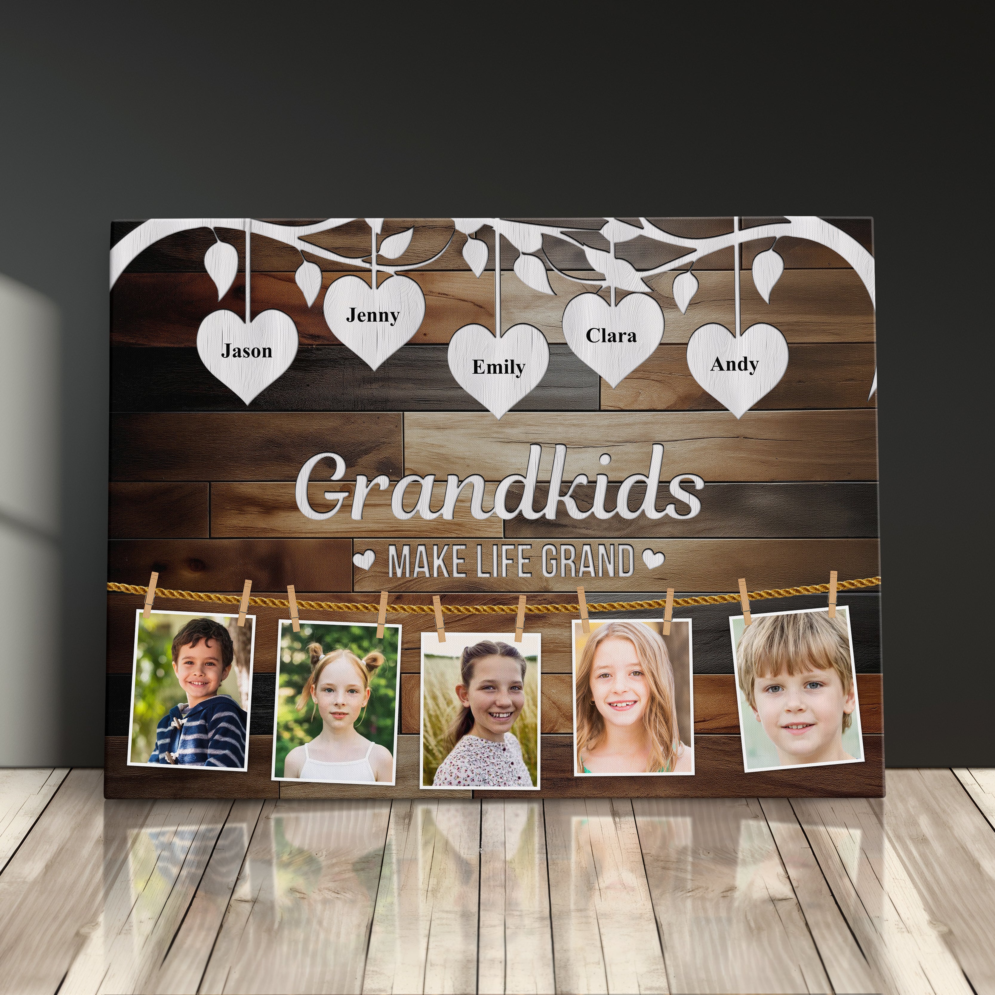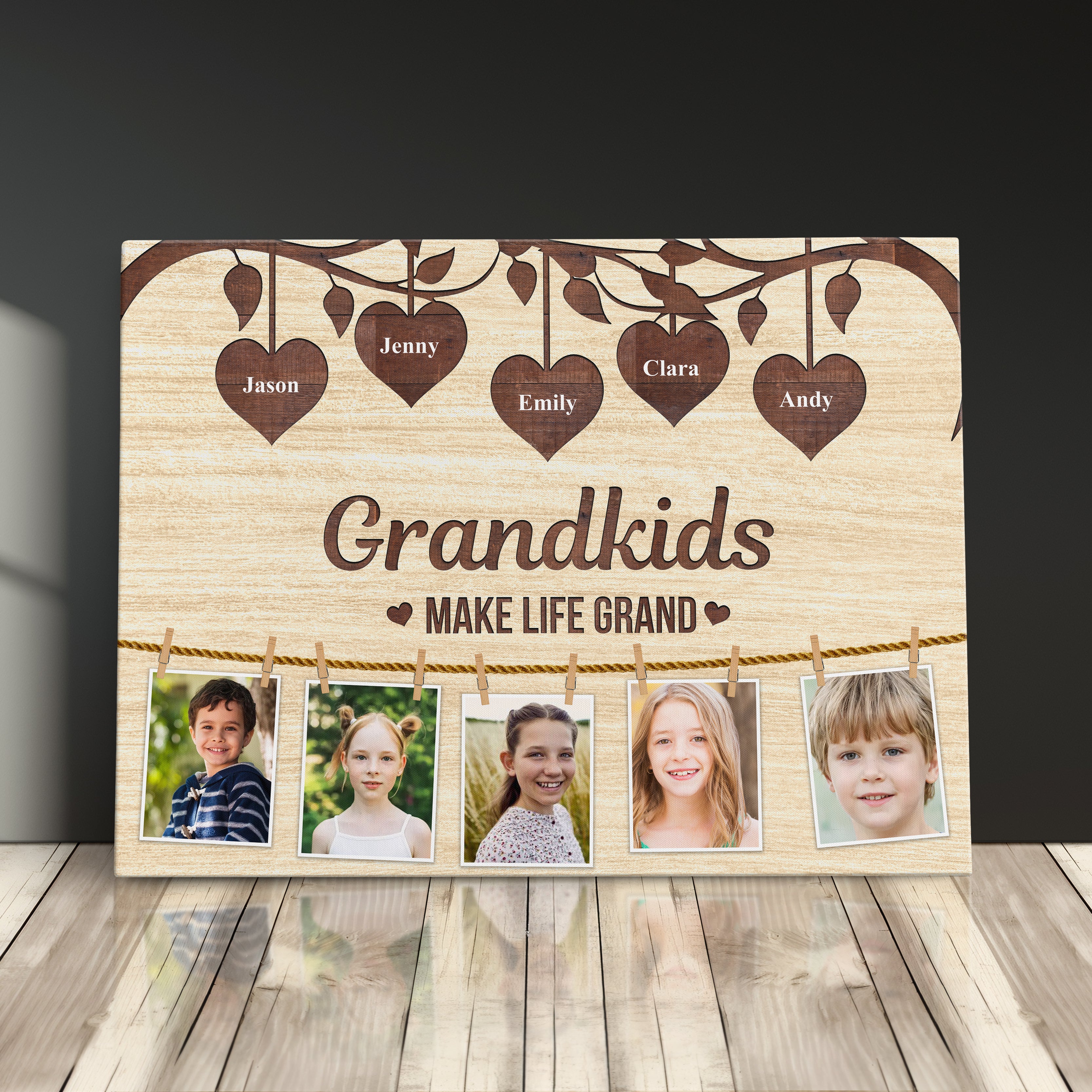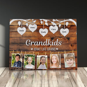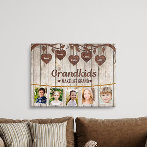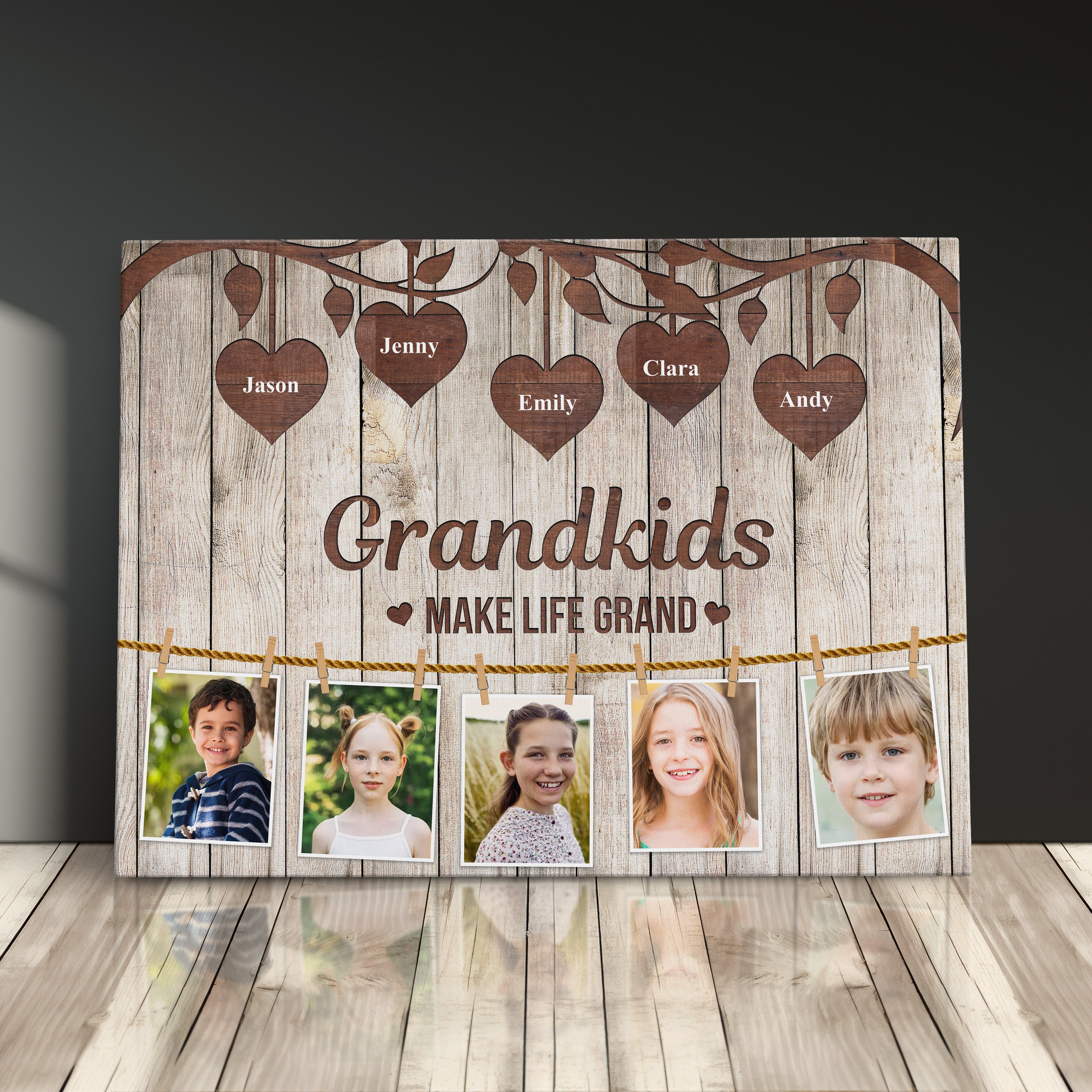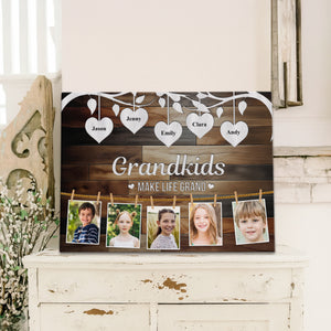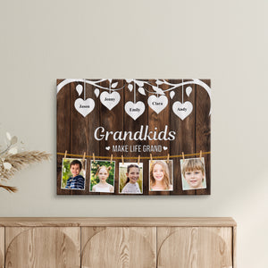 Grandkids Make Life Grand Personalized Photo Collage Canvas Print Rustic Decor Gift Idea For Grandparents