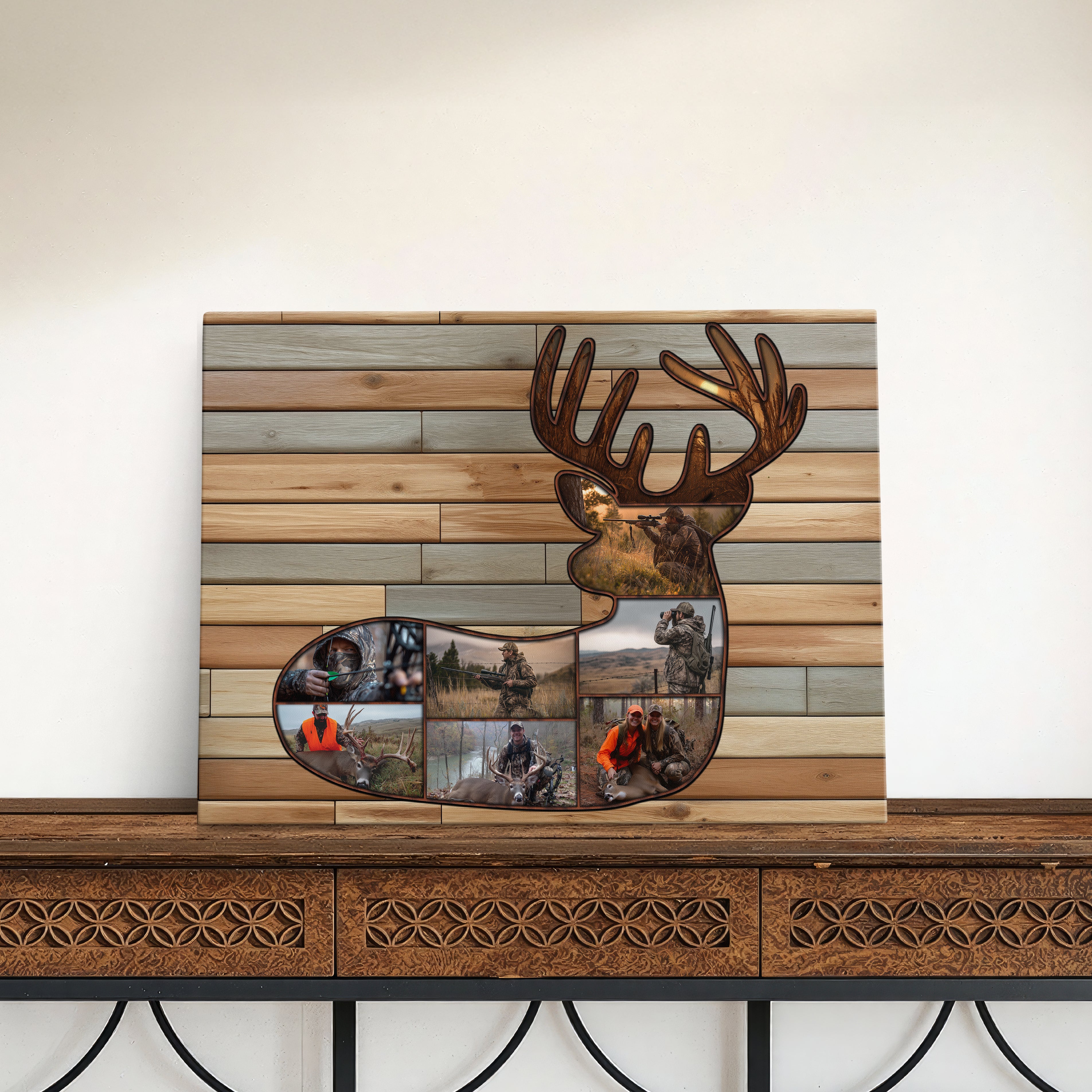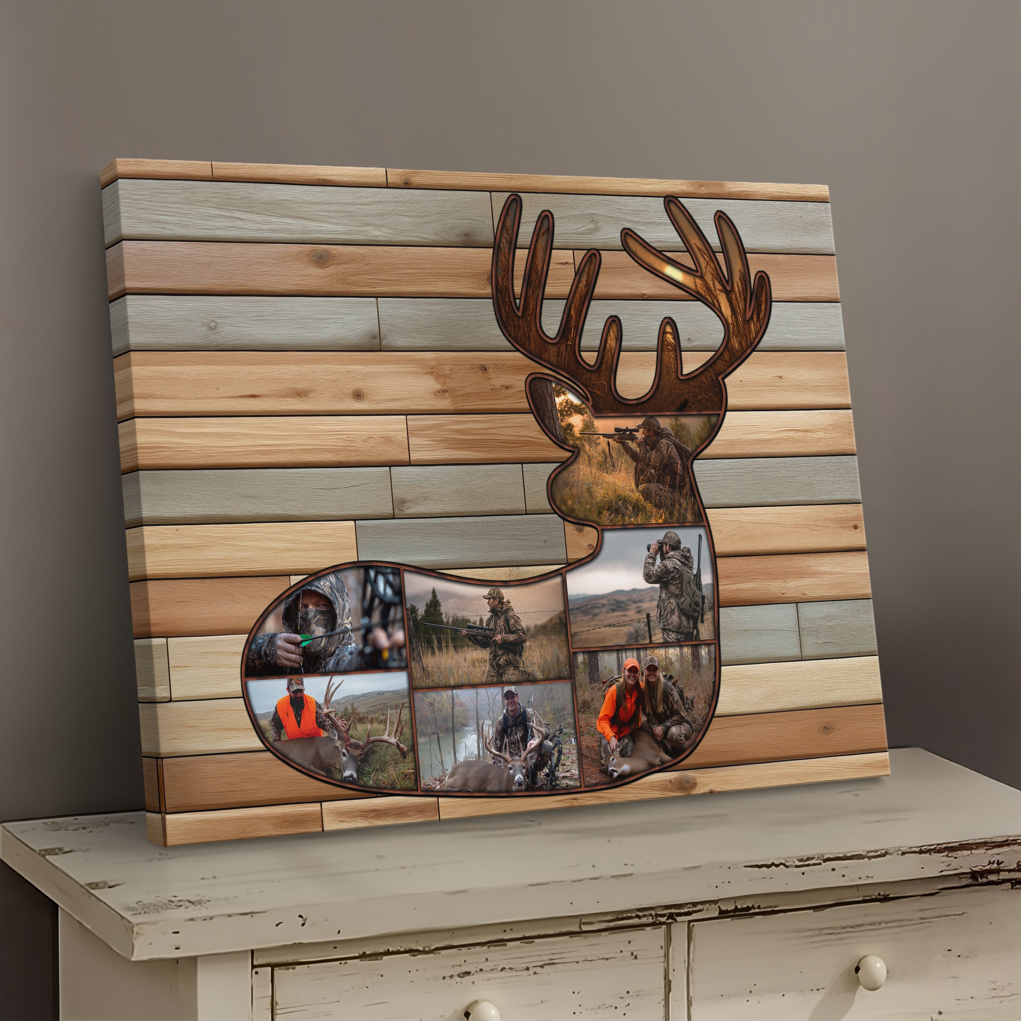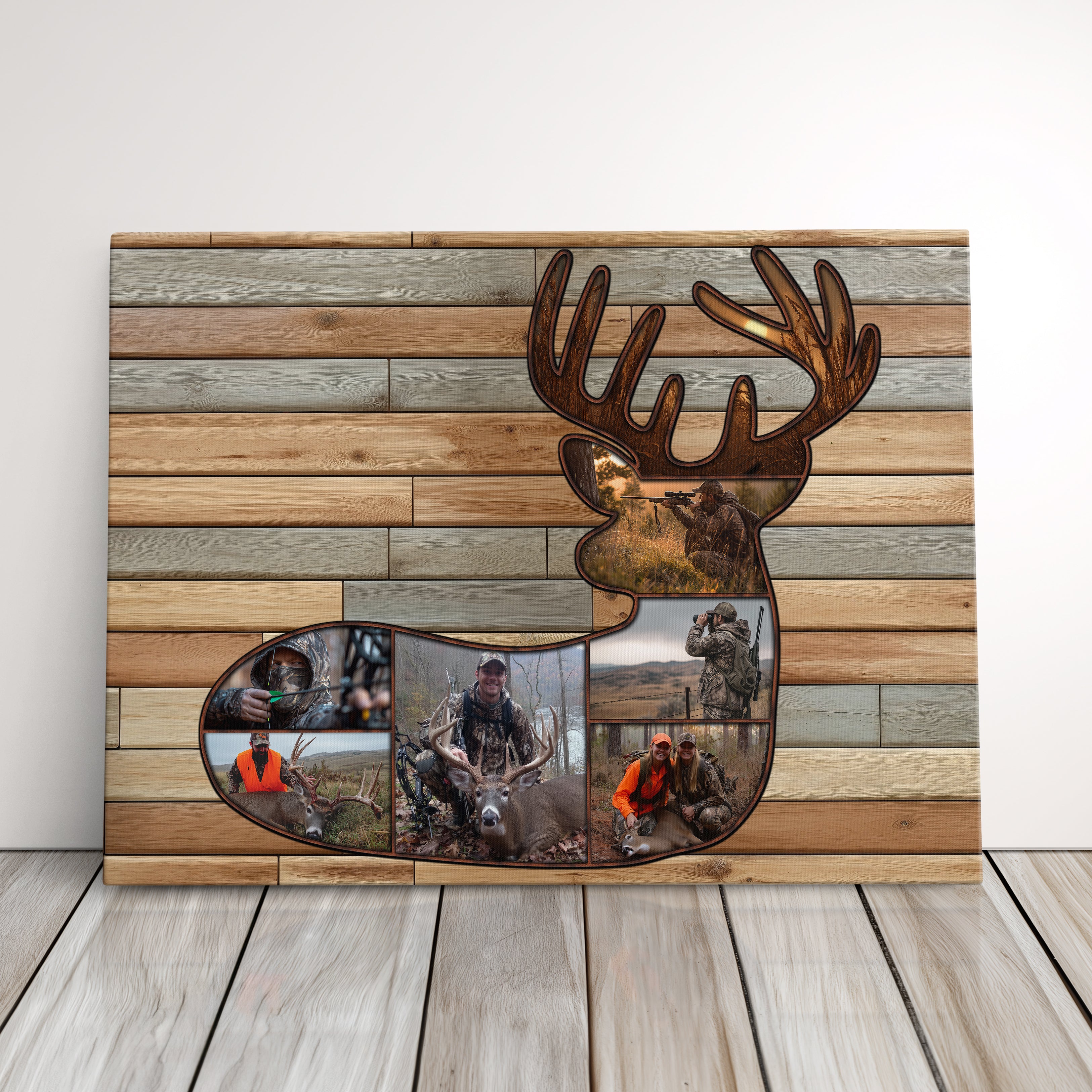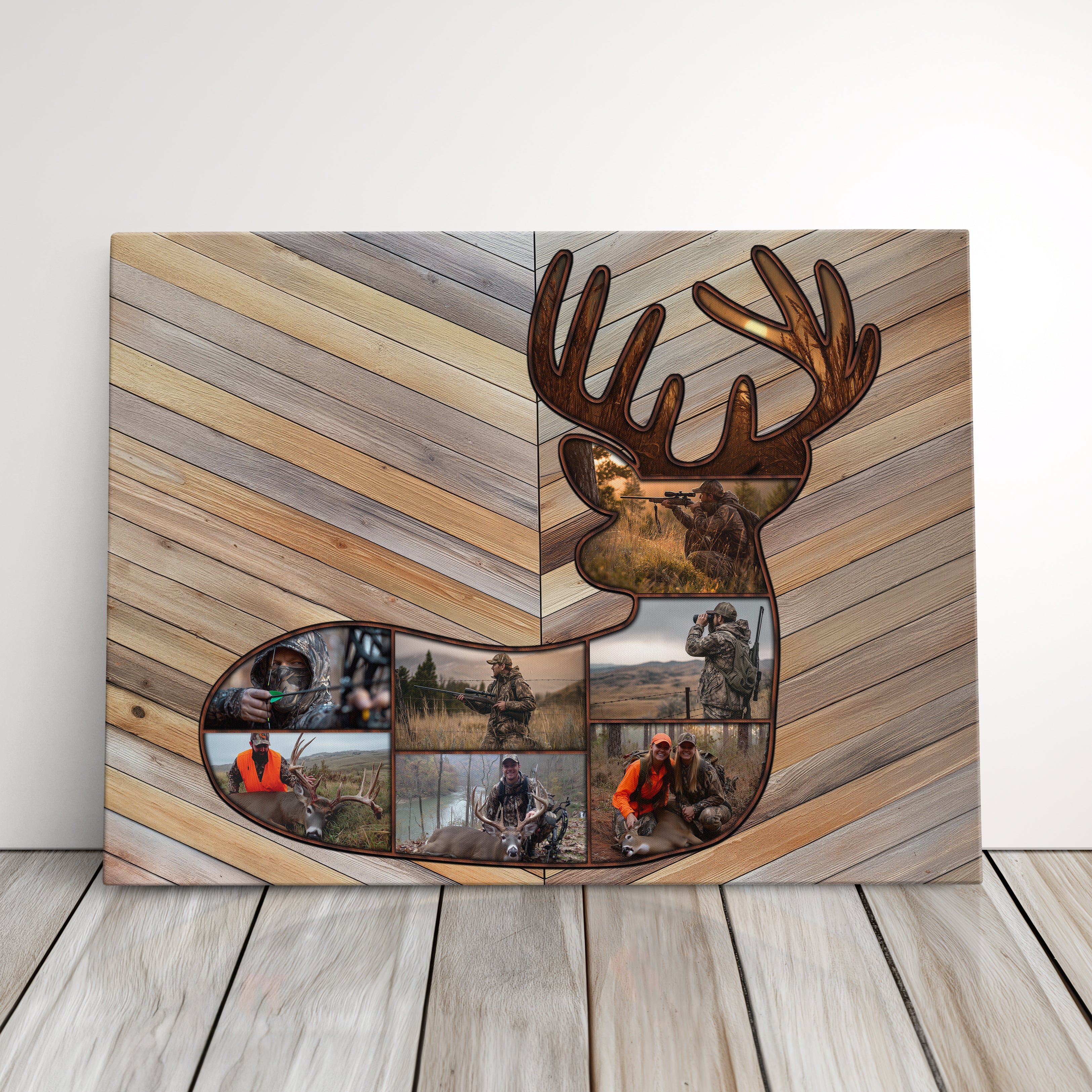 Celebrate a passion for the outdoors with this Personalized Deer Hunting Canvas Print, designed as a unique and thoughtful Gift for Dad, Husband, or any hunter or outdoor enthusiast in your life. Featuring your own hunting photos inside a deer silhouette, this custom collage print is the perfect way to showcase unforgettable moments from the field.