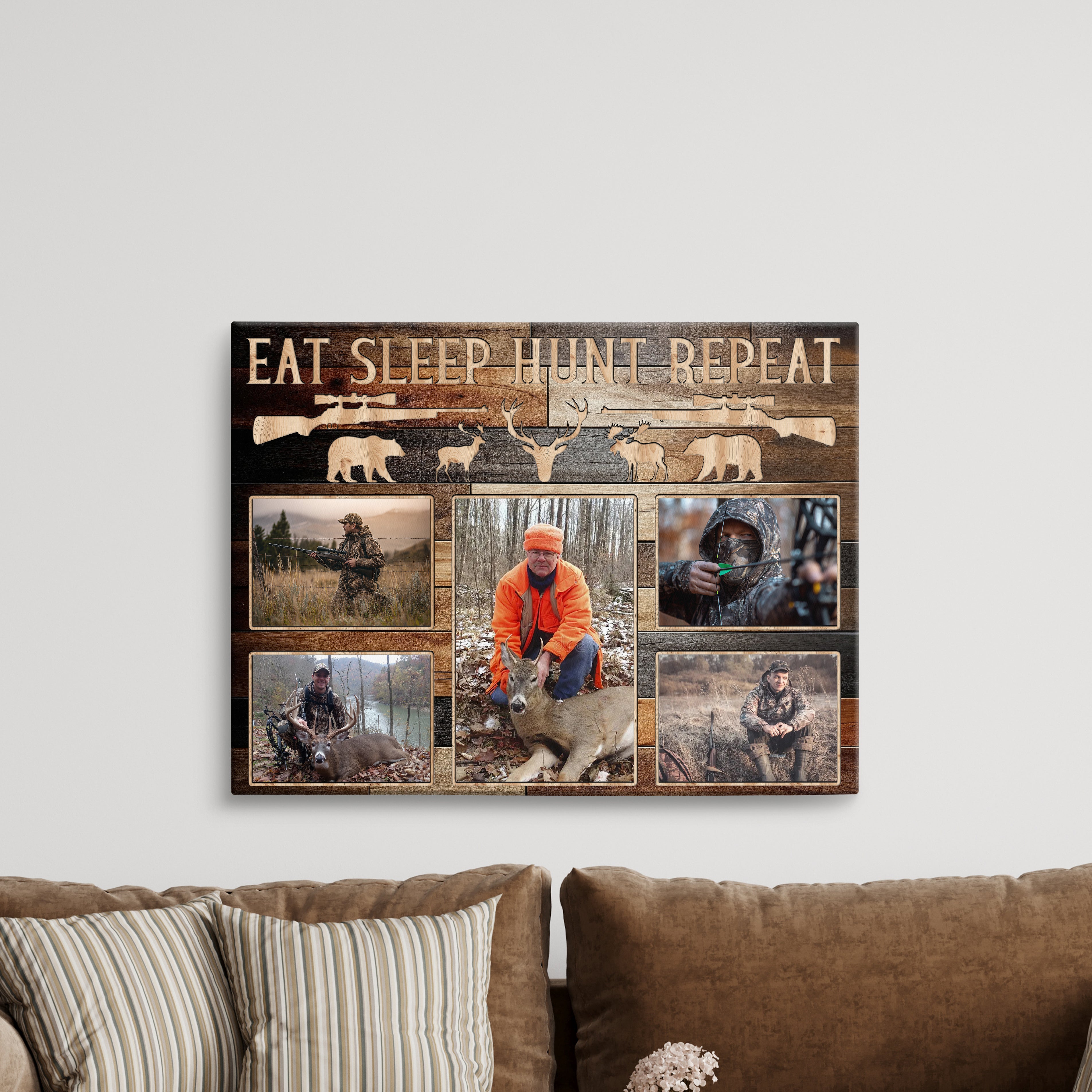 This deer hunting photo collage is a personalized gift for dad that brings his best outdoor memories to life. It’s a perfect birthday gift idea for a hunter husband or a moose hunting photo gift for someone who loves the thrill of the wild. With bold bear hunting canvas art styling, it's a rugged and meaningful piece of wall decor.