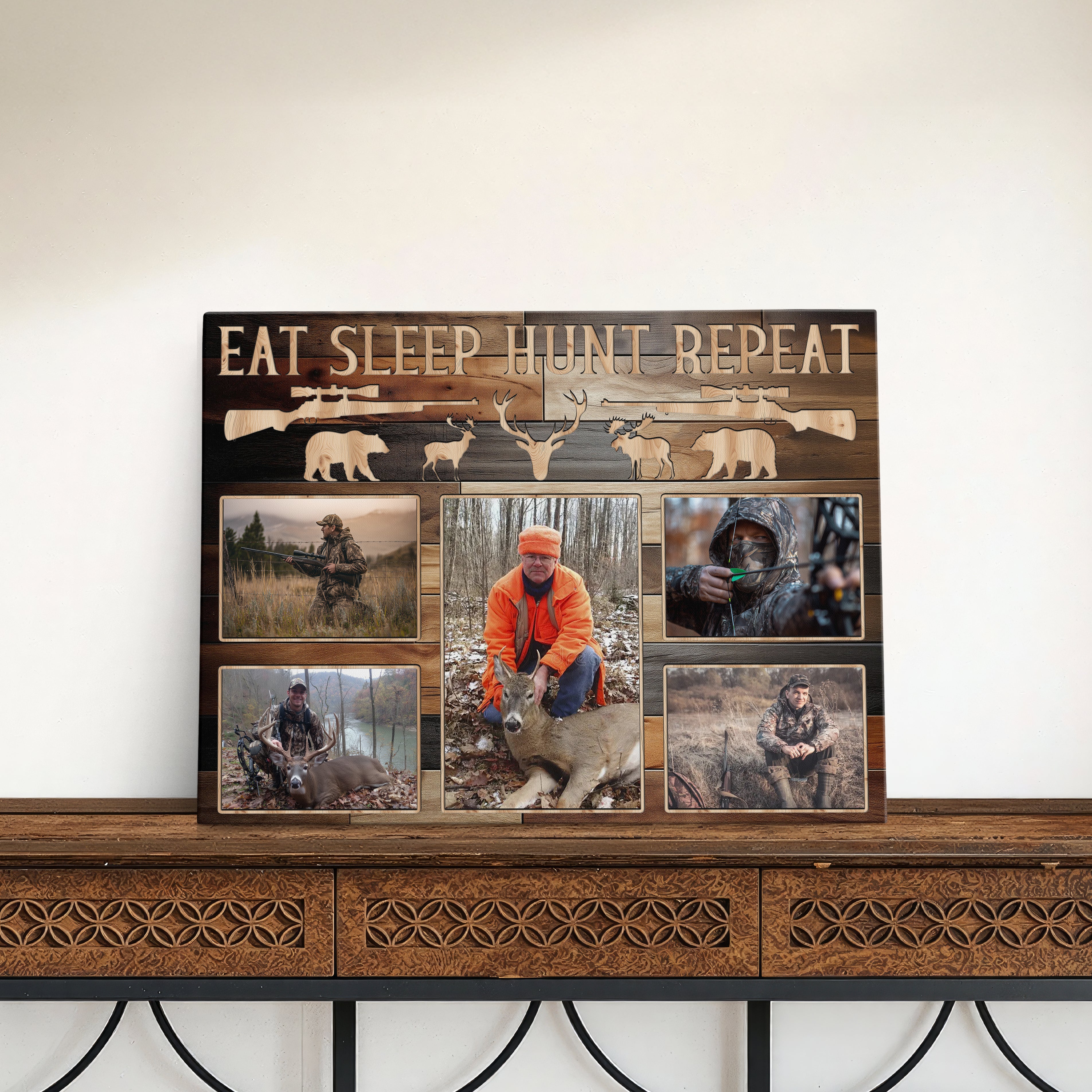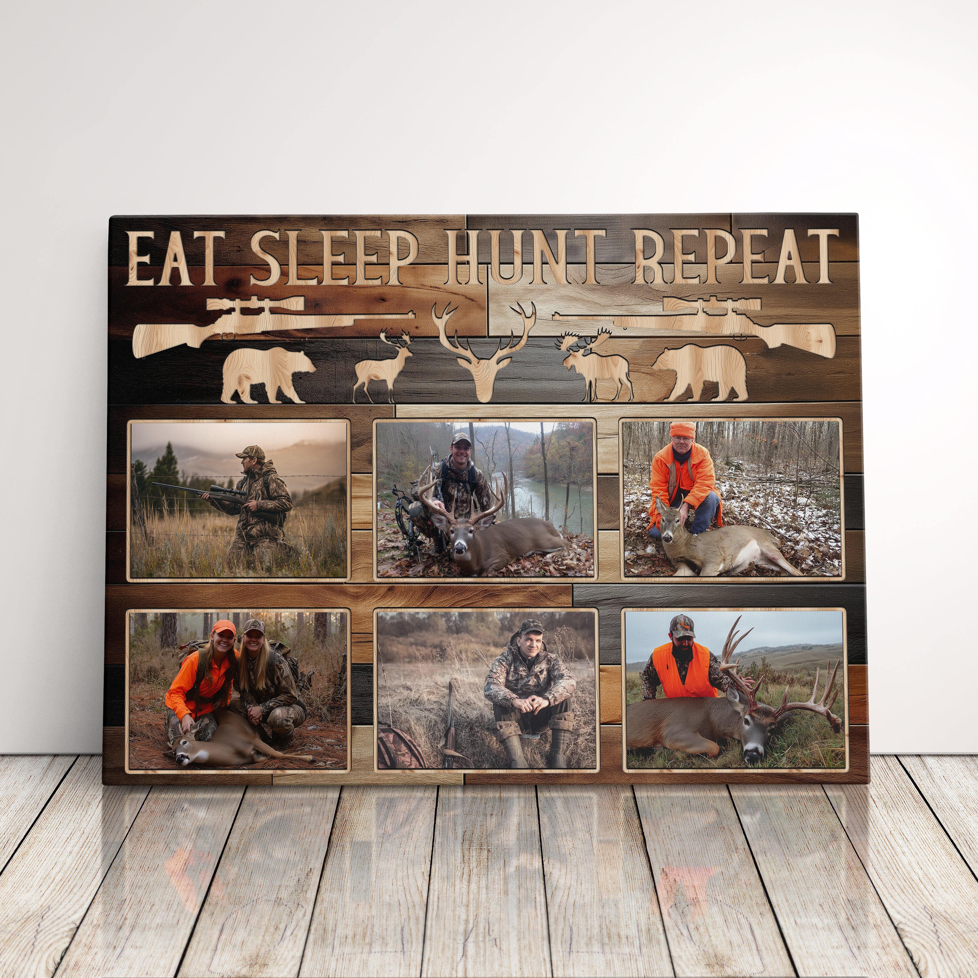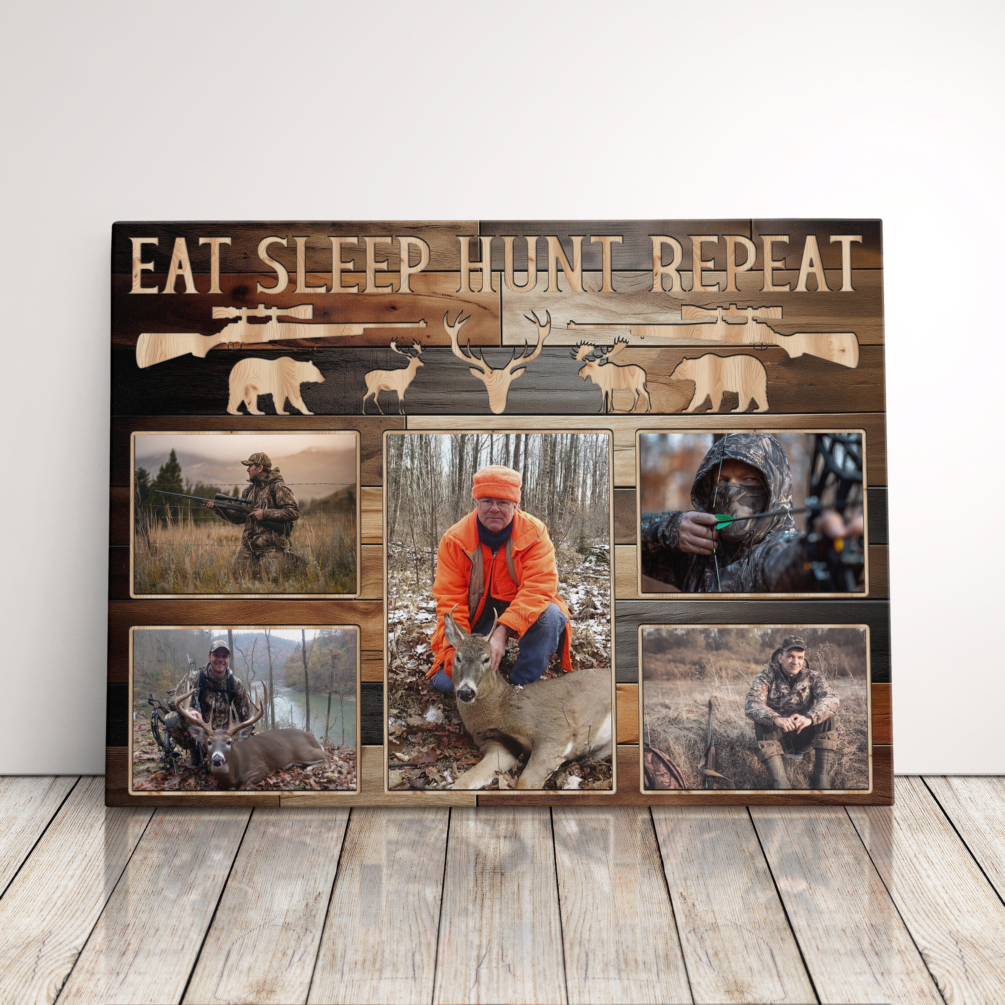 Personalized Hunter Canvas Print Gift For Dad, Husband, Or Boyfriend, Big Game Hunting Photo Collage Gift Ideas, Elk, Moose, Deer, Or Bear Hunting Photo Gift