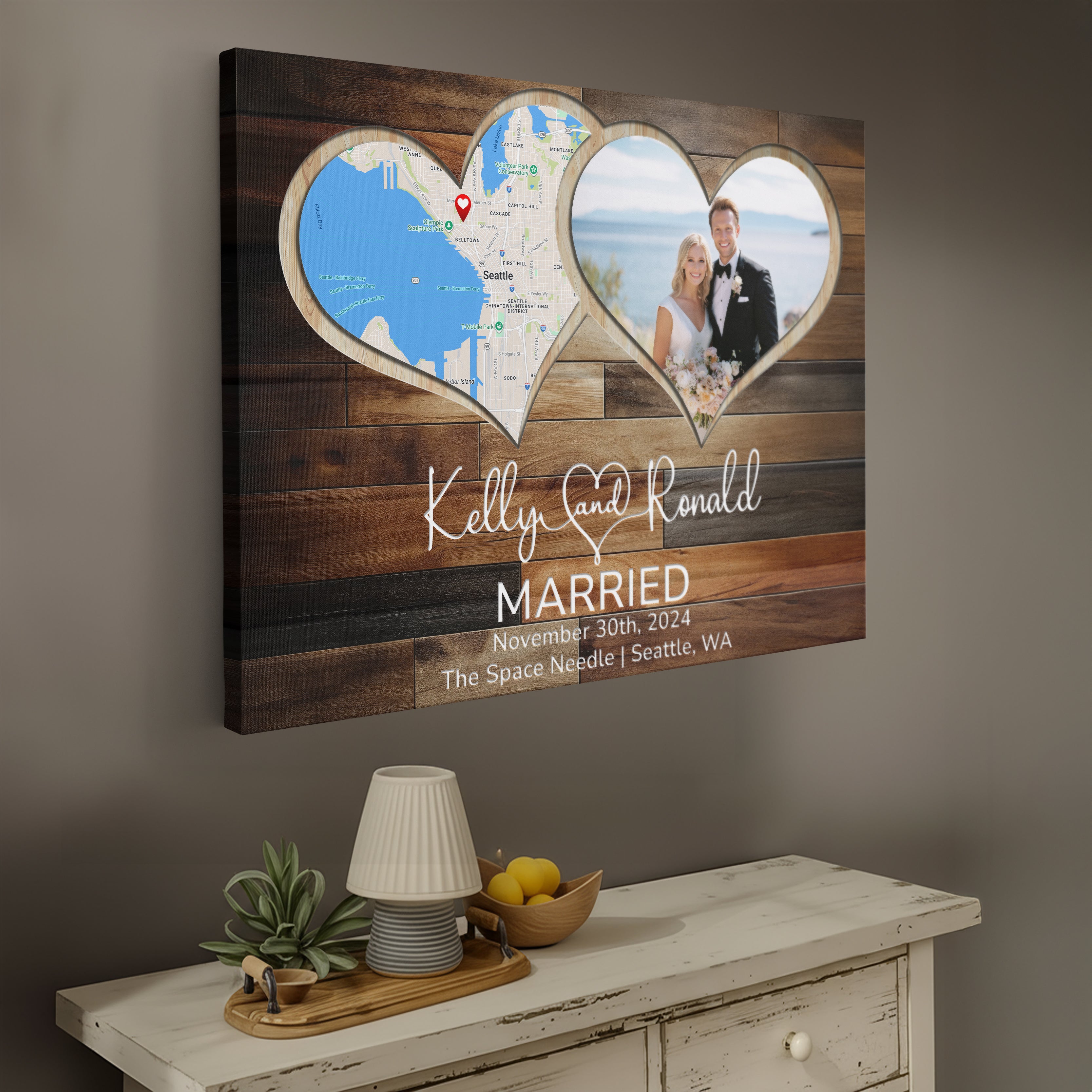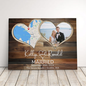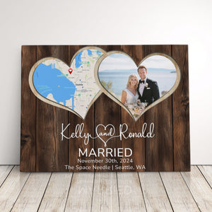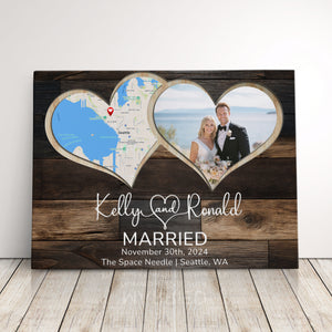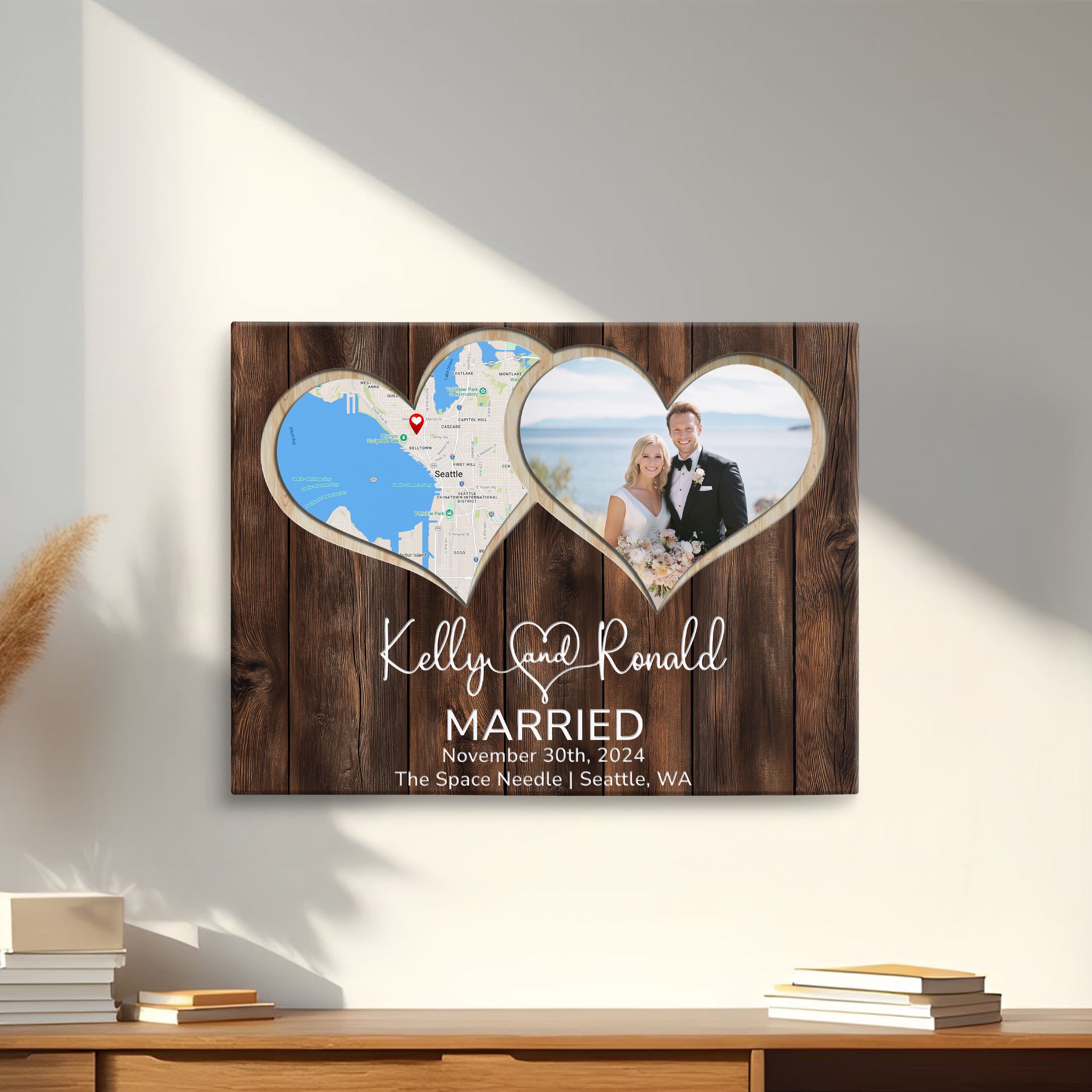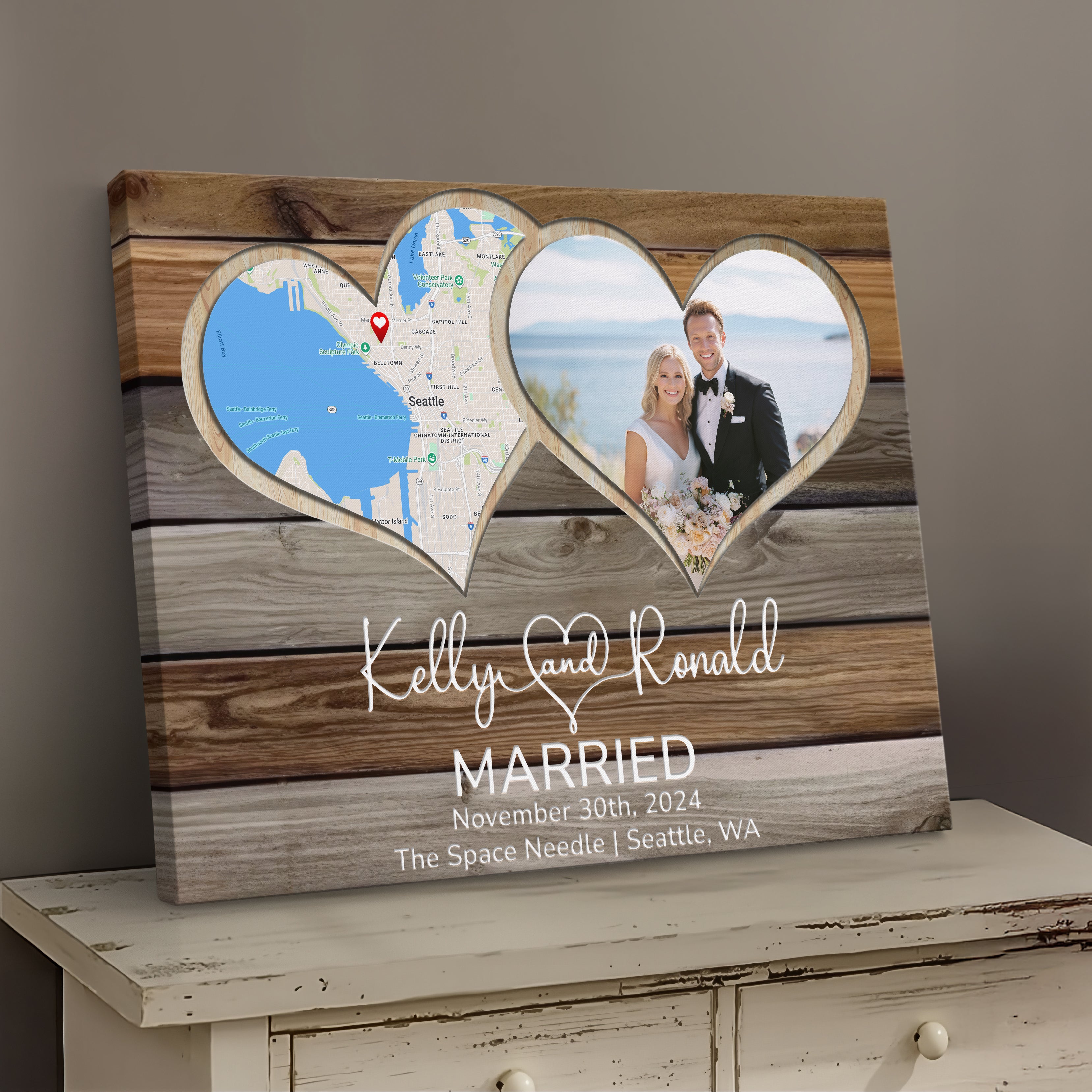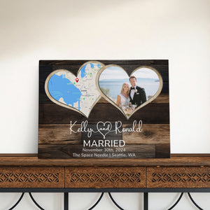 Celebrate your love with a custom anniversary gift that’s perfect for any milestone. Whether it’s a 1st anniversary gift for a husband or a 10 year anniversary gift for a wife, this photo keepsake makes a meaningful present. A thoughtful wedding gift idea for couples or anniversary presents for her. This custom photo frame features a unique heart-shaped design incorporating both a location map and your special photos, creating a timeless wedding memory display that will bring joy to your space.