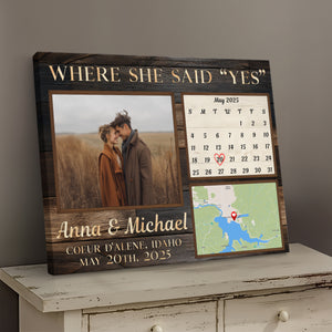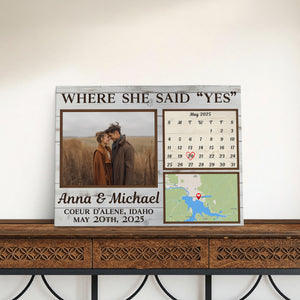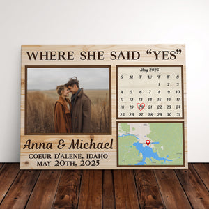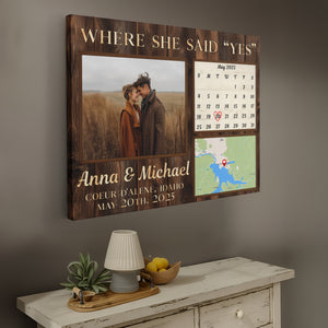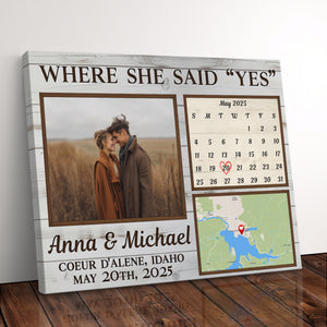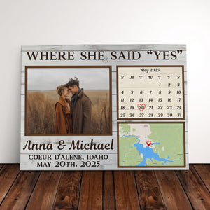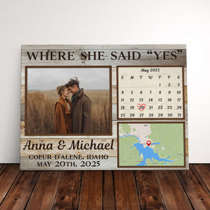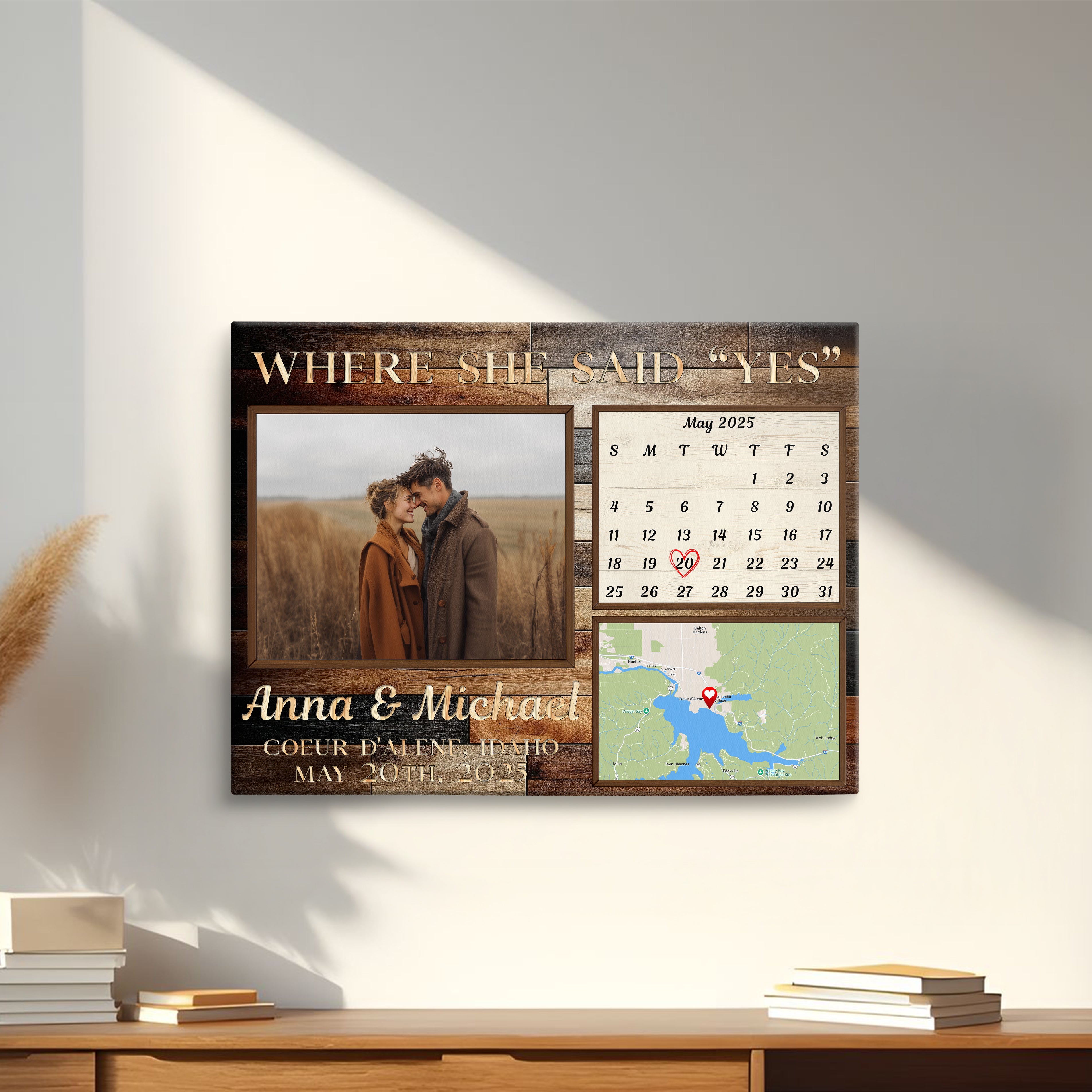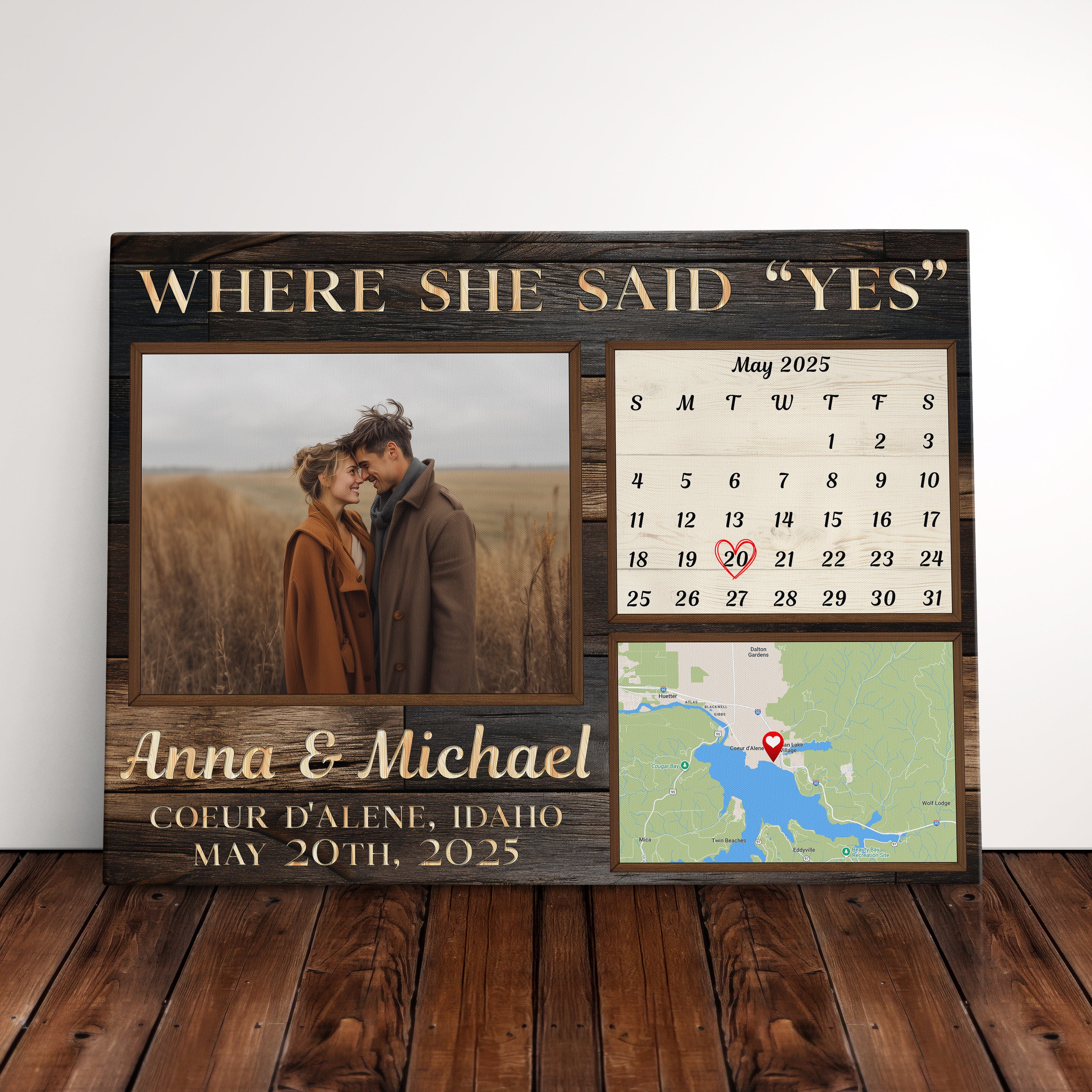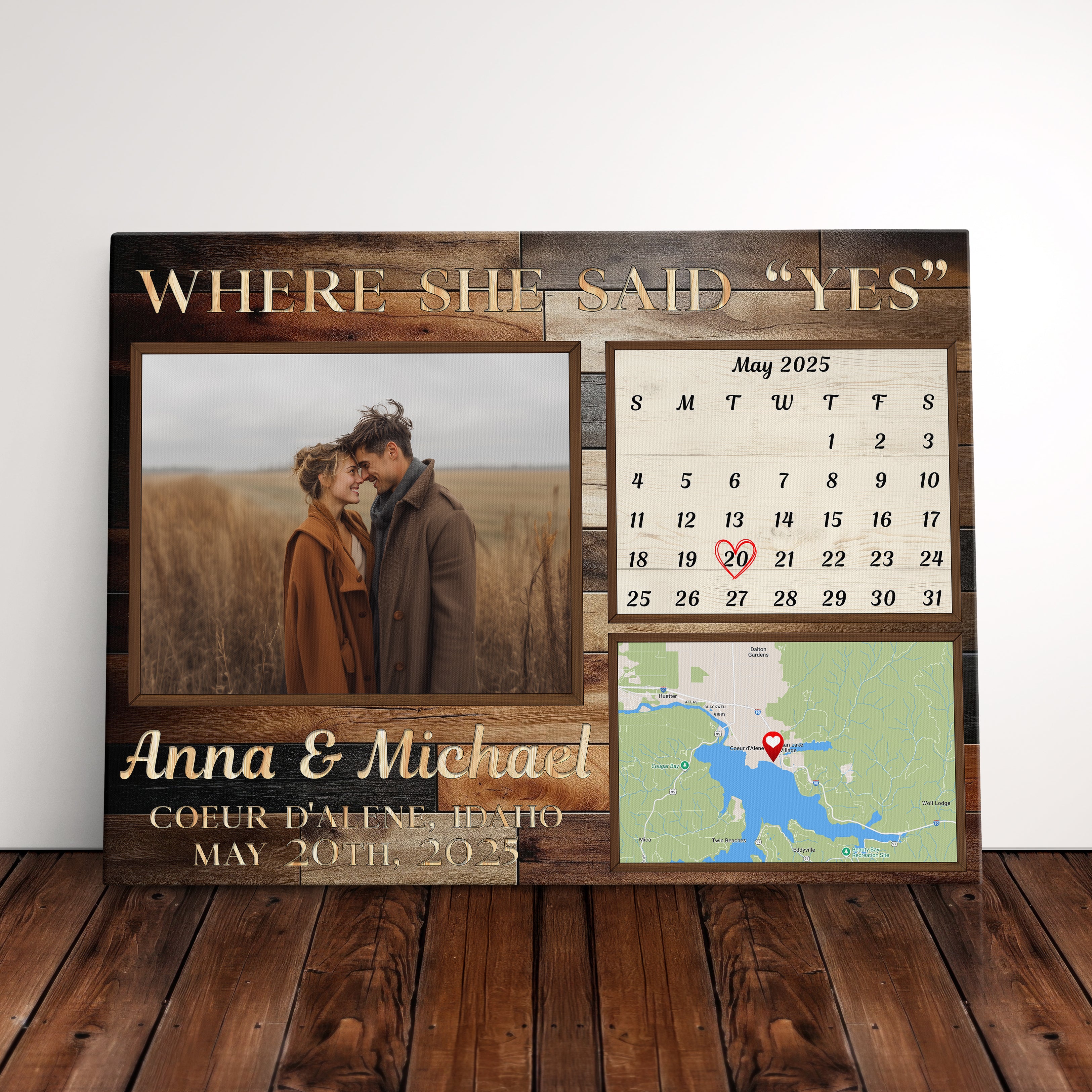 Personalized Gift For Newly Engaged Couple Canvas Print, Custom Engagement Canvas Photo Gift For Couple, Photo, Calendar, and Map
