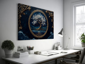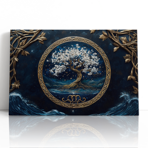 Mystical and serene, “Moonlit Grove” presents a radiant Tree of Life rooted in an enchanted forest bathed in moonlight. This evocative composition combines rich symbolism with dreamlike scenery, capturing a quiet moment of spiritual stillness beneath the stars. Expertly printed on premium gallery-wrapped canvas, every branch and glow is brought to life with depth and clarity. “Moonlit Grove” offers a timeless centerpiece for any space — a visual meditation on growth, balance, and wonder.
