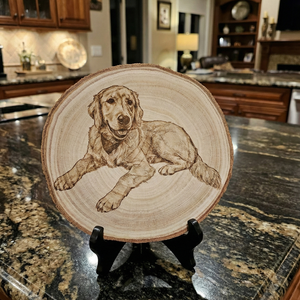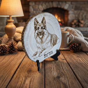 Custom Wood Pet Memorial Portrait Engraving – Dog & Cat Memorial Plaque Tree Slice with Personalized Photo Display