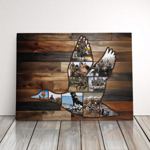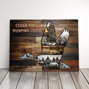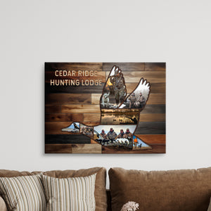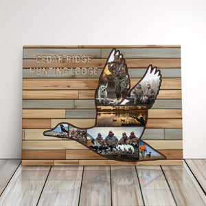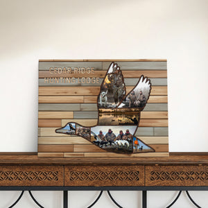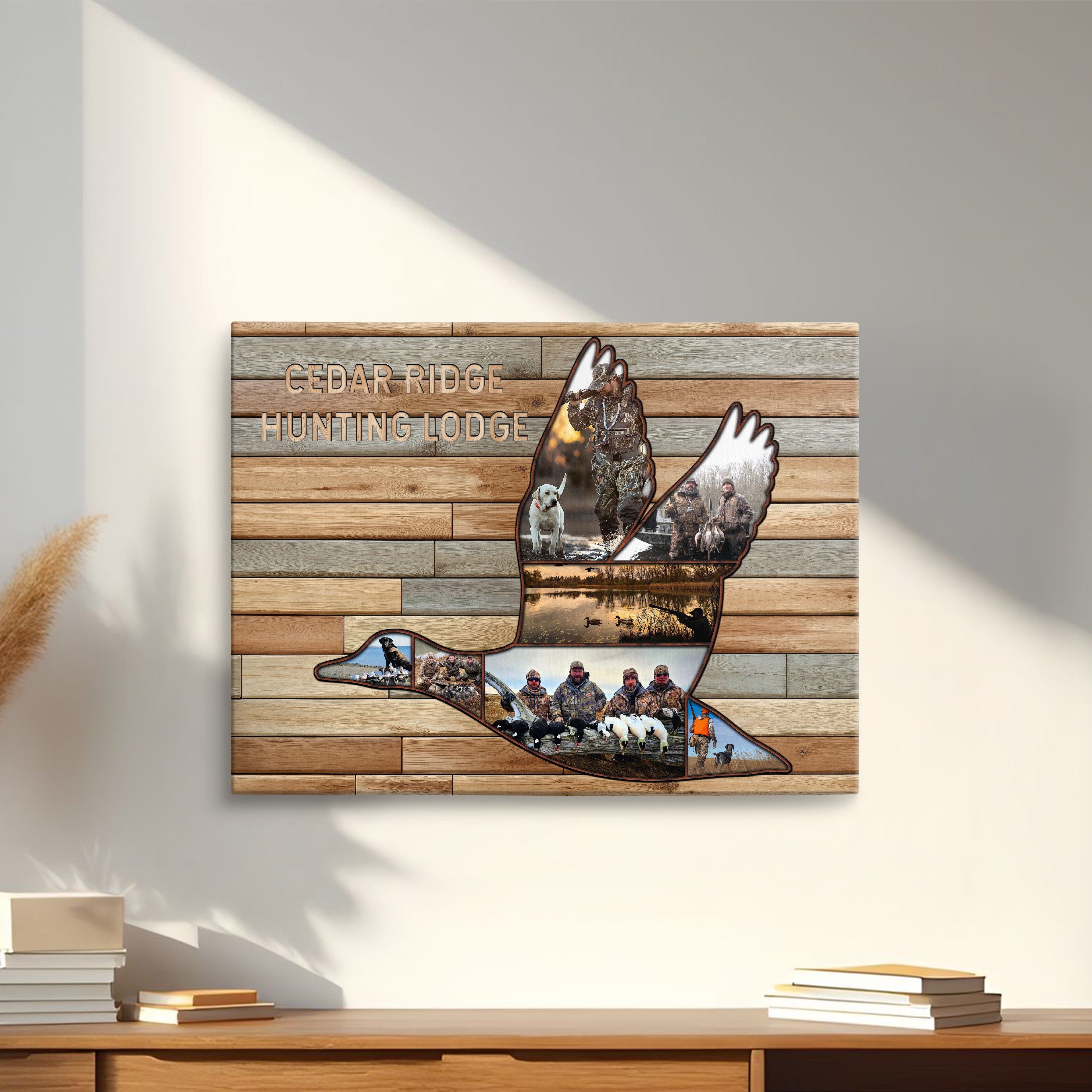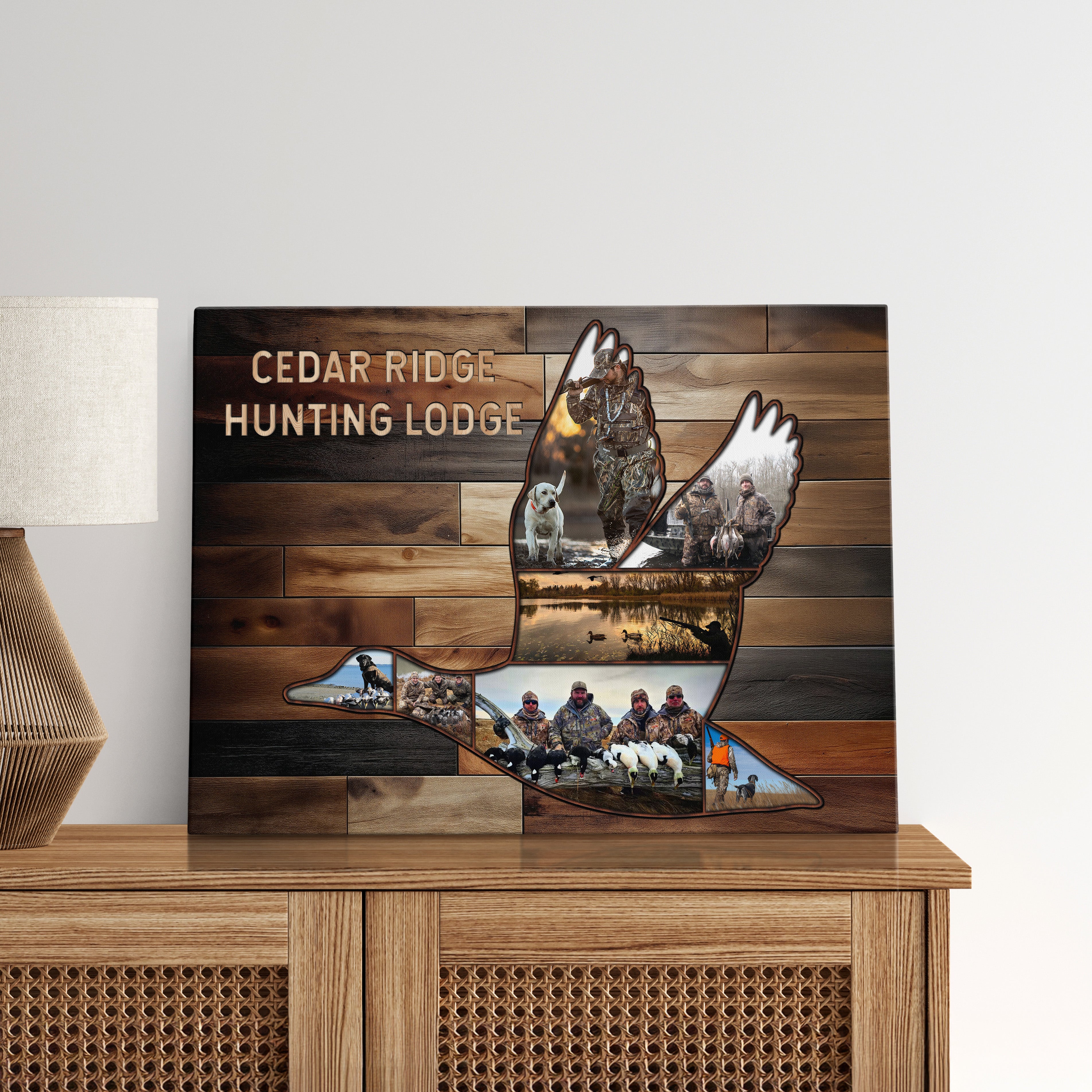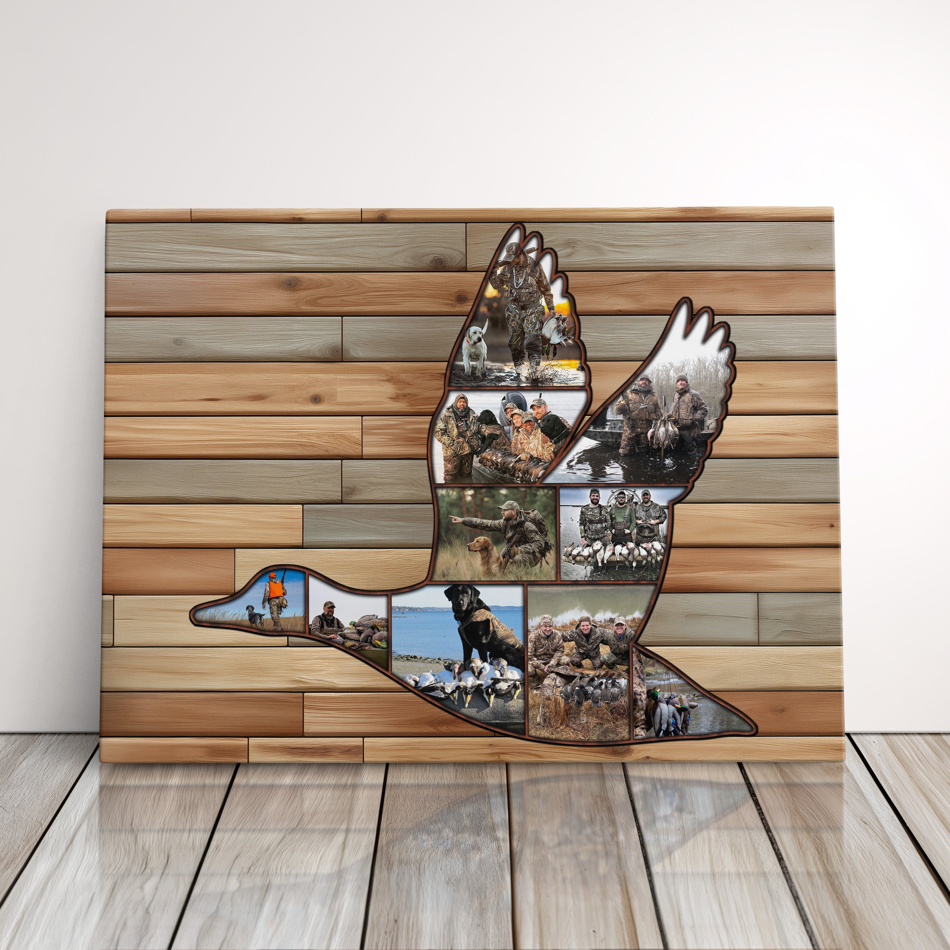 Give the ultimate hunter’s gift with this Personalized Duck Hunting Canvas Print — a custom photo collage in the shape of a flying duck, created for those who live for mornings in the blind and memories in the marsh. Whether you're honoring a father, husband, or best hunting buddy, this makes the perfect gift for him.