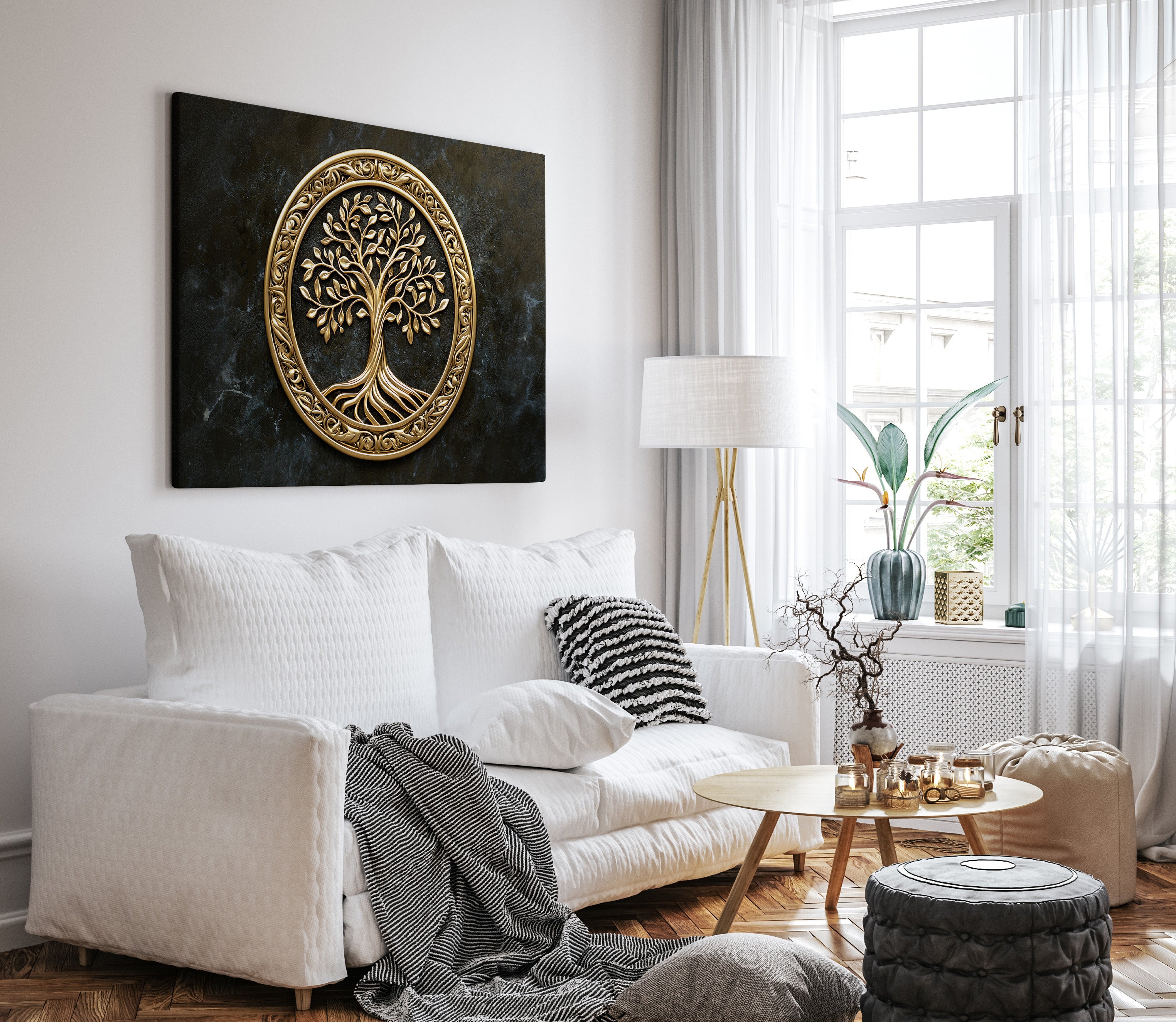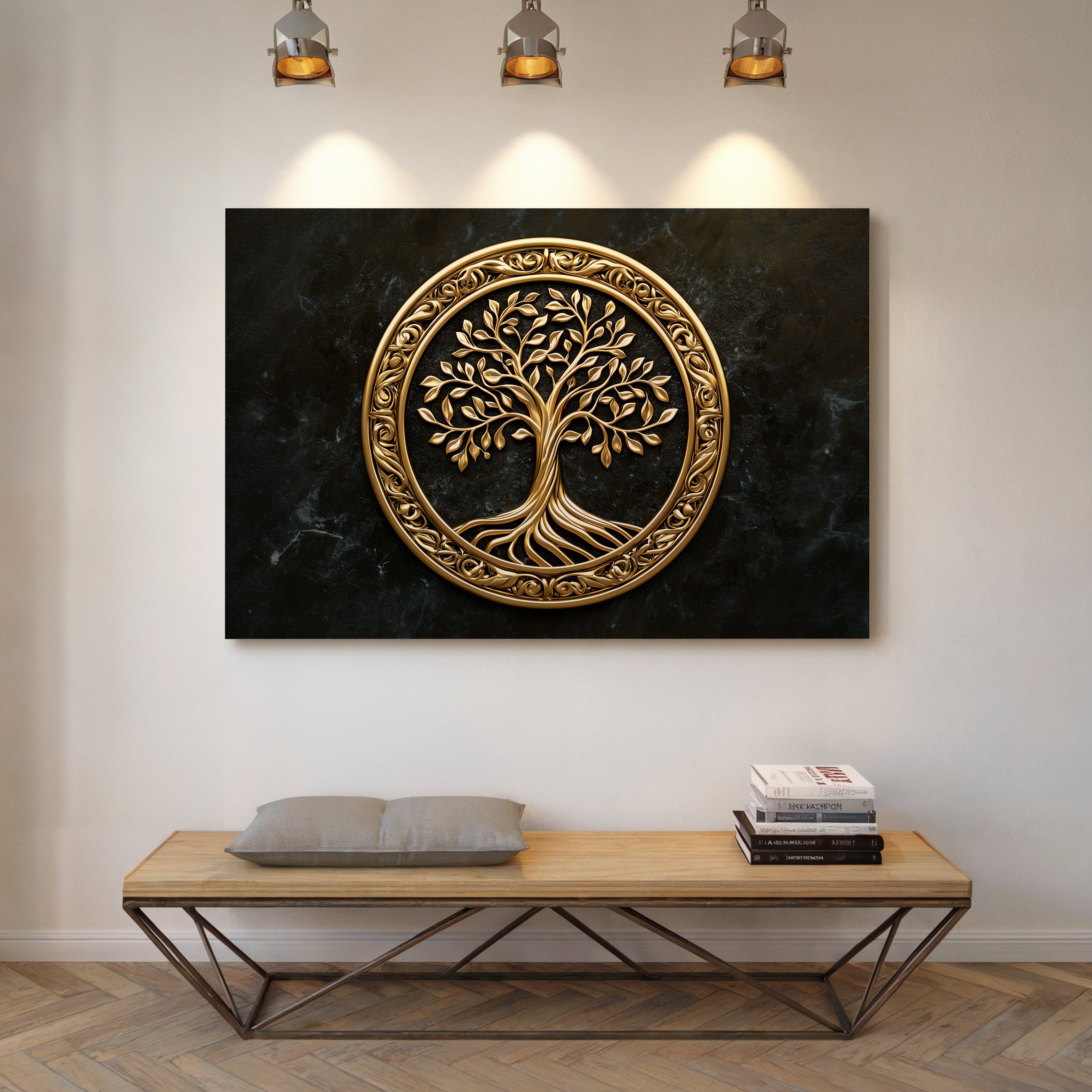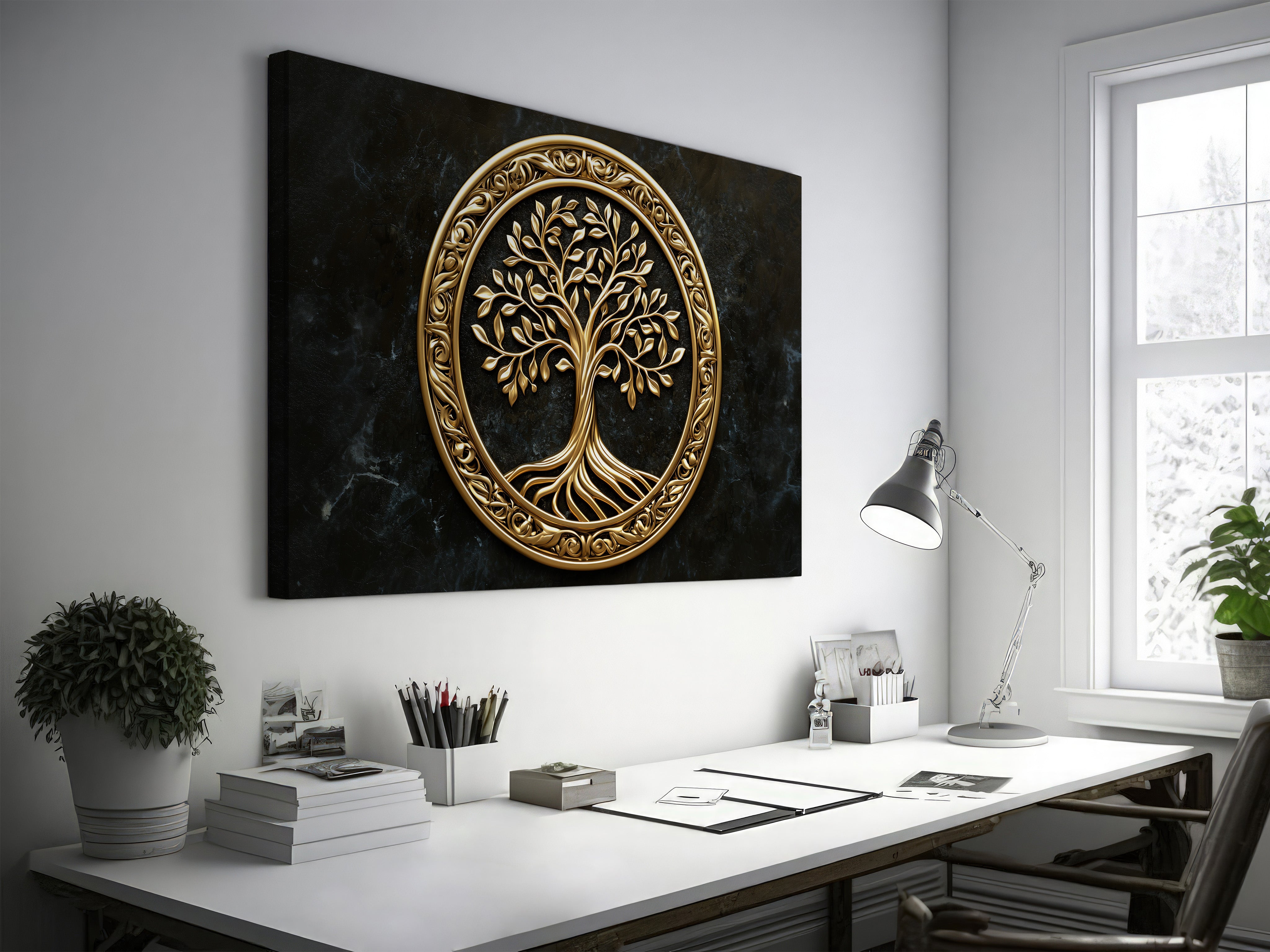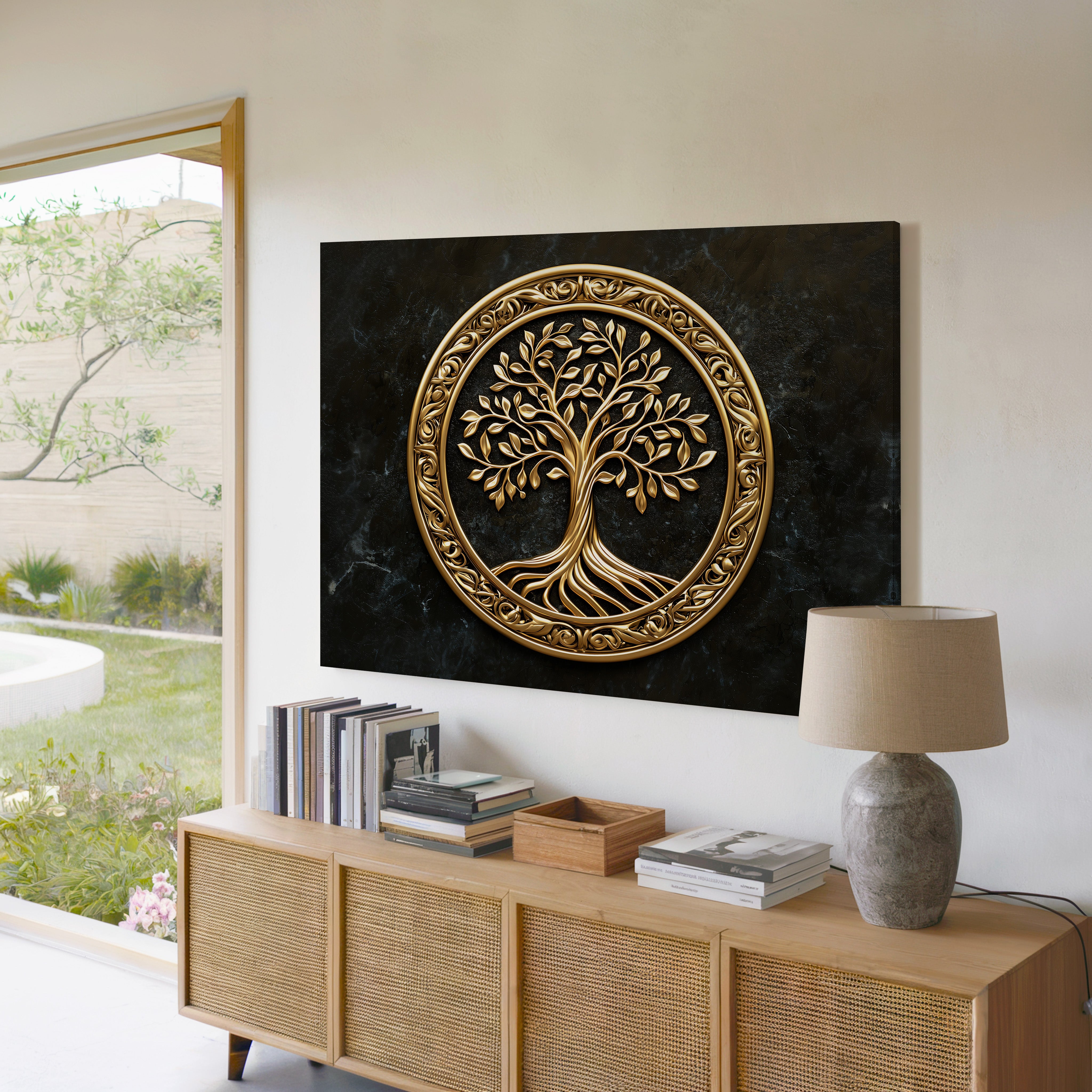 Rooted in elegance and elevated by a gilded finish, “Golden Roots” is a striking interpretation of the Tree of Life. This piece blends flowing organic lines with luminous metallic tones, offering a sense of grounded serenity and radiant strength — a visual celebration of growth, heritage, and balance. Printed on thick, gallery-wrapped canvas, every detail is rendered with clarity and sophistication. “Golden Roots” makes an ideal centerpiece for living rooms, meditation spaces, or any environment where nature and artistry meet in harmony.