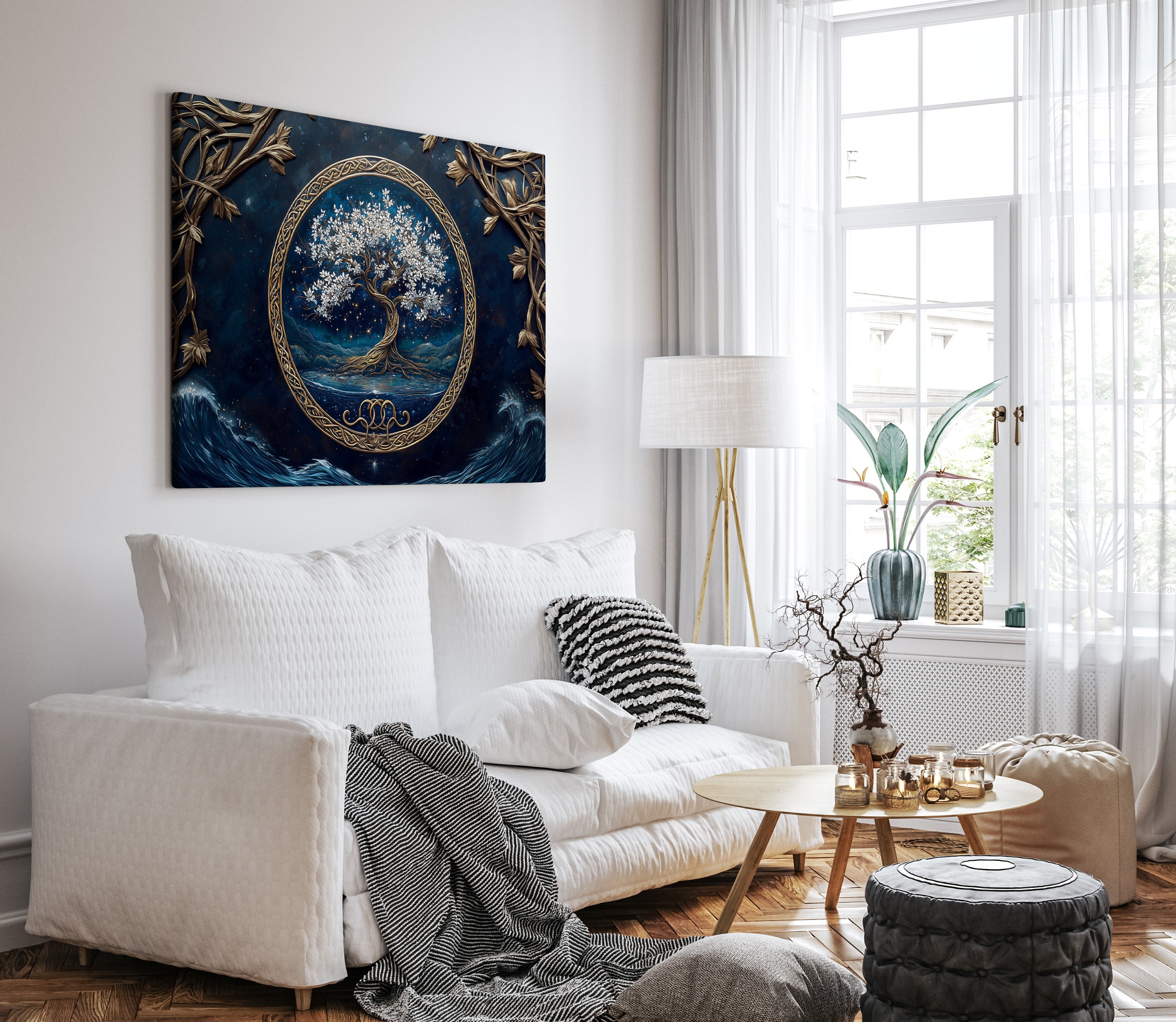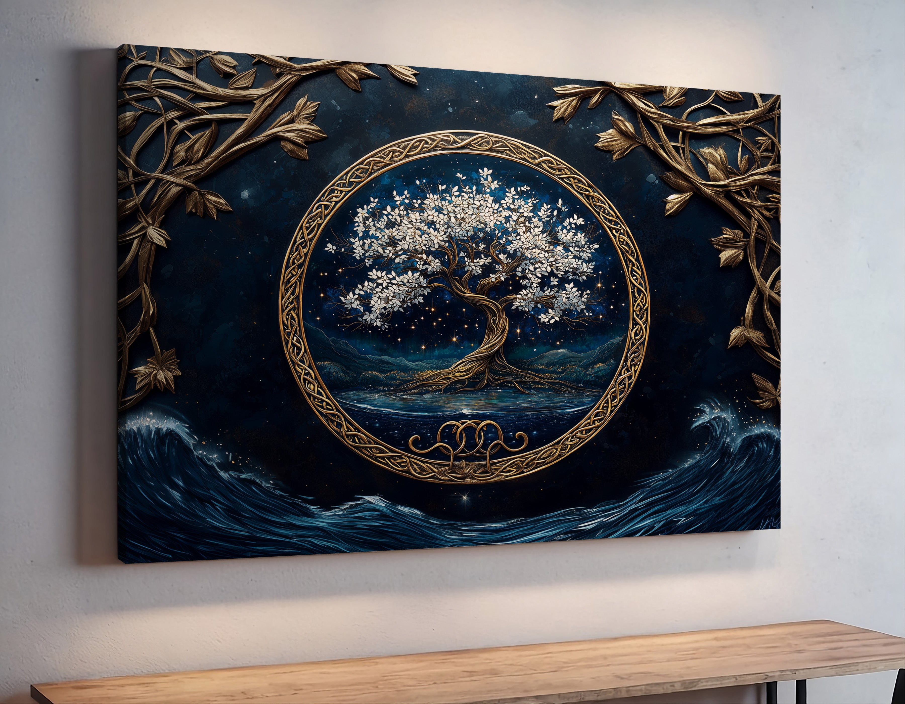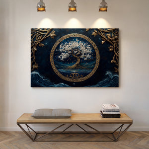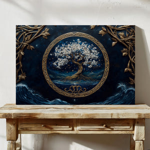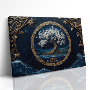 Mystical and serene, “Moonlit Grove” presents a radiant Tree of Life rooted in an enchanted forest bathed in moonlight. This evocative composition combines rich symbolism with dreamlike scenery, capturing a quiet moment of spiritual stillness beneath the stars. Expertly printed on premium gallery-wrapped canvas, every branch and glow is brought to life with depth and clarity. “Moonlit Grove” offers a timeless centerpiece for any space — a visual meditation on growth, balance, and wonder.
