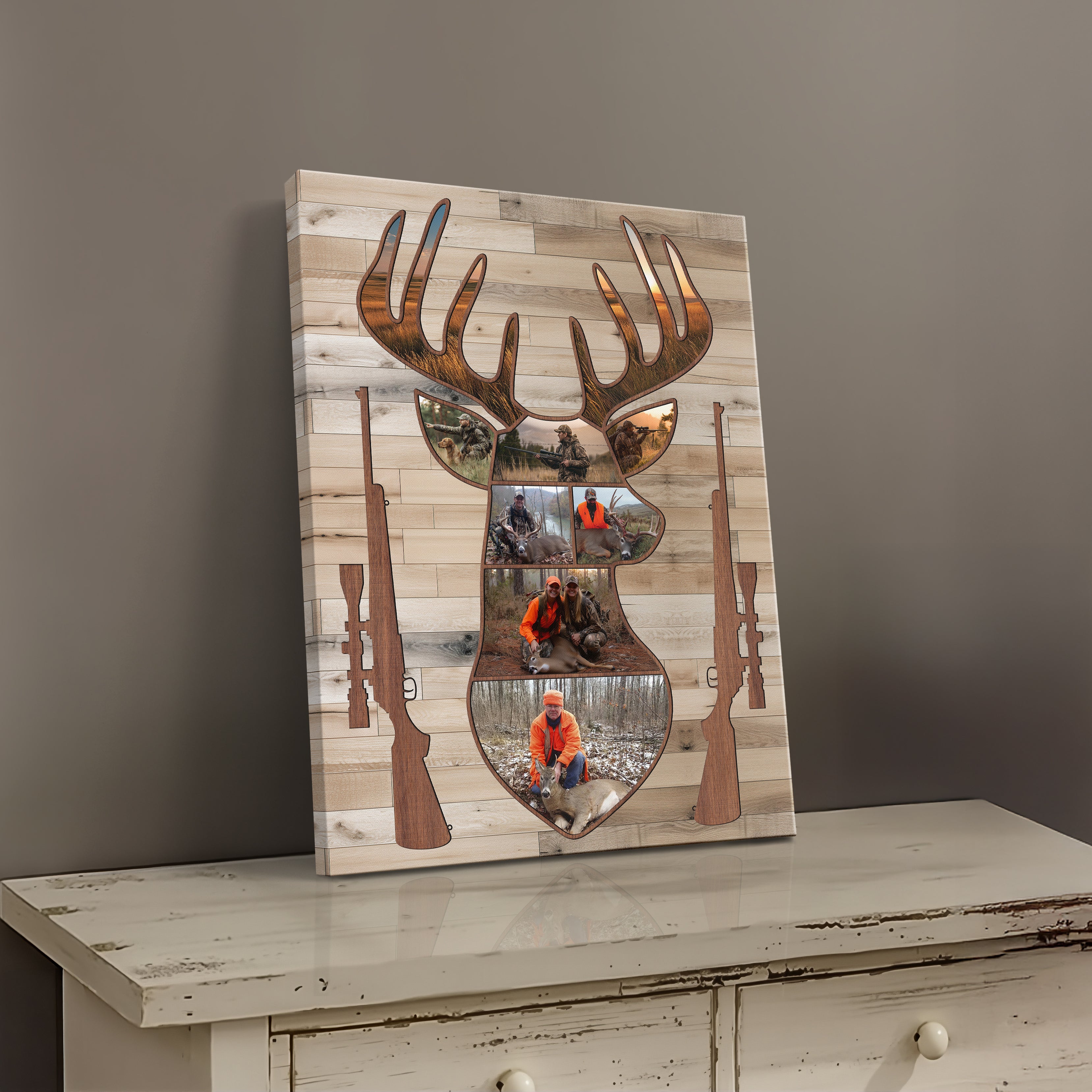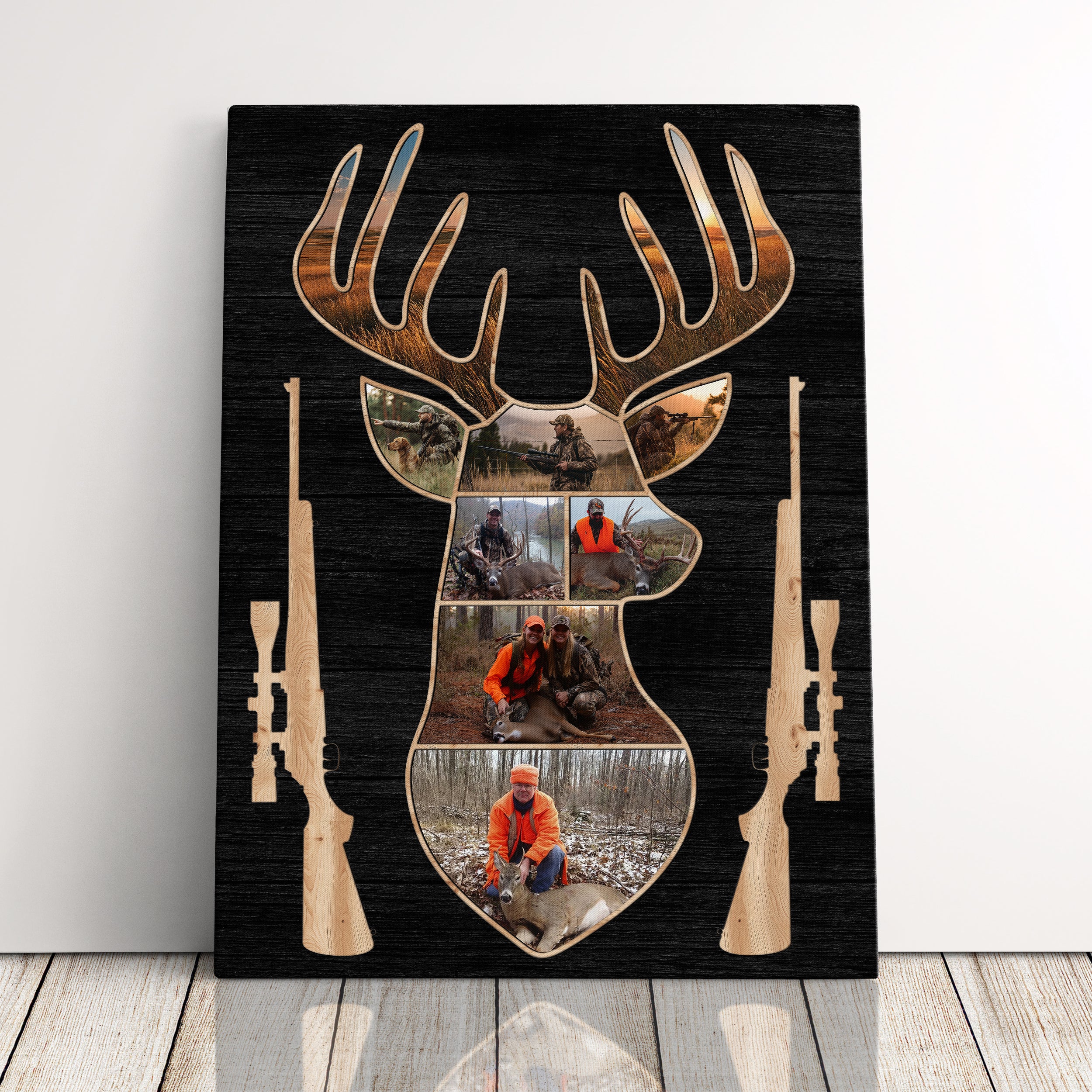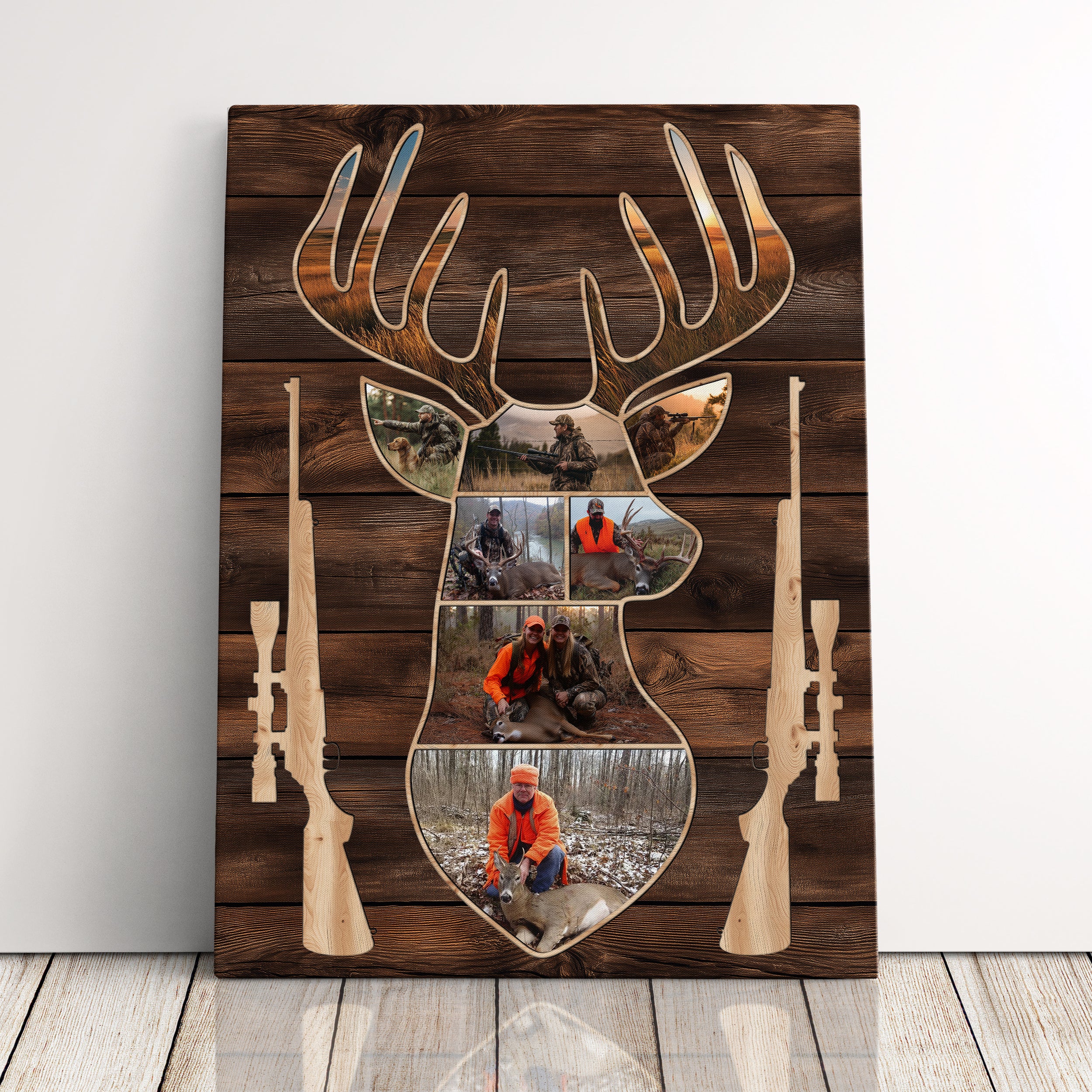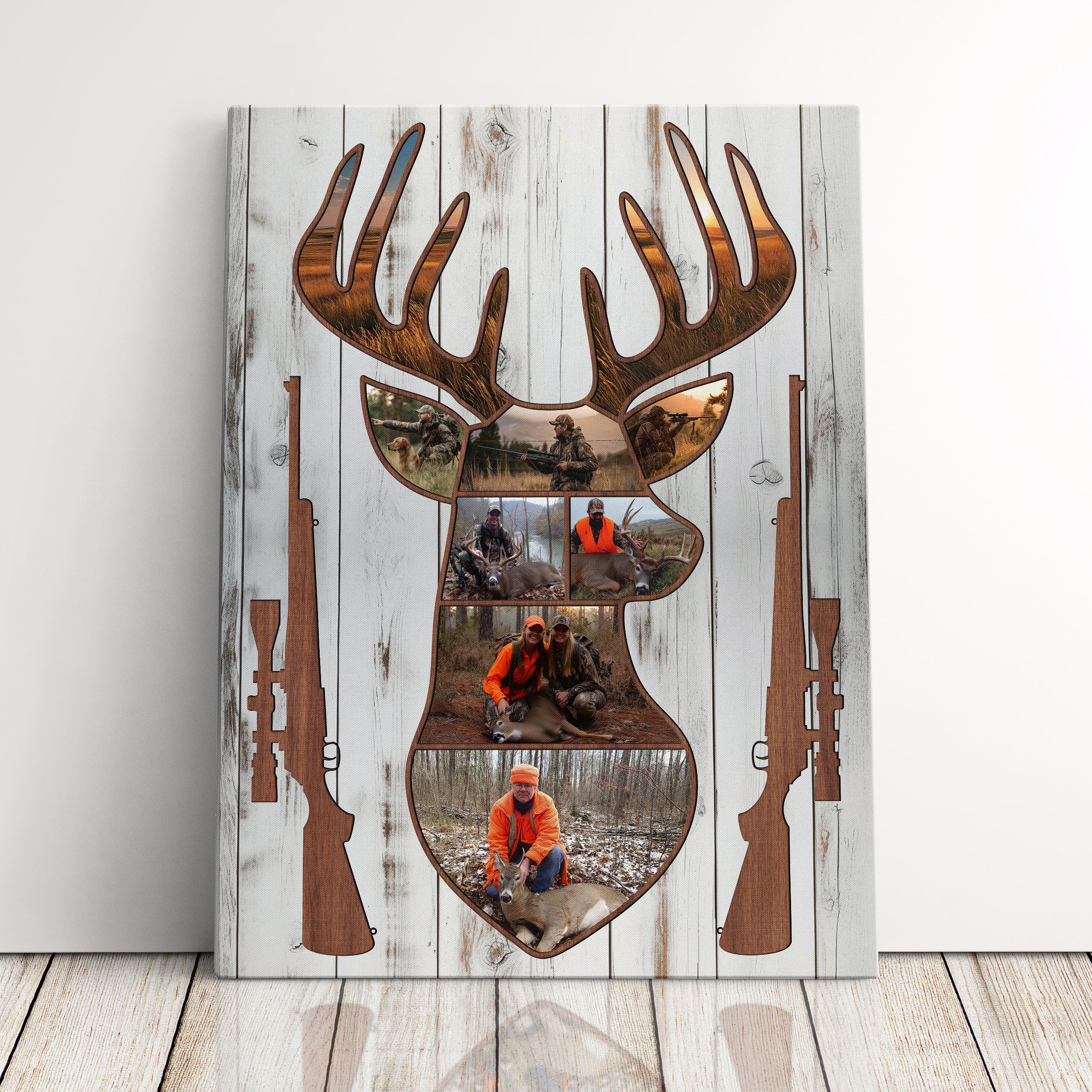 Personalized Deer Hunter Canvas Print Photo Gift Ideas For Dad, Husband, Son, Buck Hunting Outdoorsman Custom Rustic Deer Head Photo Collage