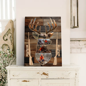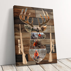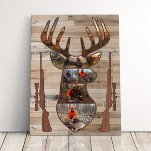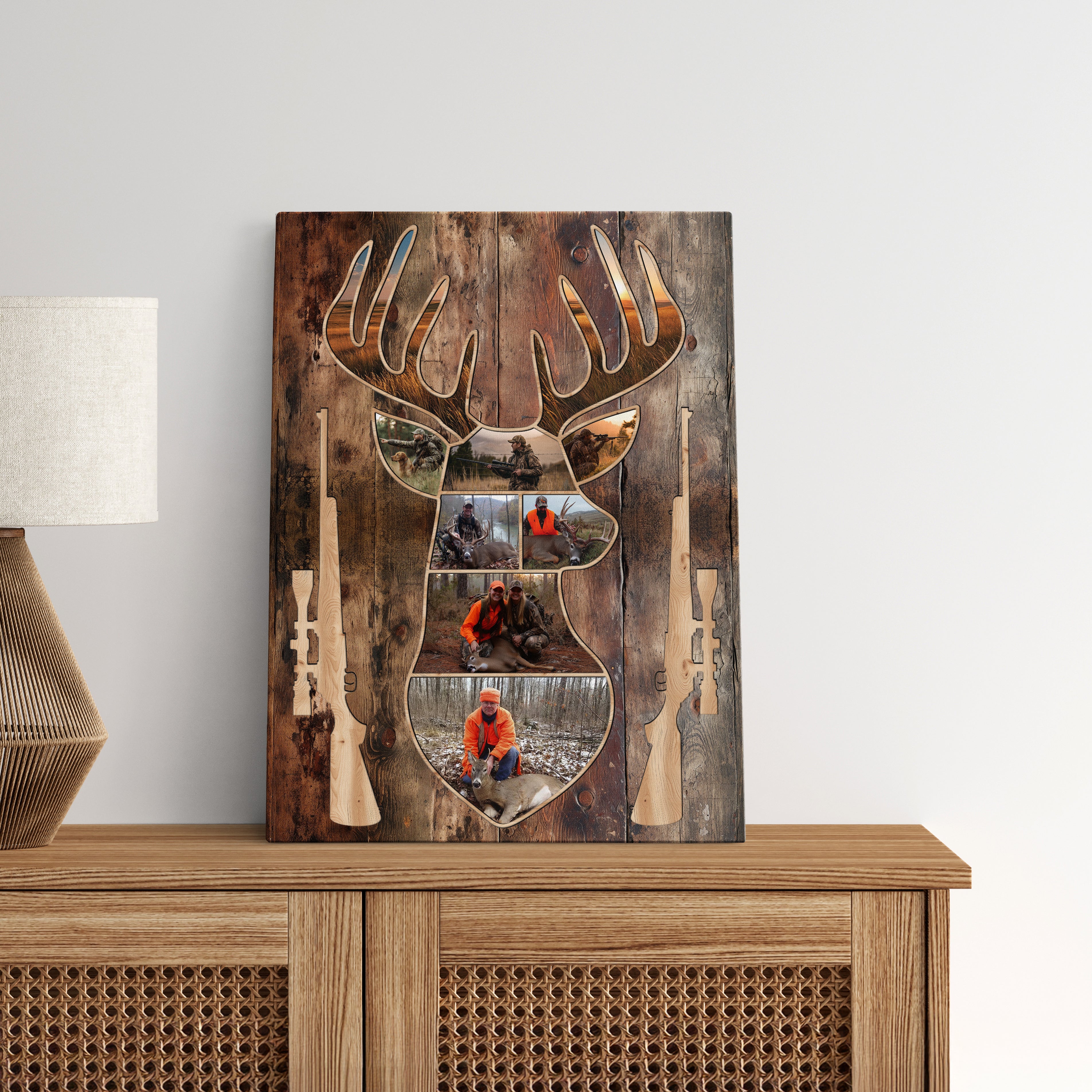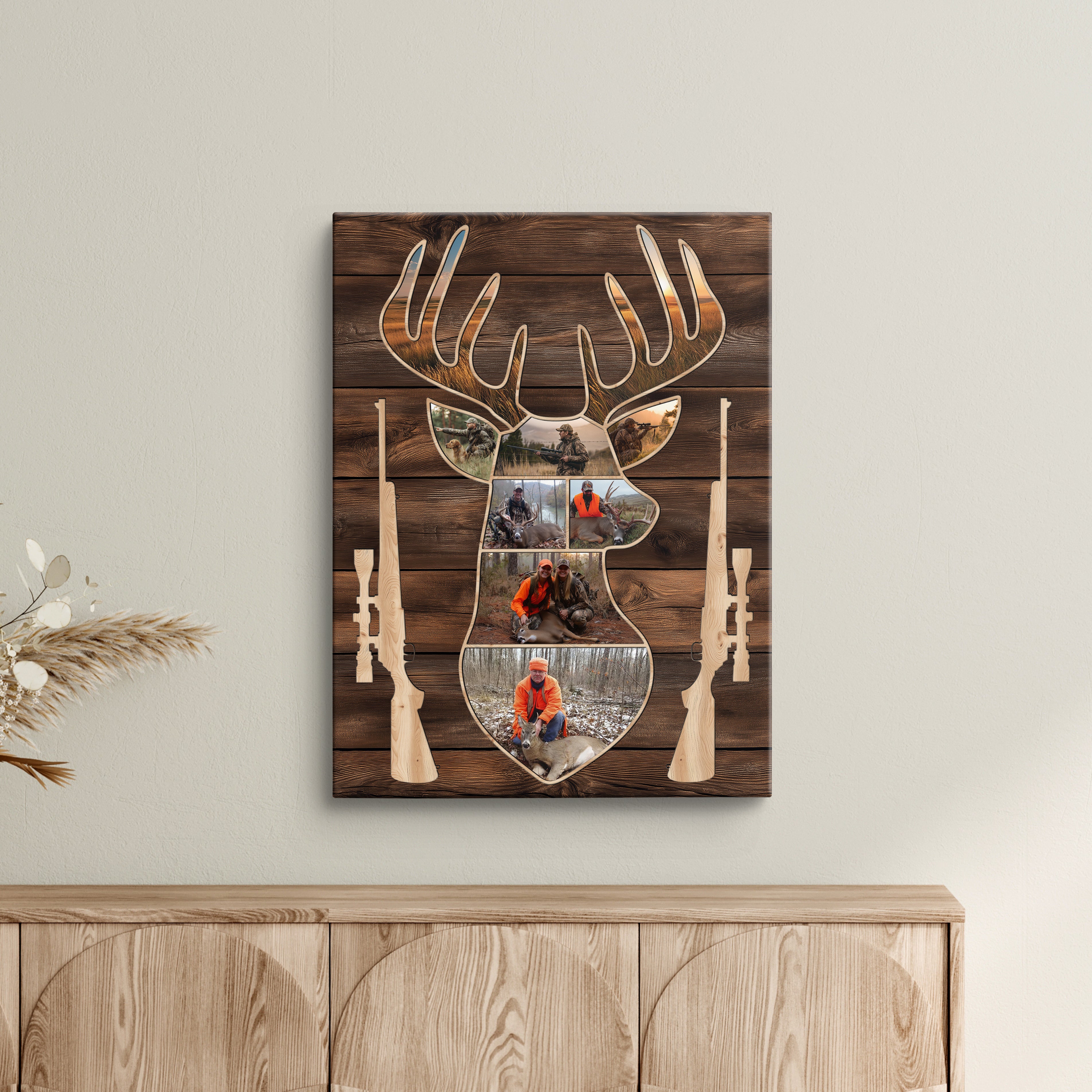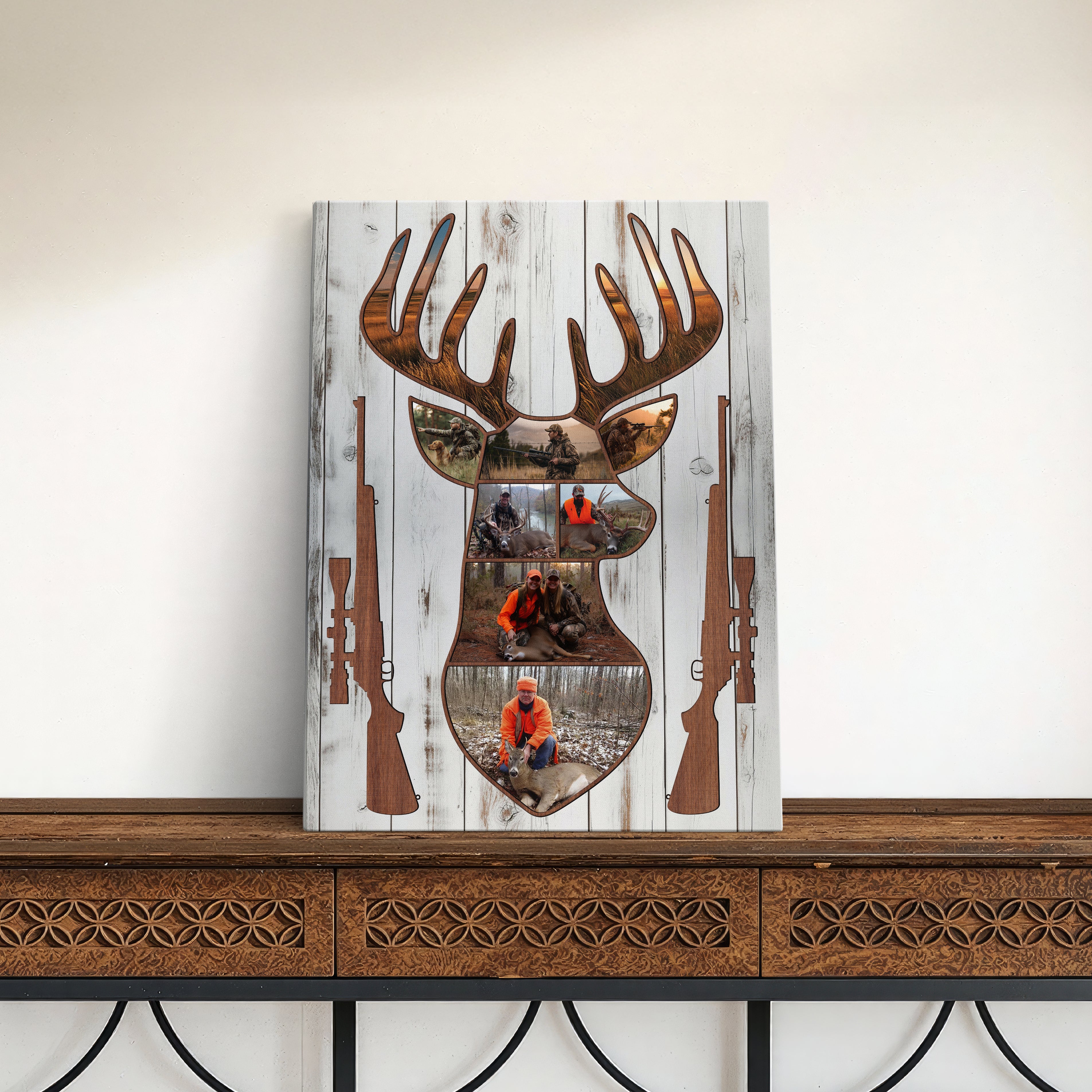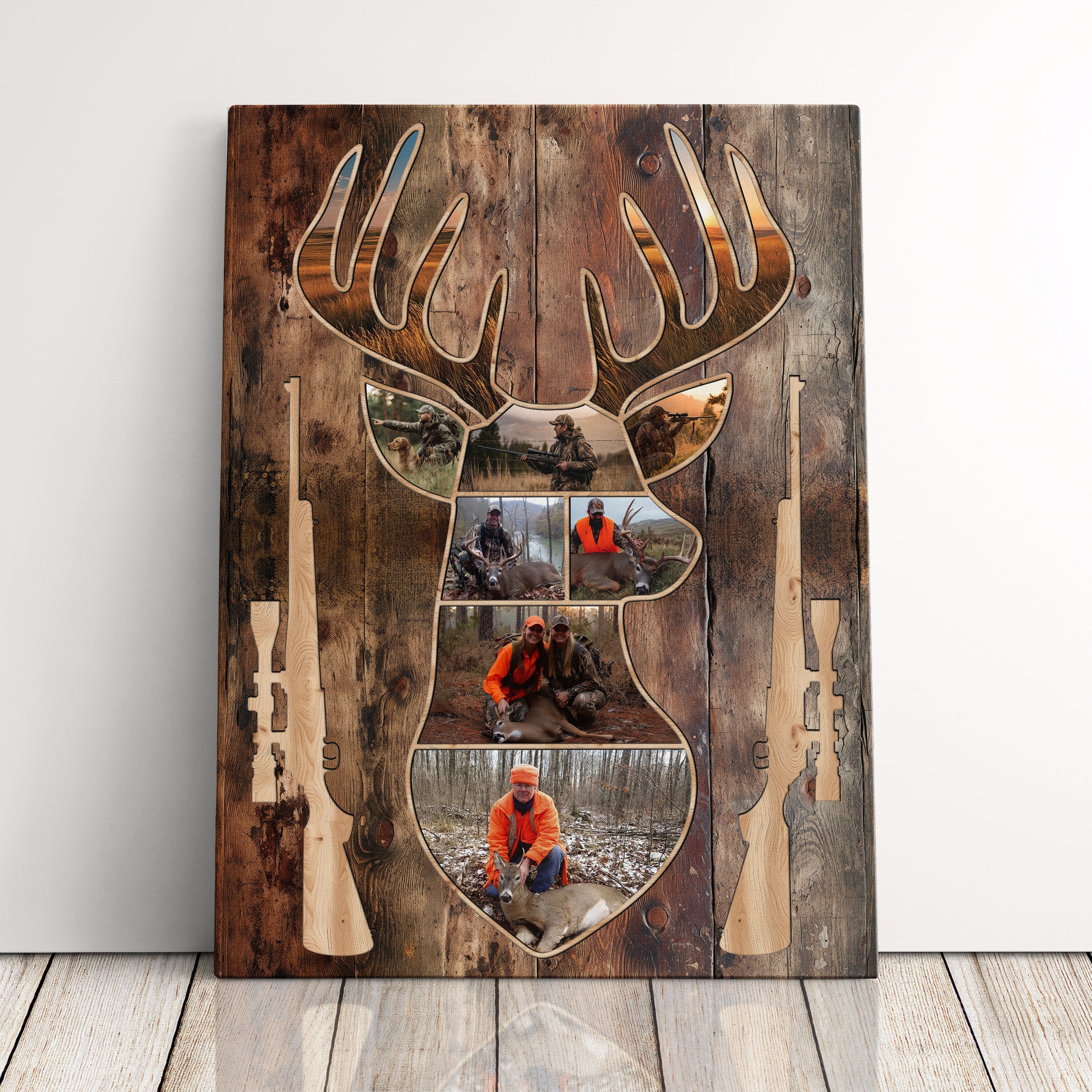 Personalized Deer Hunter Canvas Print Photo Gift Ideas For Dad, Husband, Son, Buck Hunting Outdoorsman Custom Rustic Deer Head Photo Collage