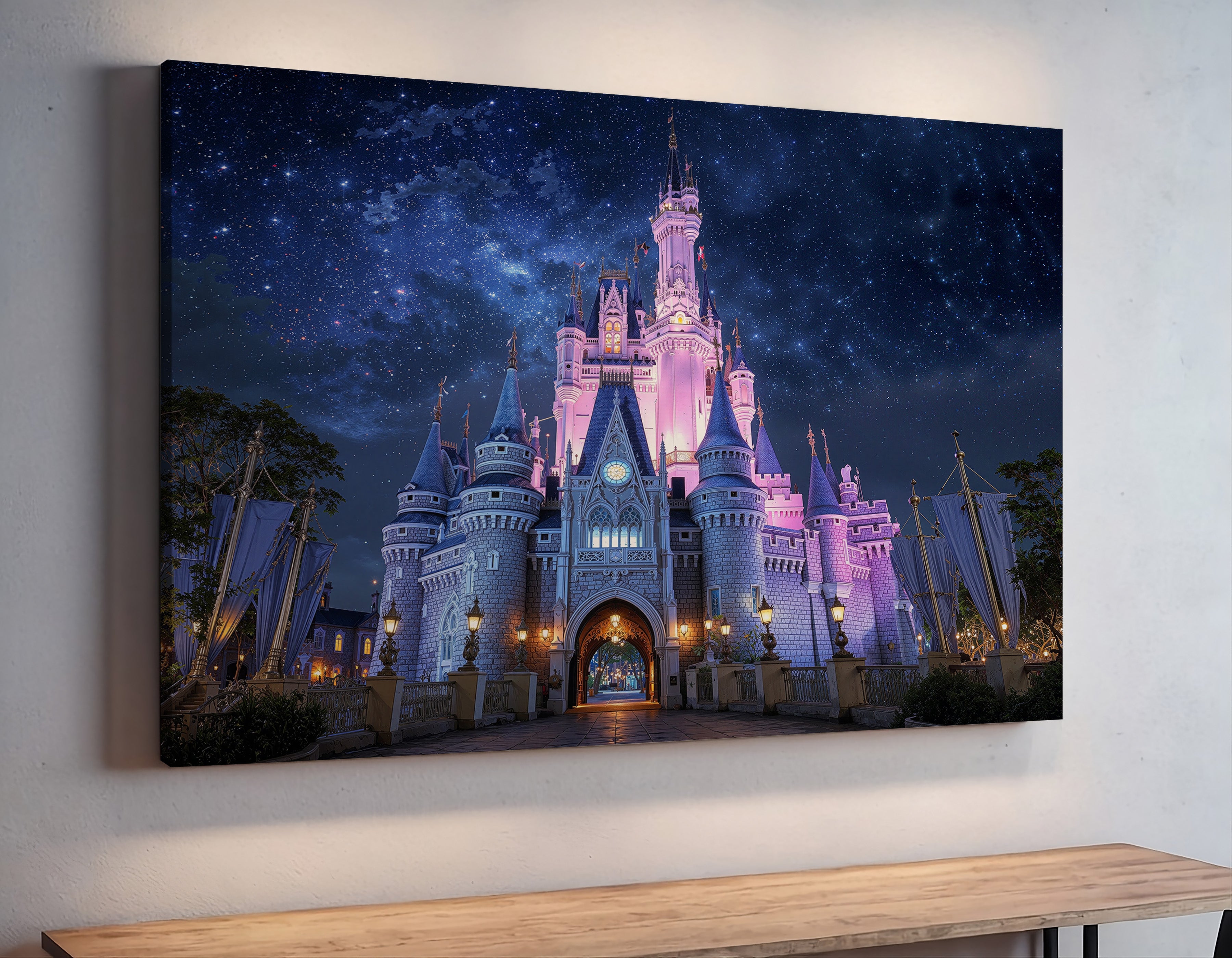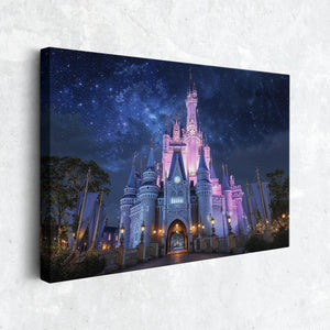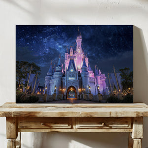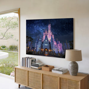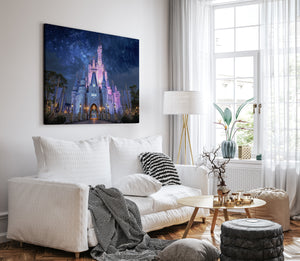 "Starlight Over the Magic Kingdom" invites you to a dreamlike night where fantasy reigns supreme. A luminous fairytale castle glows under a cosmic sky, evoking wonder, nostalgia, and the timeless magic of enchanted kingdoms. This fantasy-inspired canvas print is perfect for anyone who cherishes storybook dreams and magical moments. Whether adorning a nursery, bedroom, or media room, it makes a striking piece of wall decor and a thoughtful gift for dreamers of all ages.