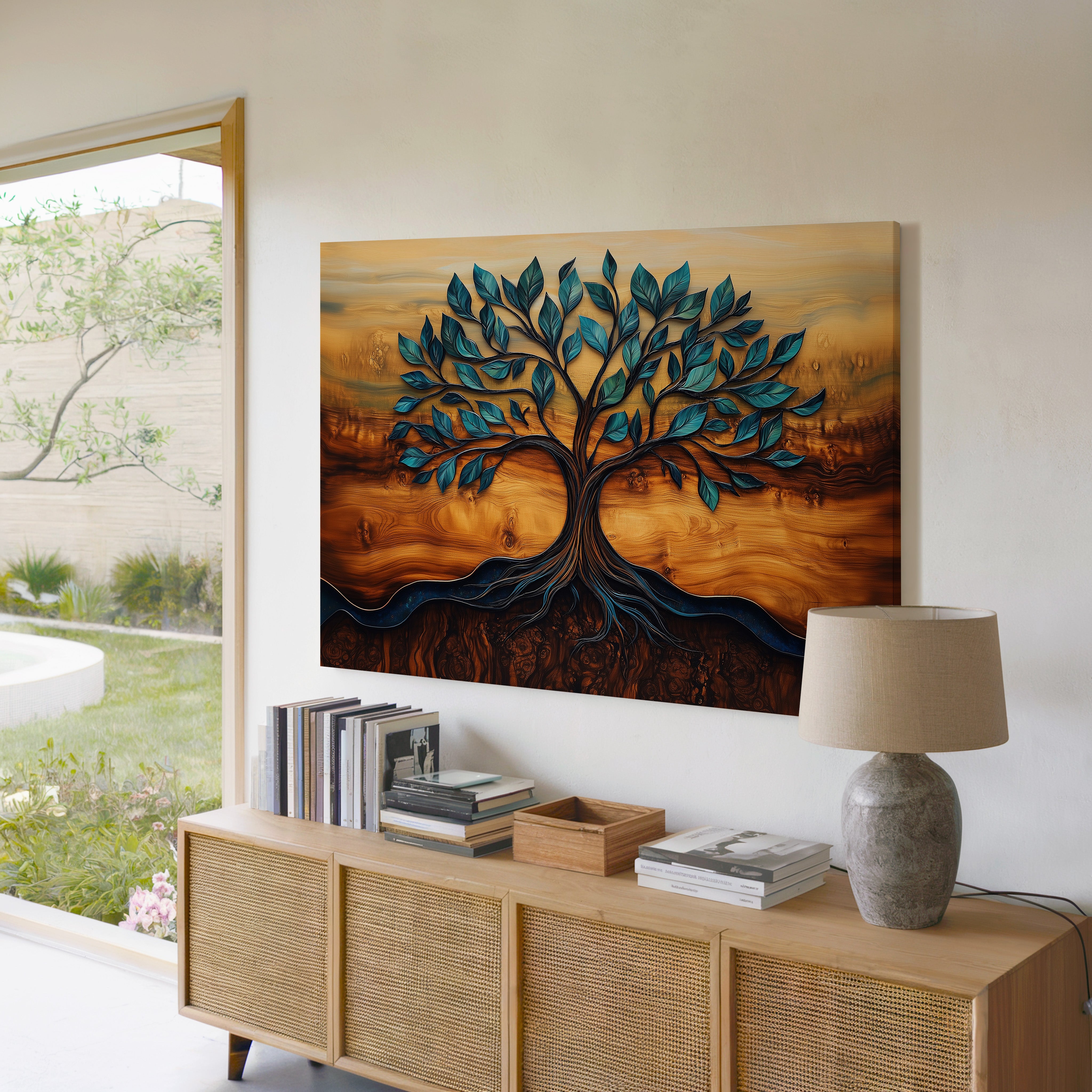 A tribute to the strength and grace of nature, “Timber Spirit” centers on a majestic Tree of Life set against a soft, weathered backdrop. Its grounded roots and outstretched branches reflect balance, resilience, and quiet beauty — a timeless motif that brings meaning and warmth to any space. Printed on 1.5" gallery-wrapped canvas, this artwork combines natural elegance with modern craftsmanship. “Timber Spirit” is ideal for earthy interiors, meditation spaces, or entryways seeking a grounded and meaningful visual centerpiece.